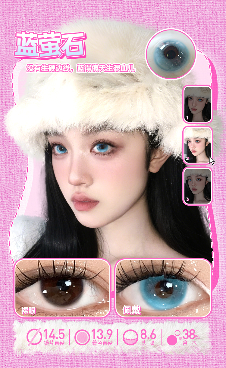 新款【蓝萤石】14.5大直径半年抛美瞳1片装
