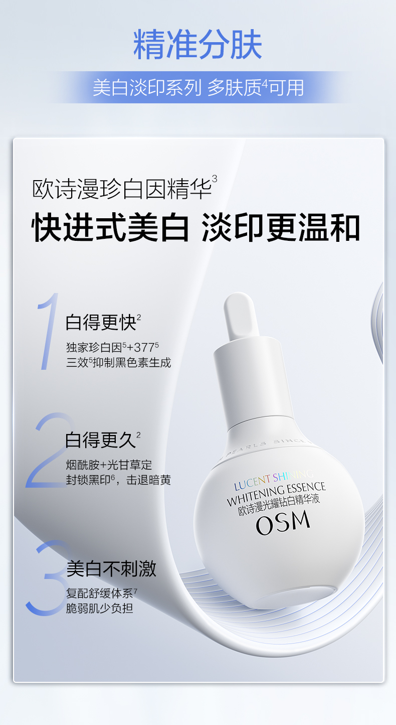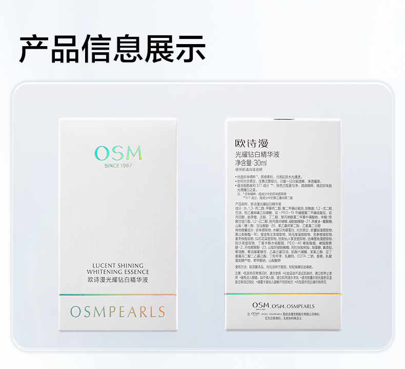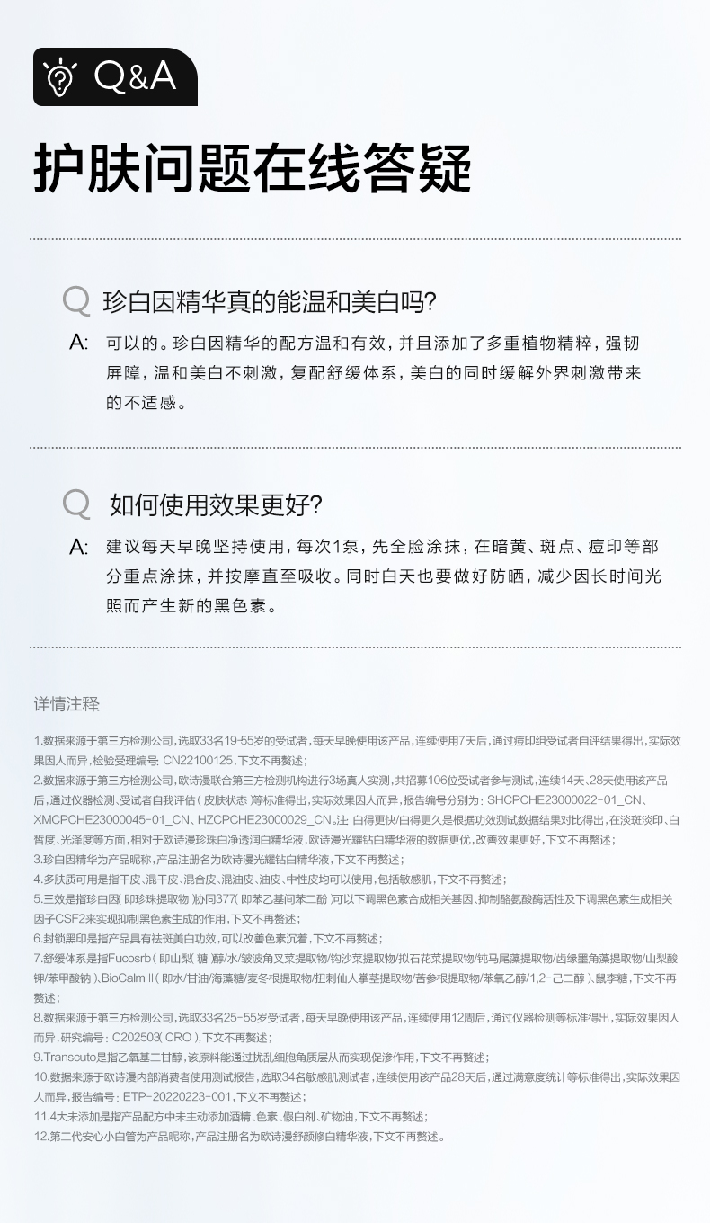 【买一赠一】欧诗漫珍白因美白精华液淡斑小白瓶安心护肤品