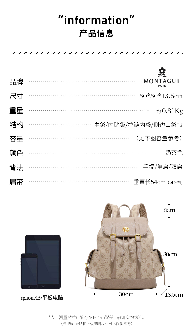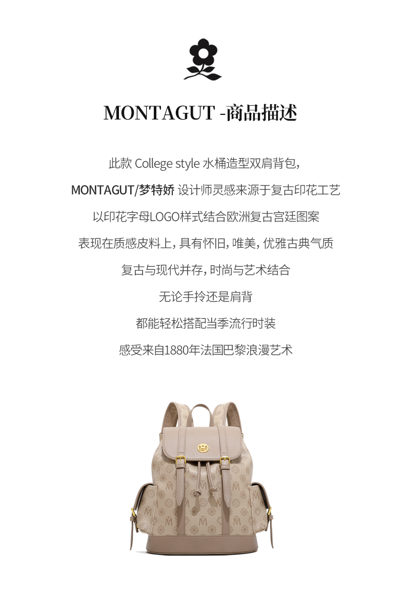 正品FRMontagut/梦特娇旅行大容量双肩背包M2152(下单72小时内发货)