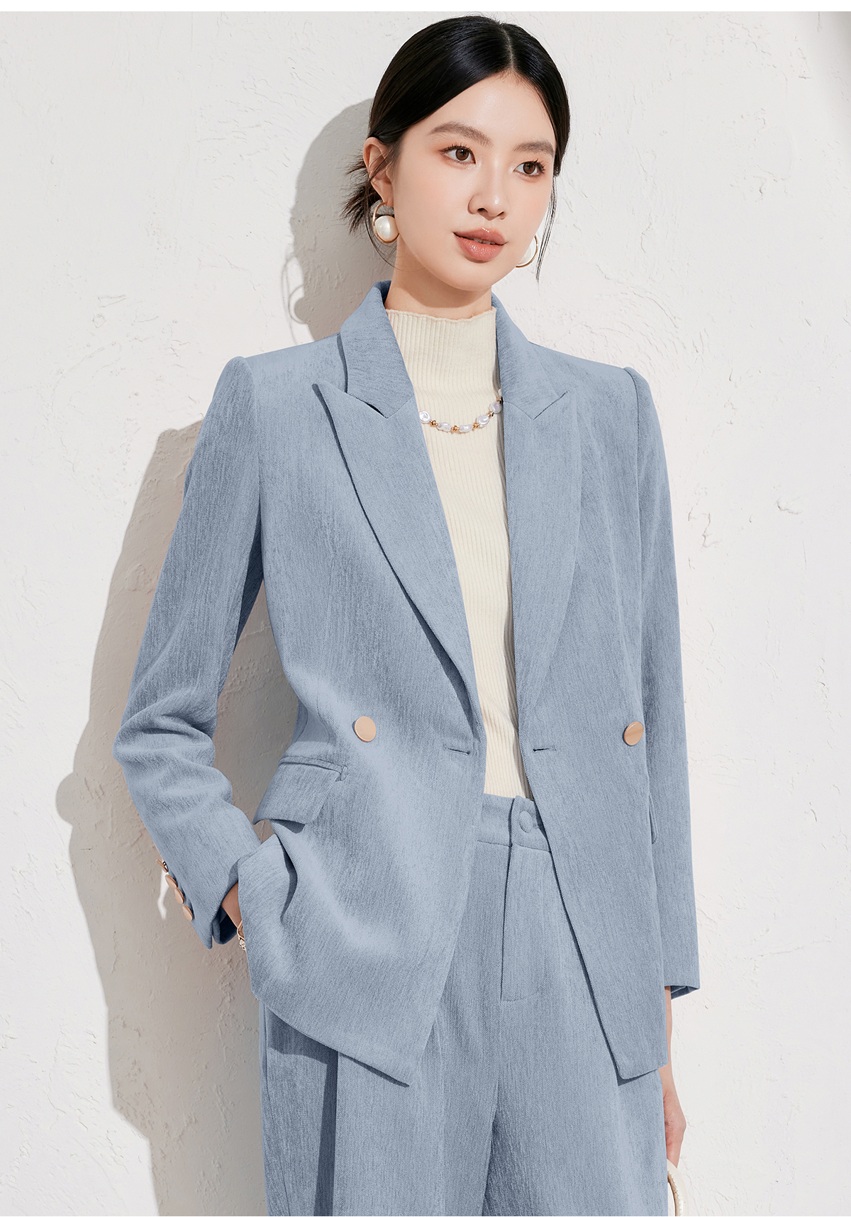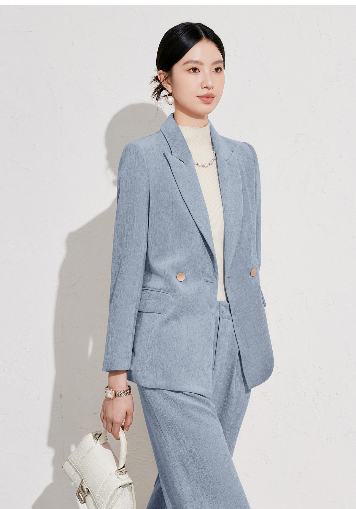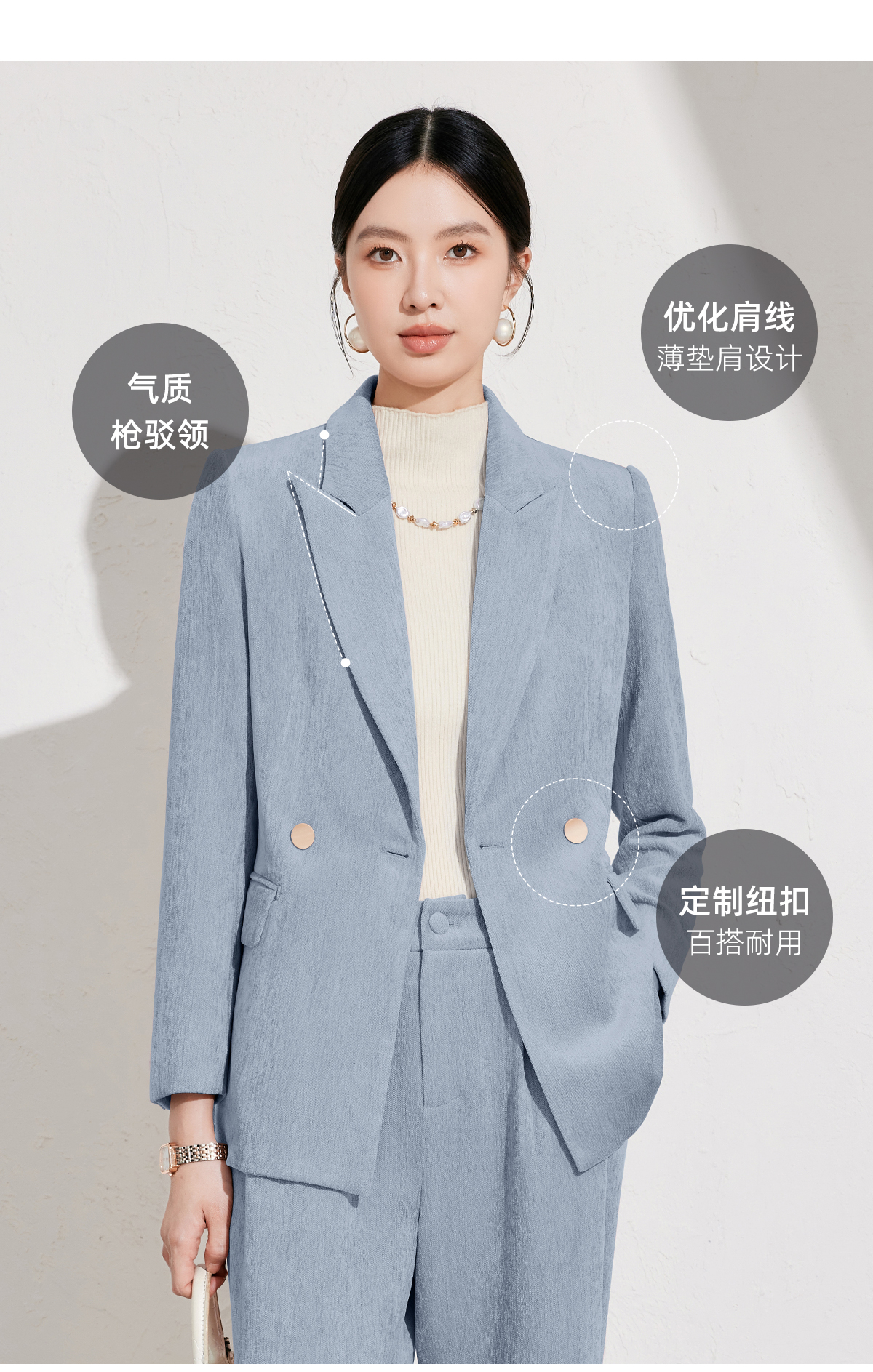 雾霾蓝丝绒西服外套女冬高级感职业装通勤正装工作服休闲西装套装