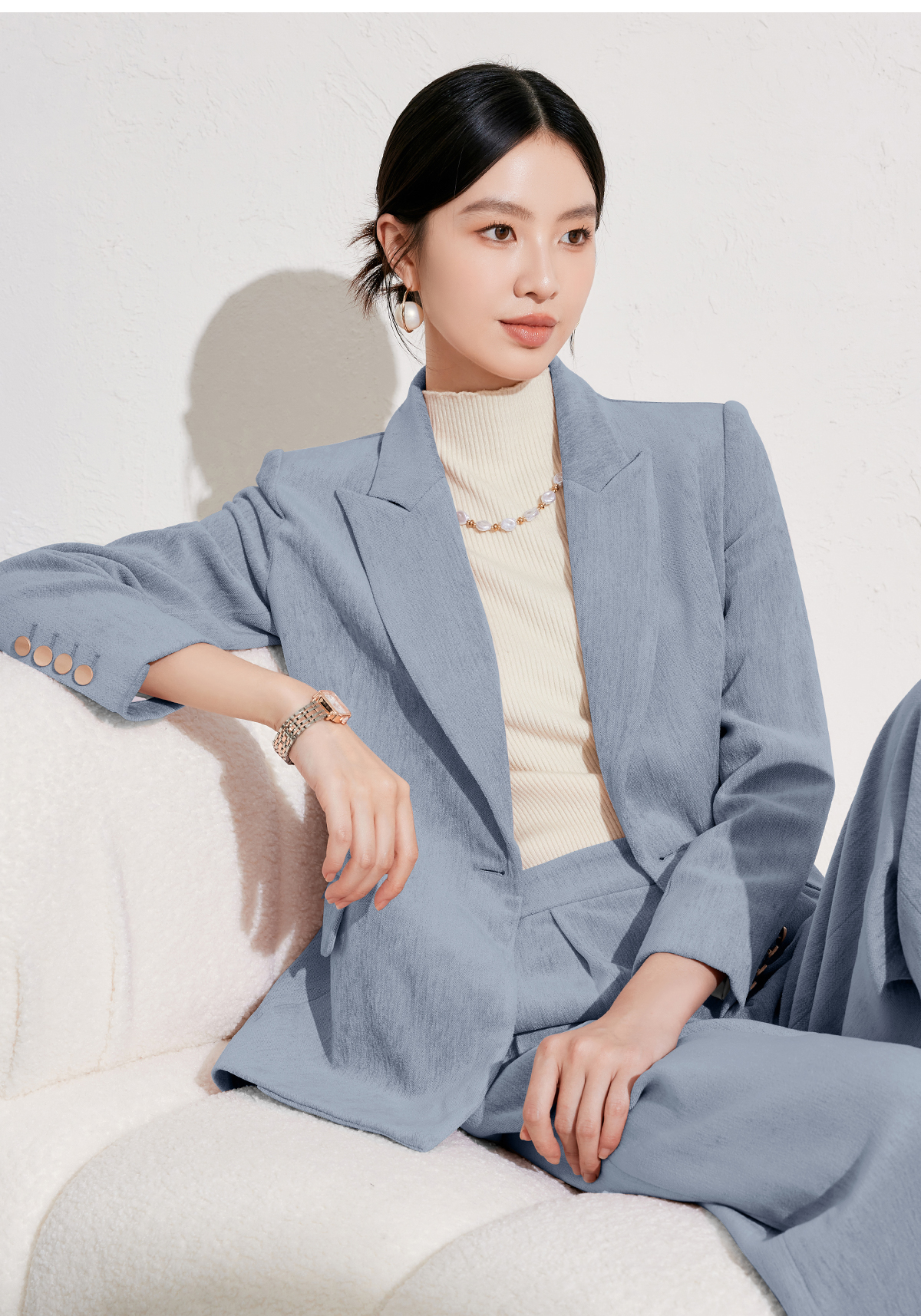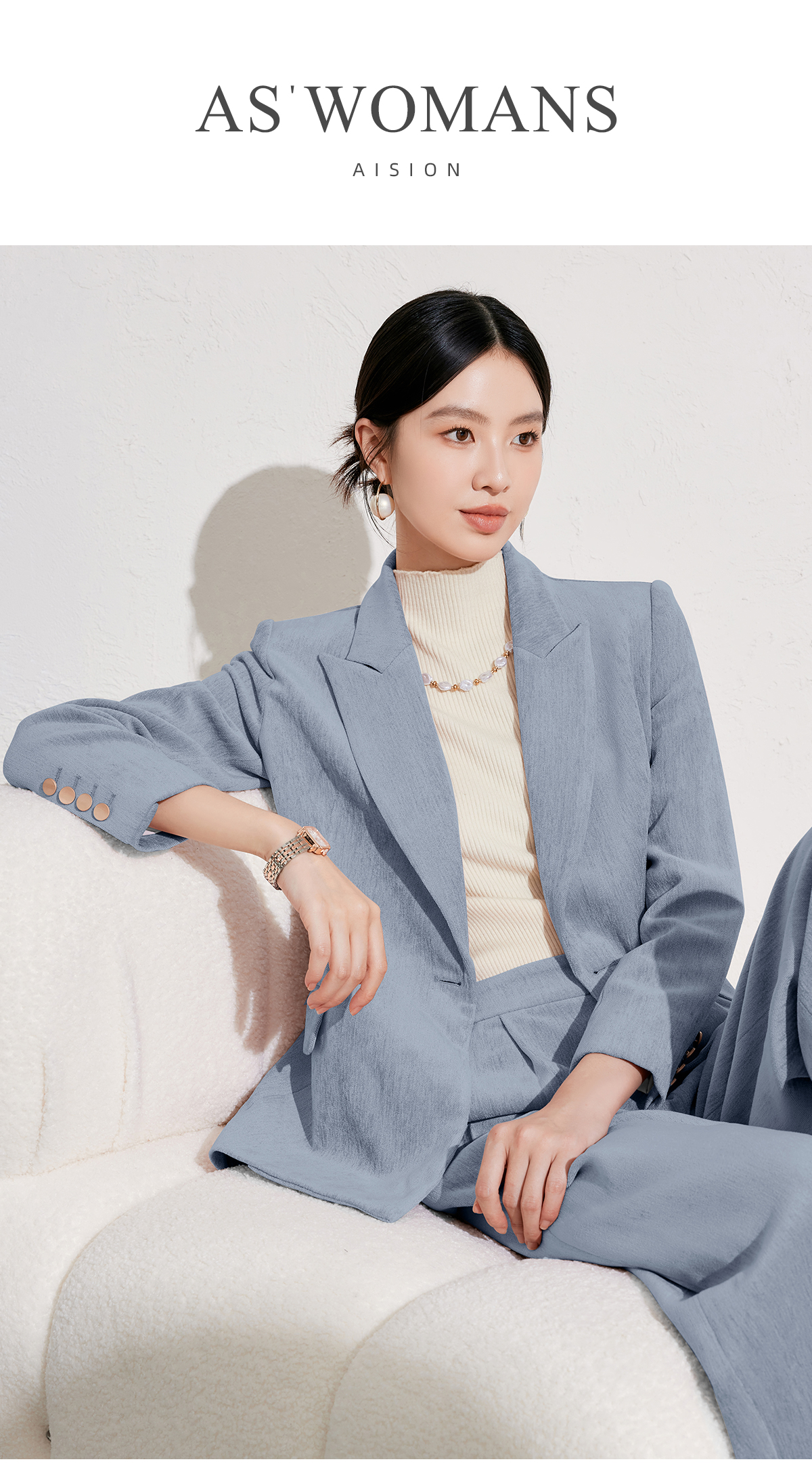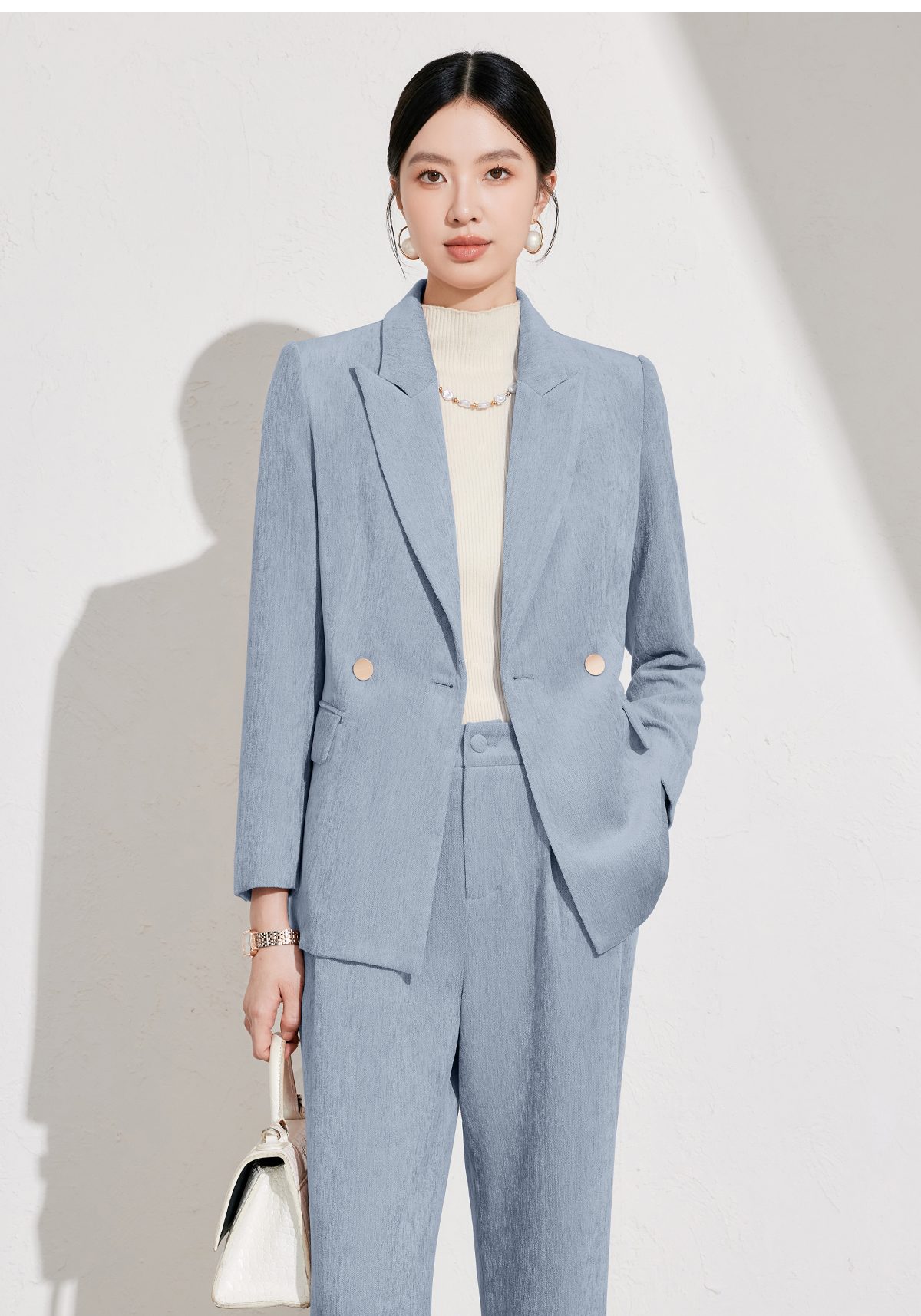 雾霾蓝丝绒西服外套女冬高级感职业装通勤正装工作服休闲西装套装