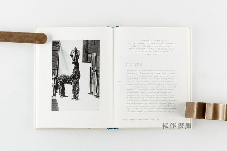 此书以插画、照片展示毕加索生活中的各种动物,包括他用画笔描绘过的,也包括为他喜爱的。毕加索对动物的喜爱,是毕加索生平和作品中很不被重视的一个方面。作为养鸽人的孩子和斗牛活动的爱好者,毕加索的双眼被训练地长于捕捉动物的动态、形状和习性;作为画家,他又能够用简单的几根线条将这些东西记录下来。