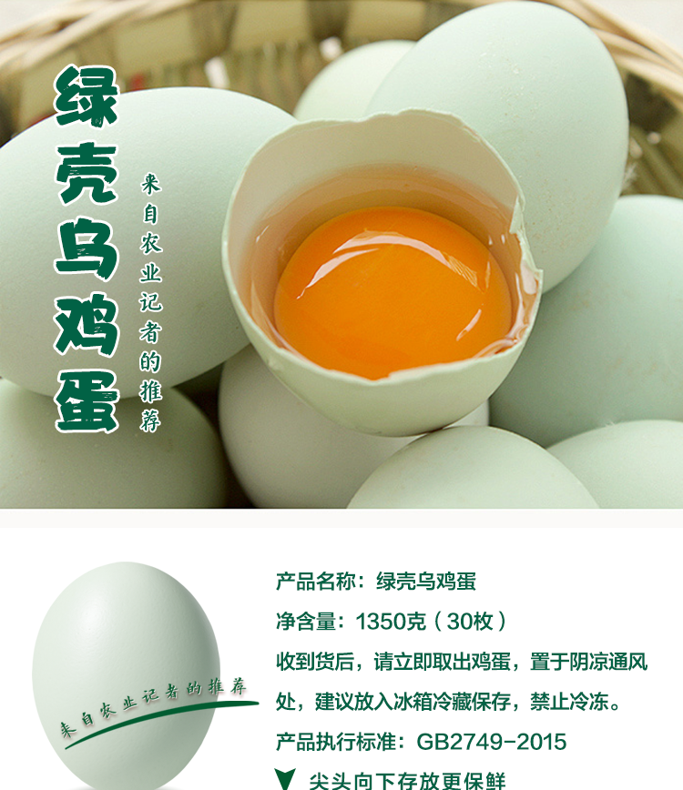广视农场绿壳乌鸡蛋 口感鲜香30枚装 产地直发 新鲜到家