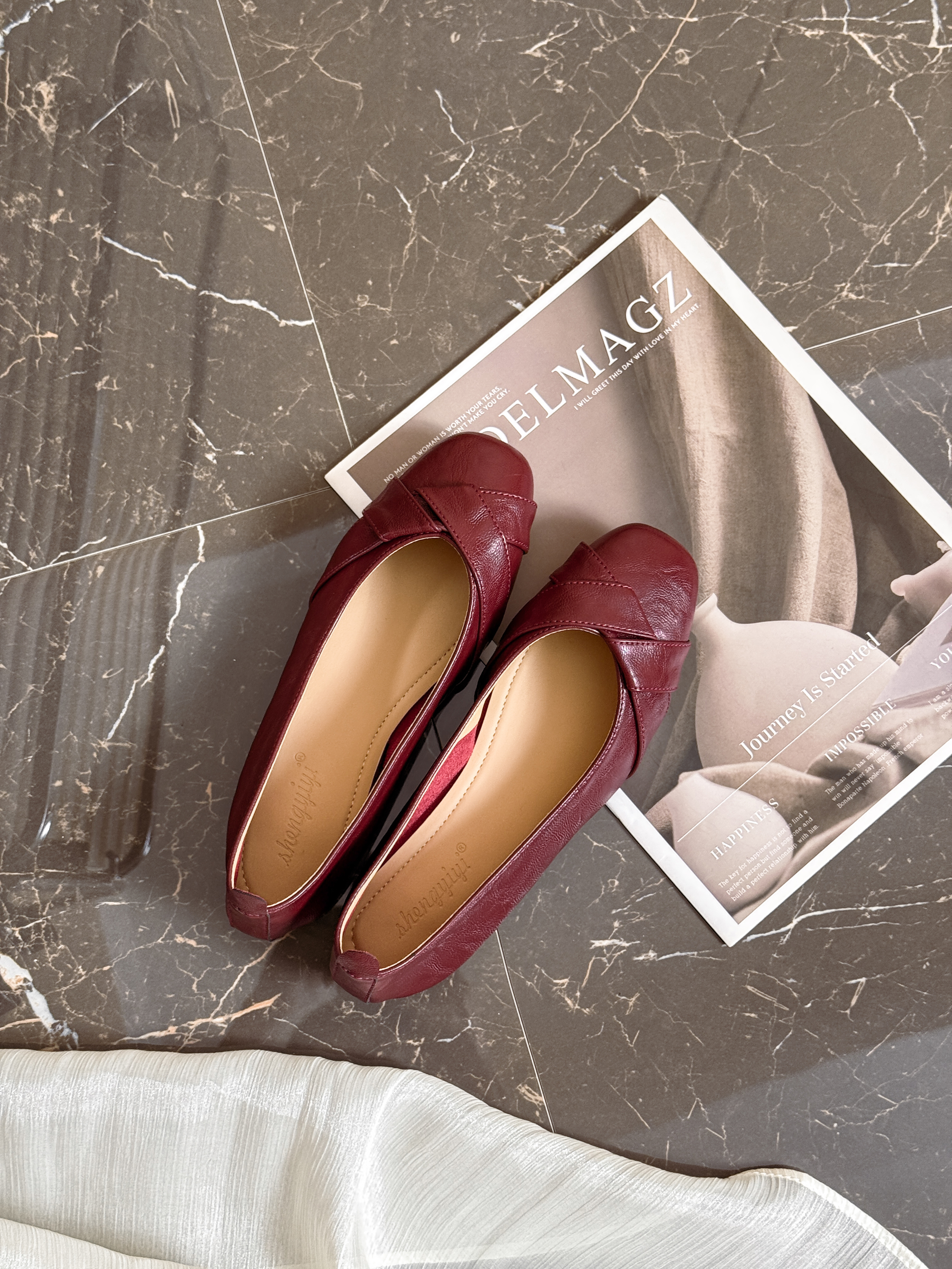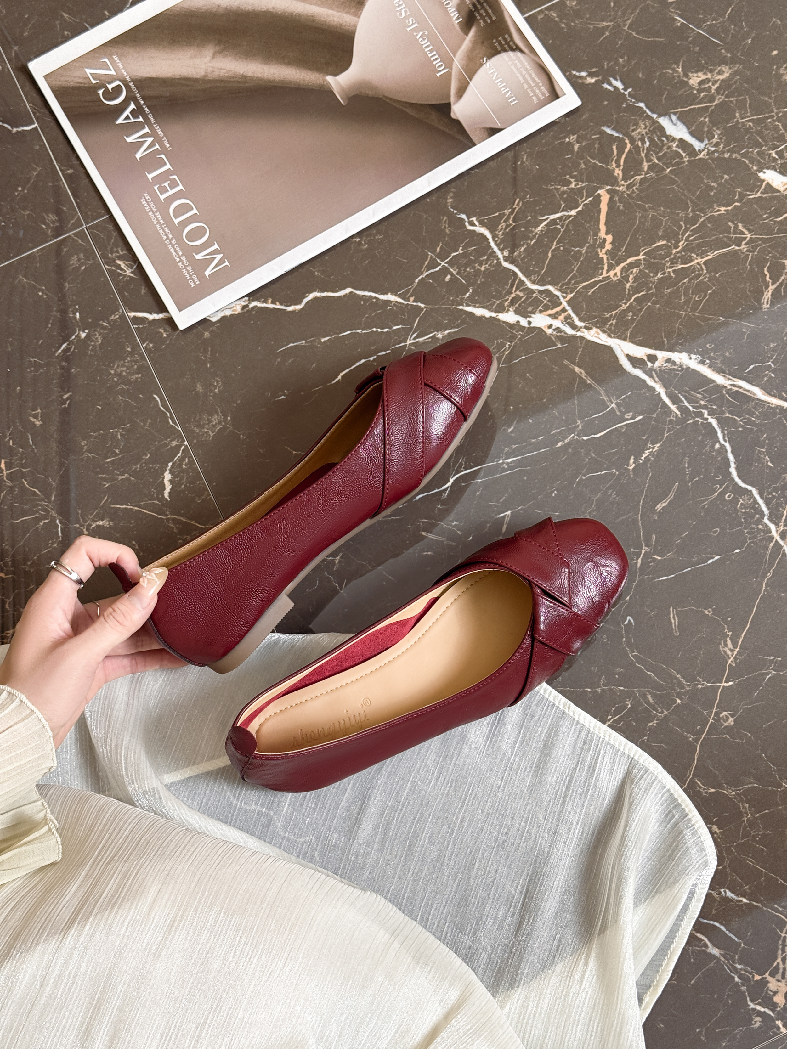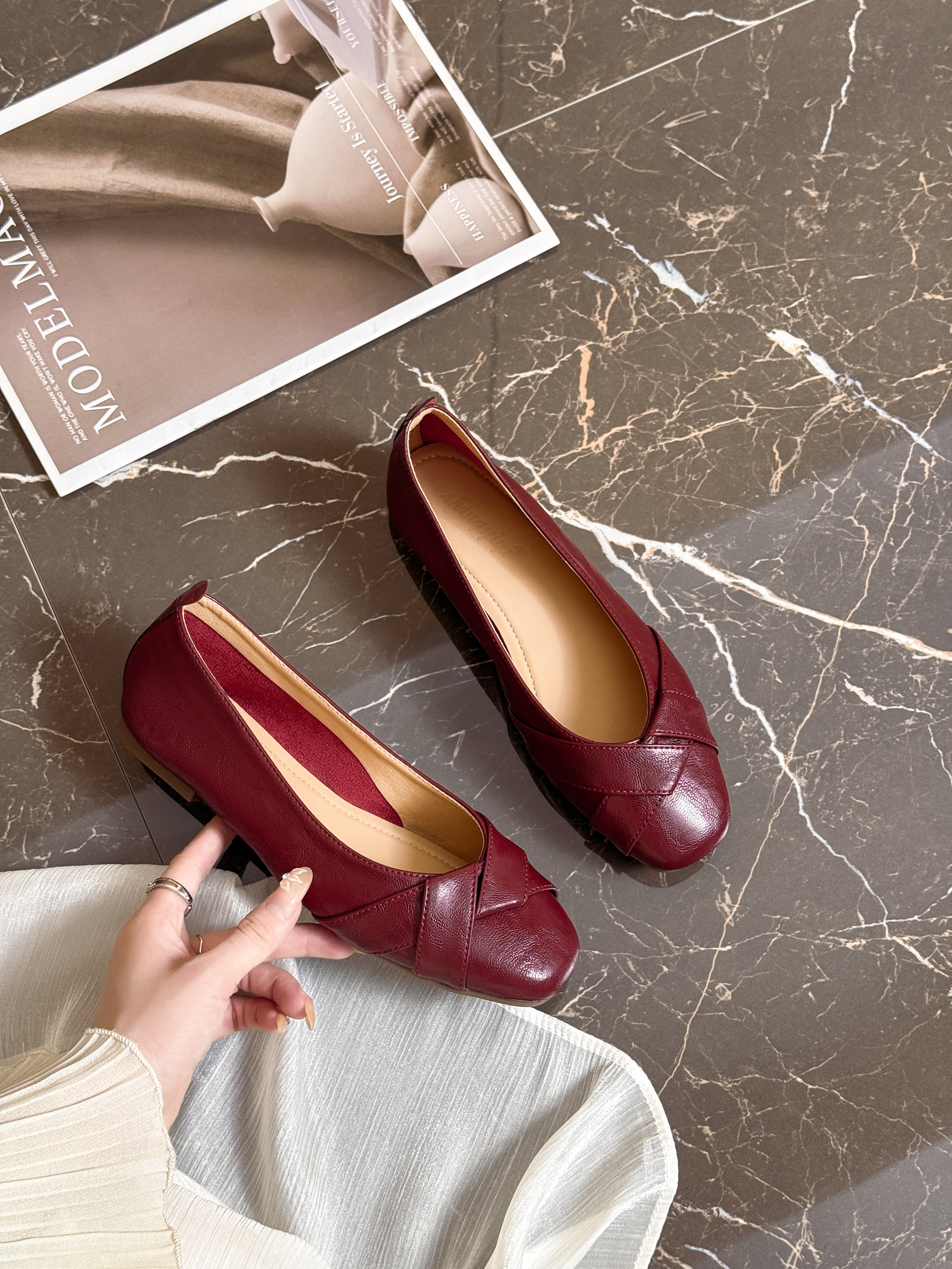 复古小羊皮(内衬含有羊皮)平底鞋--浅口平底一脚蹬