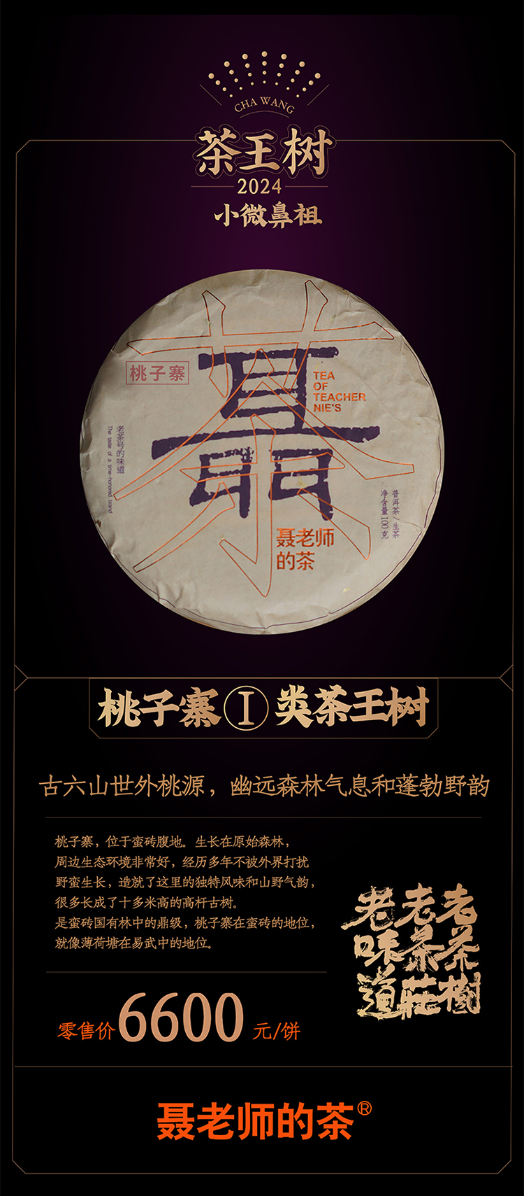【聂老师的茶】2024年桃子寨一类茶王树100克生饼