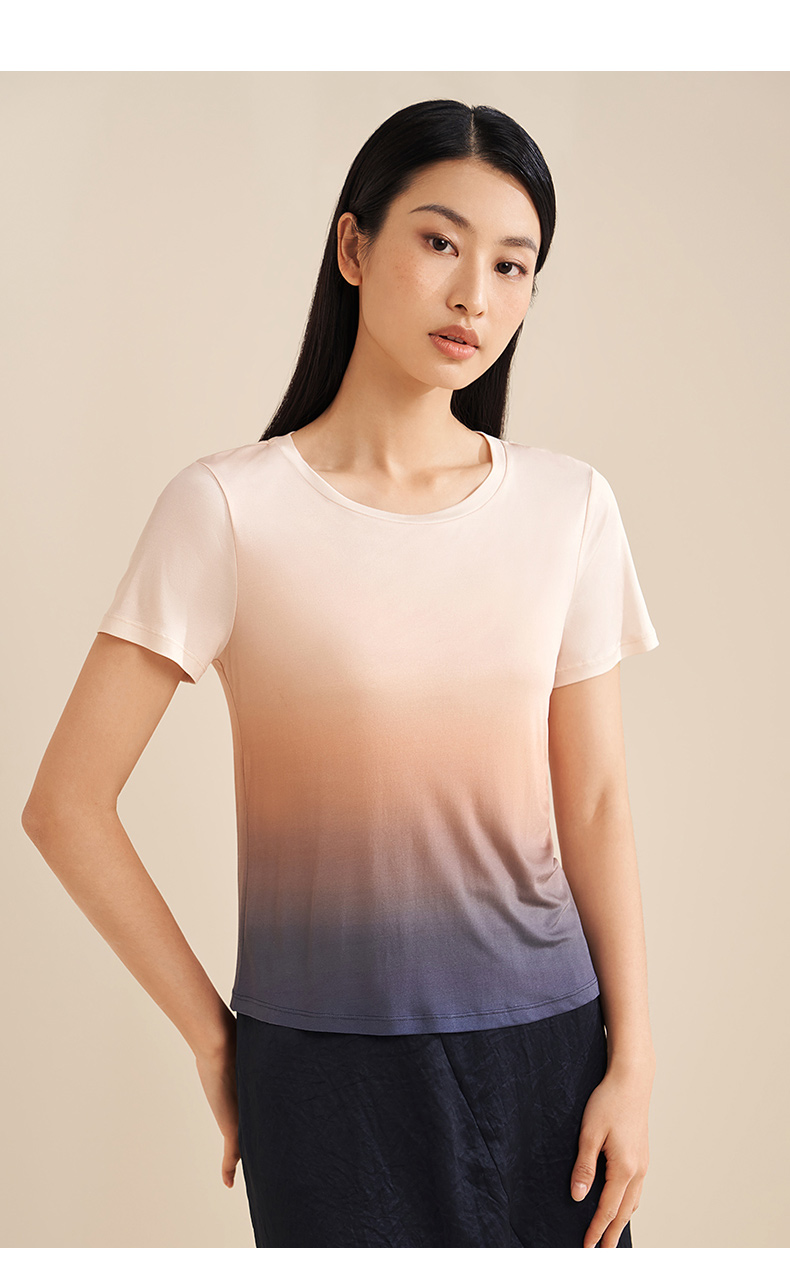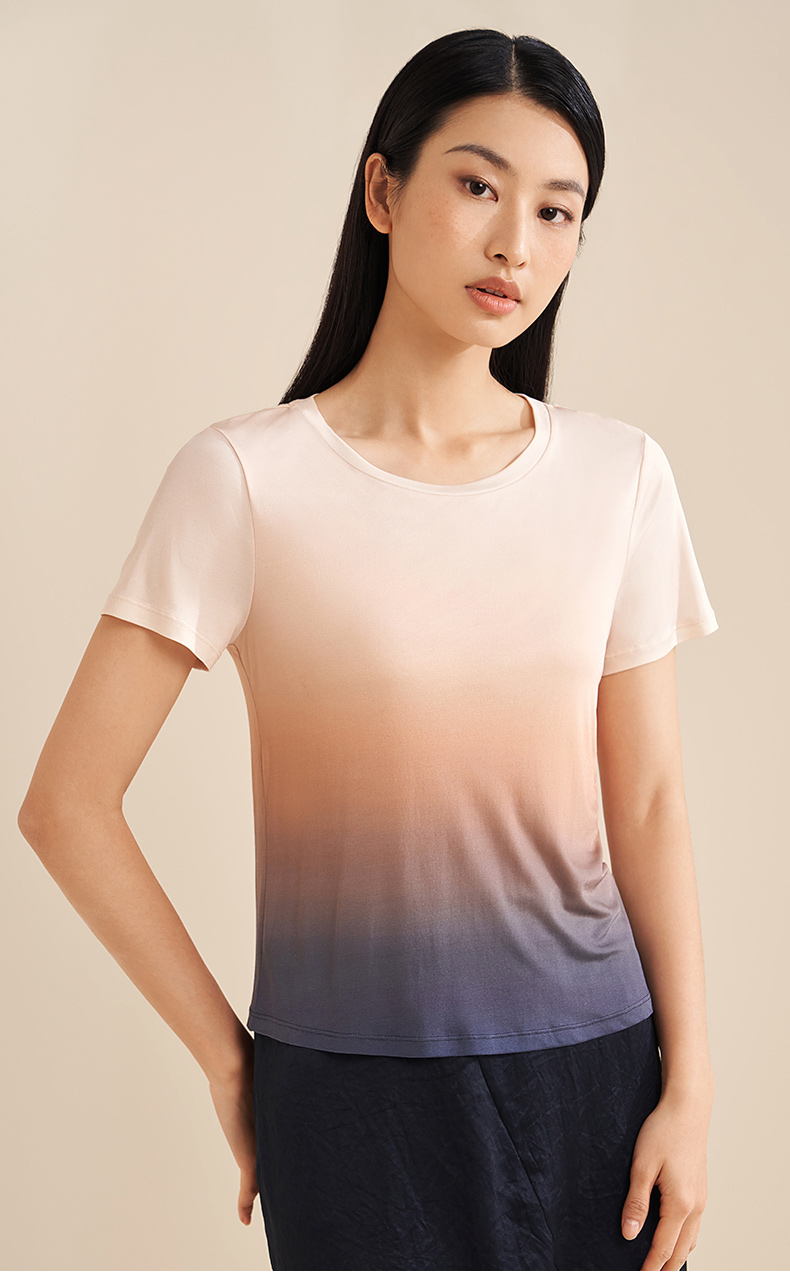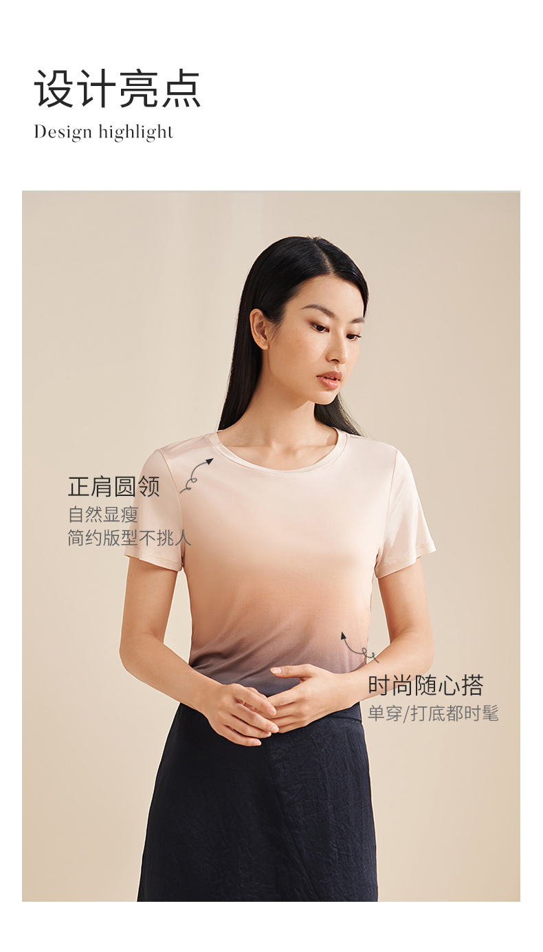 【显瘦渐变】金三塔真丝T恤女100%桑蚕丝时尚短袖小衫睡衣春夏新品 YZFEA701