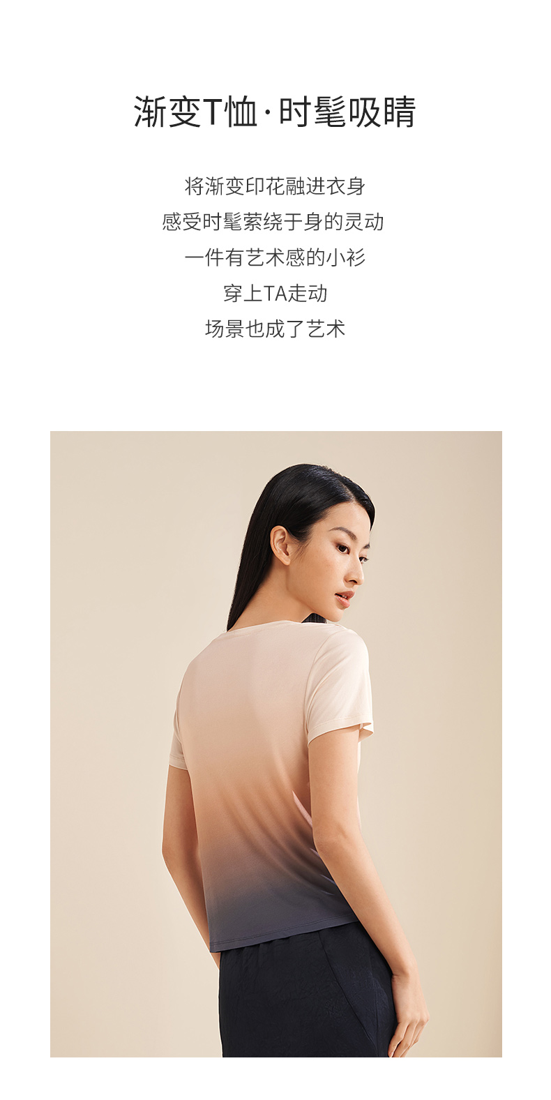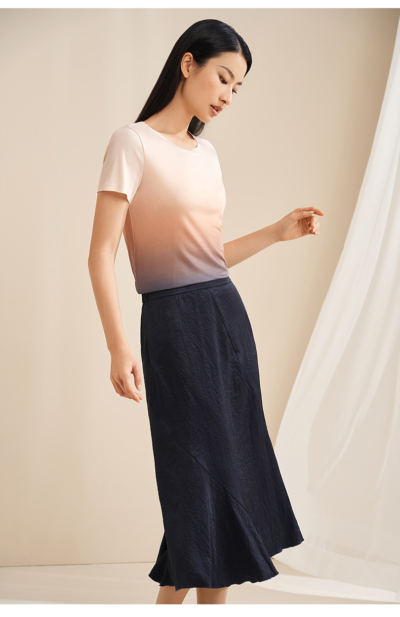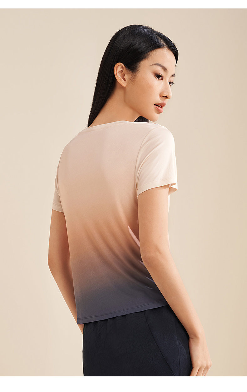 【显瘦渐变】金三塔真丝T恤女100%桑蚕丝时尚短袖小衫睡衣春夏新品 YZFEA701