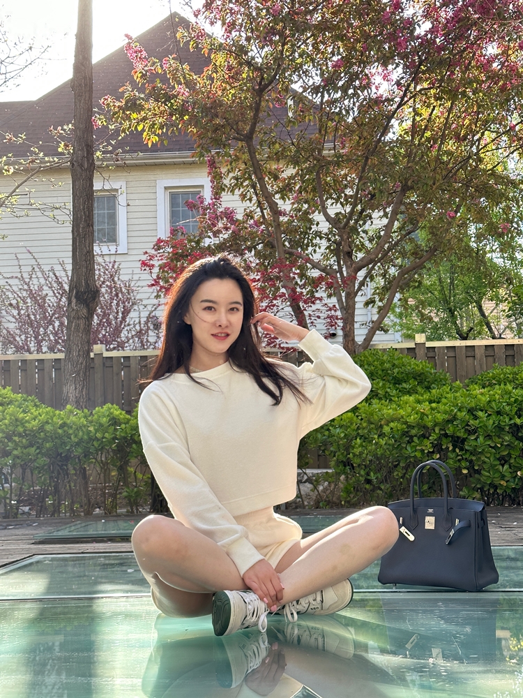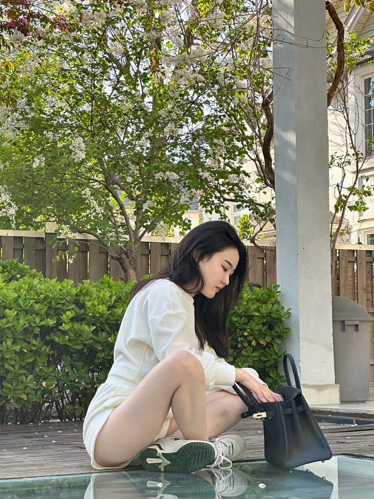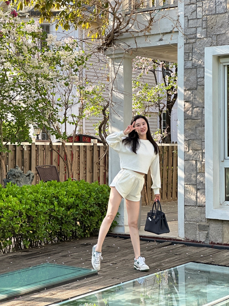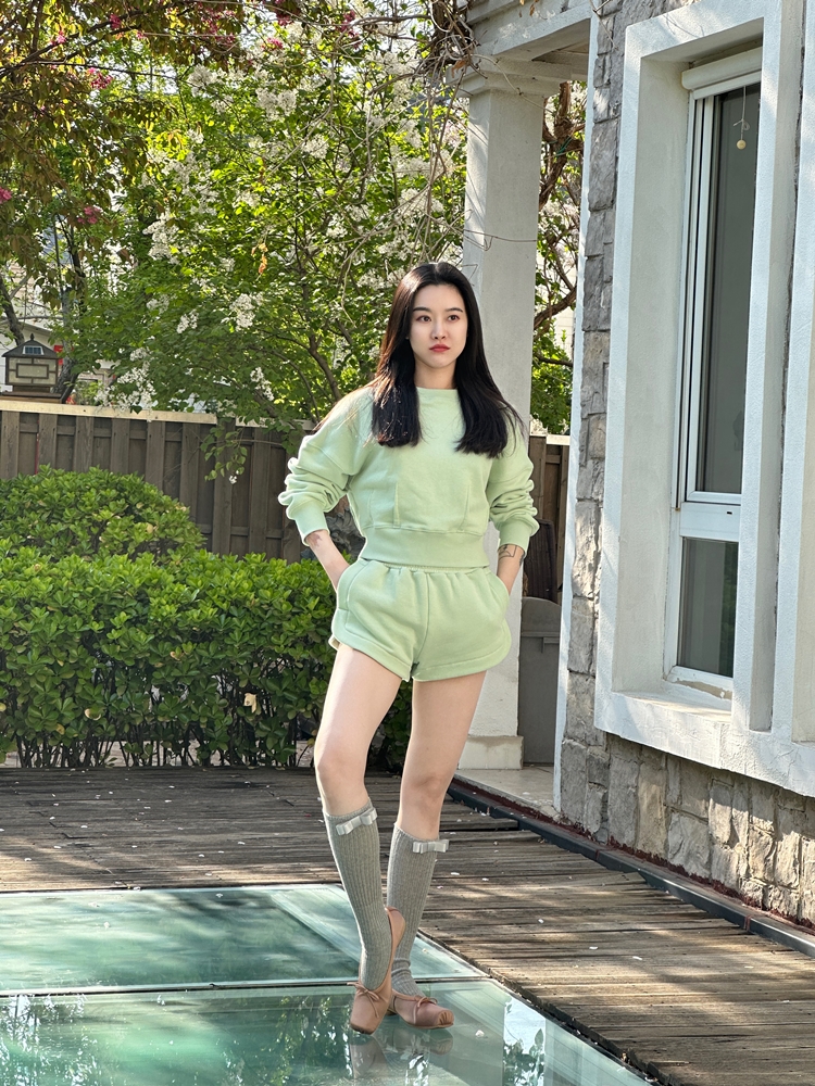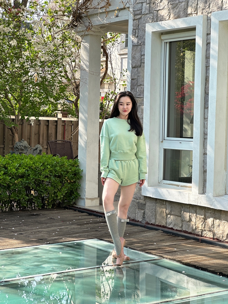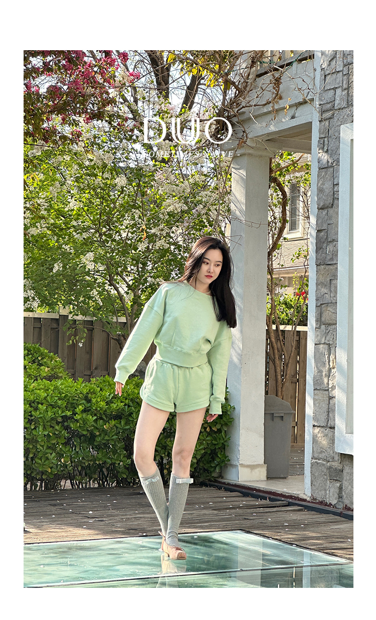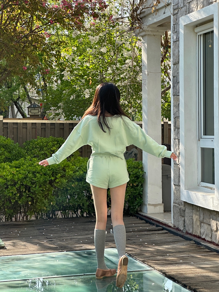 DUO智仙生 Peterpan淡绿色收腰卫衣花瓣短裤套装和白色毛巾套装