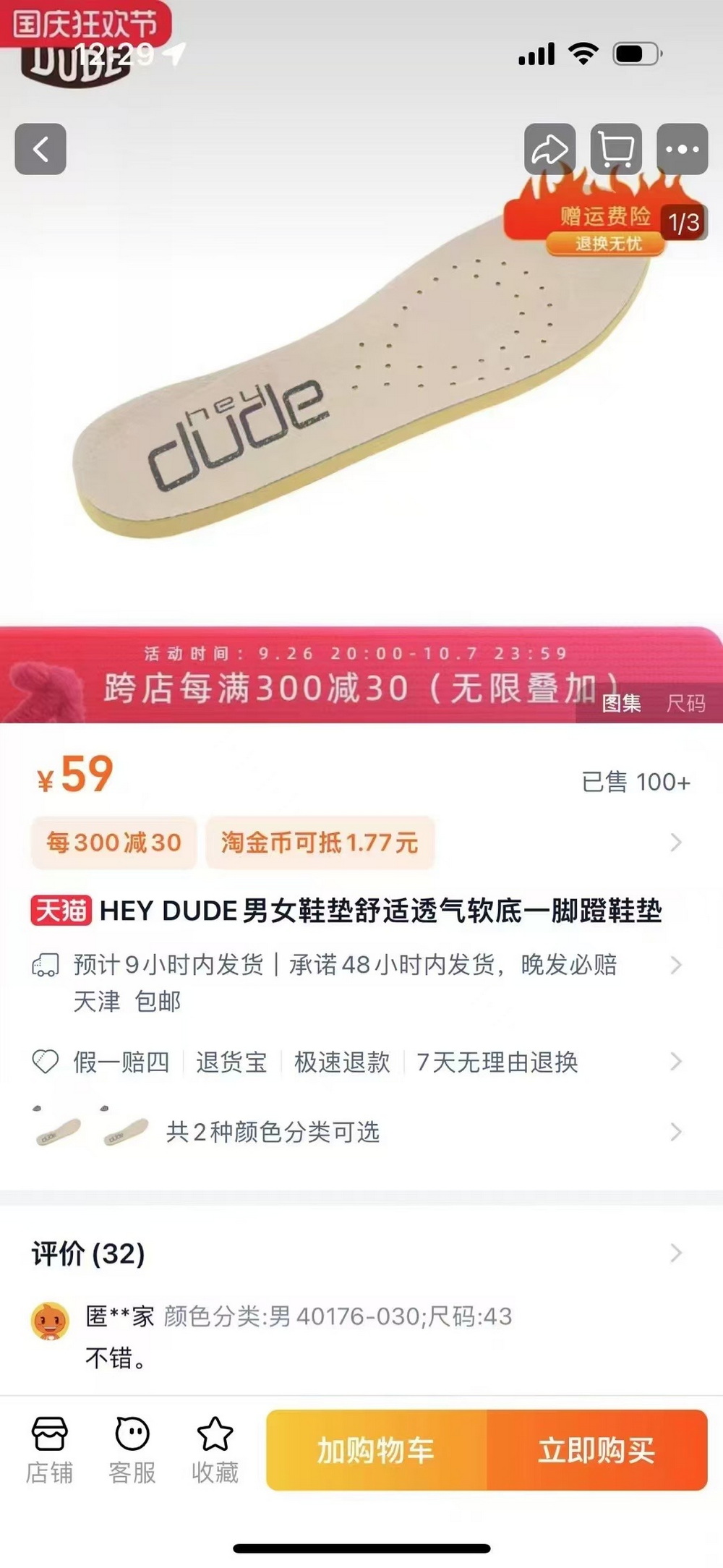 断码清仓!官网一双50块! 可以裁剪!! 清仓 猪皮加eva复合鞋垫!!无敌的品质!HEY DUDE男女鞋垫舒适透气软底一脚蹬鞋垫