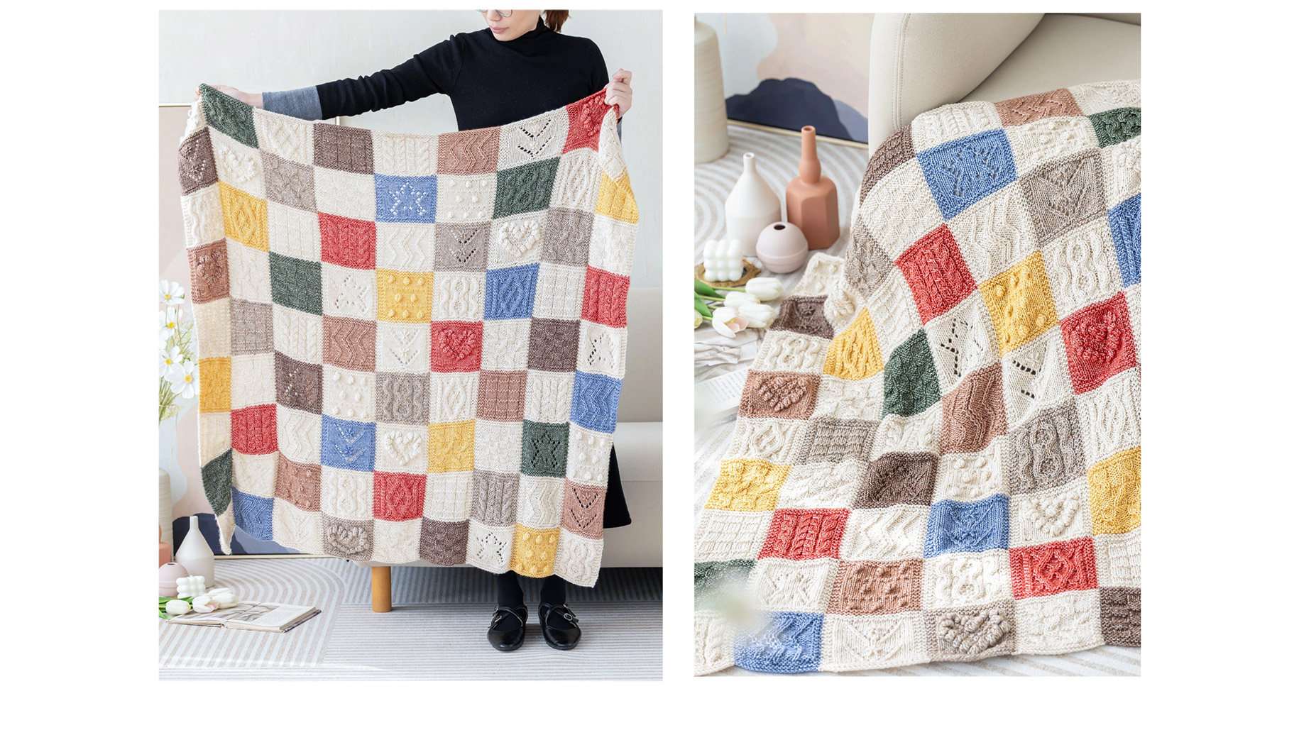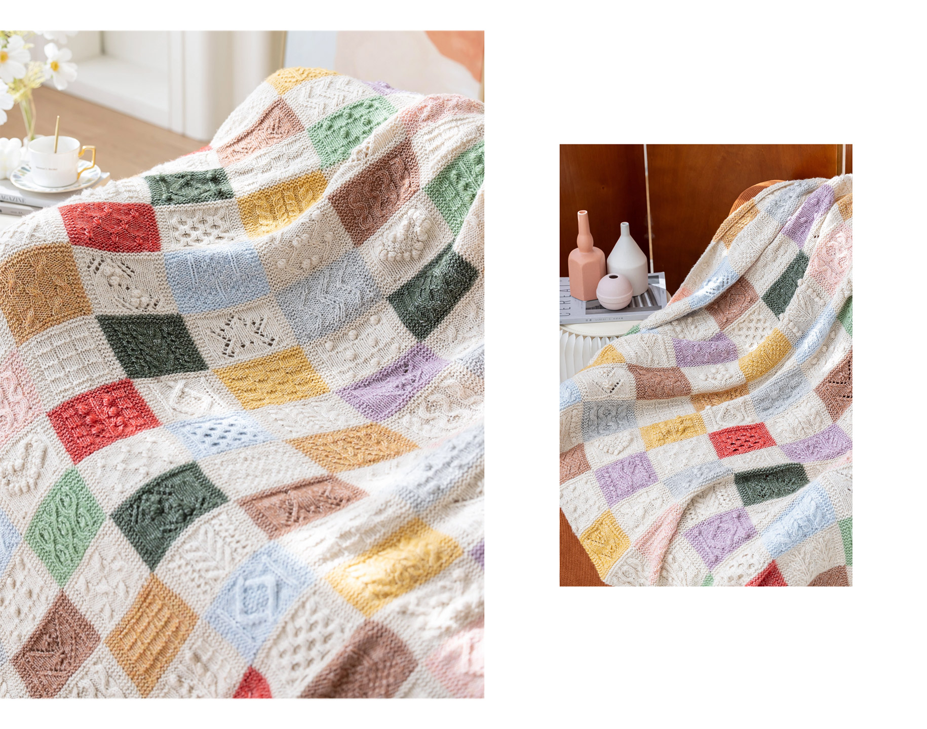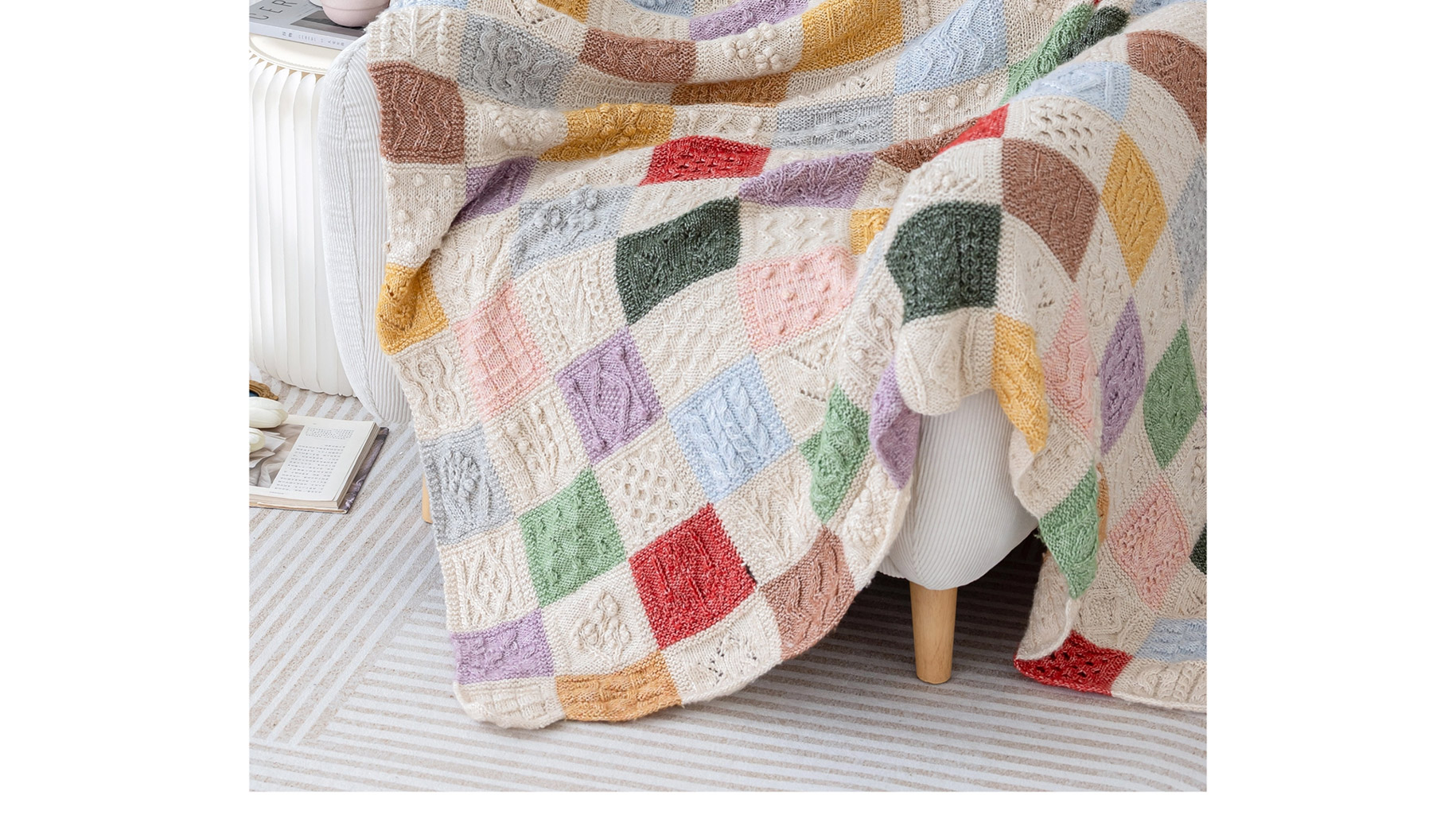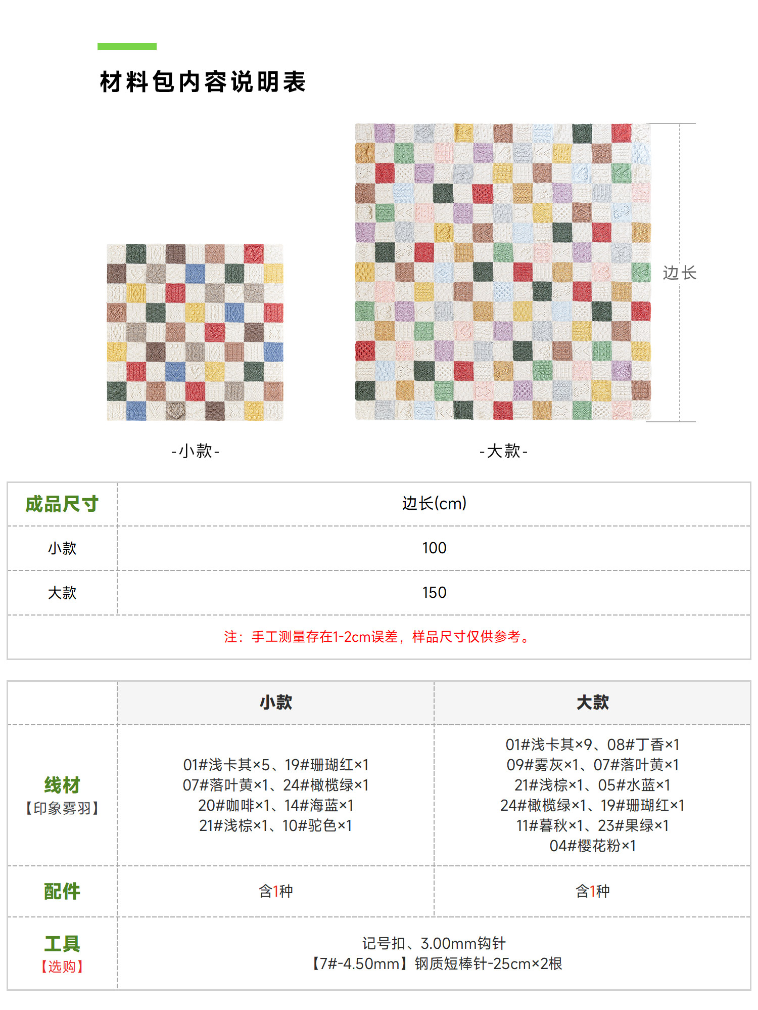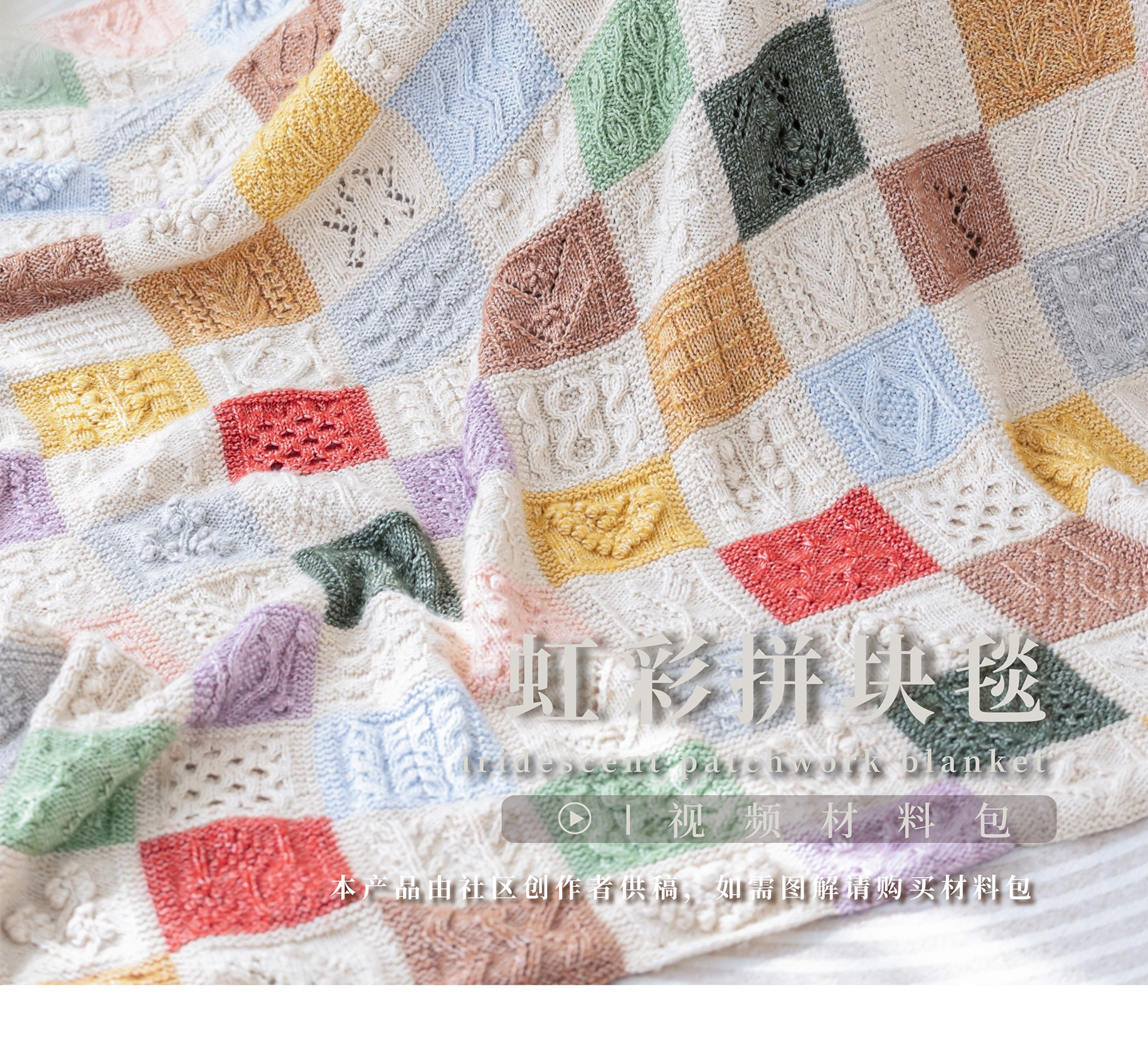 苏苏姐家虹彩拼块毯手工DIY编织钩针毯家居盖毯毛线团材料包