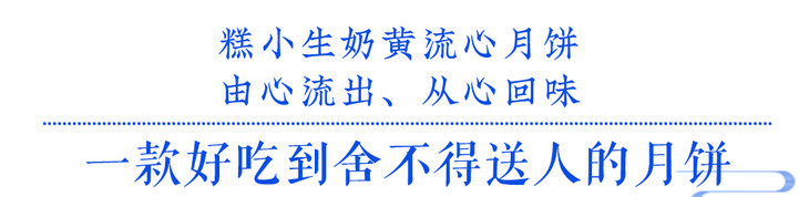 糕小生奶黄流心月饼,采用新西兰进口黄油,在26道古法基础上改进配方,用独家工艺将油香咸蛋黄+奶黄馅儿蒸炼而成。