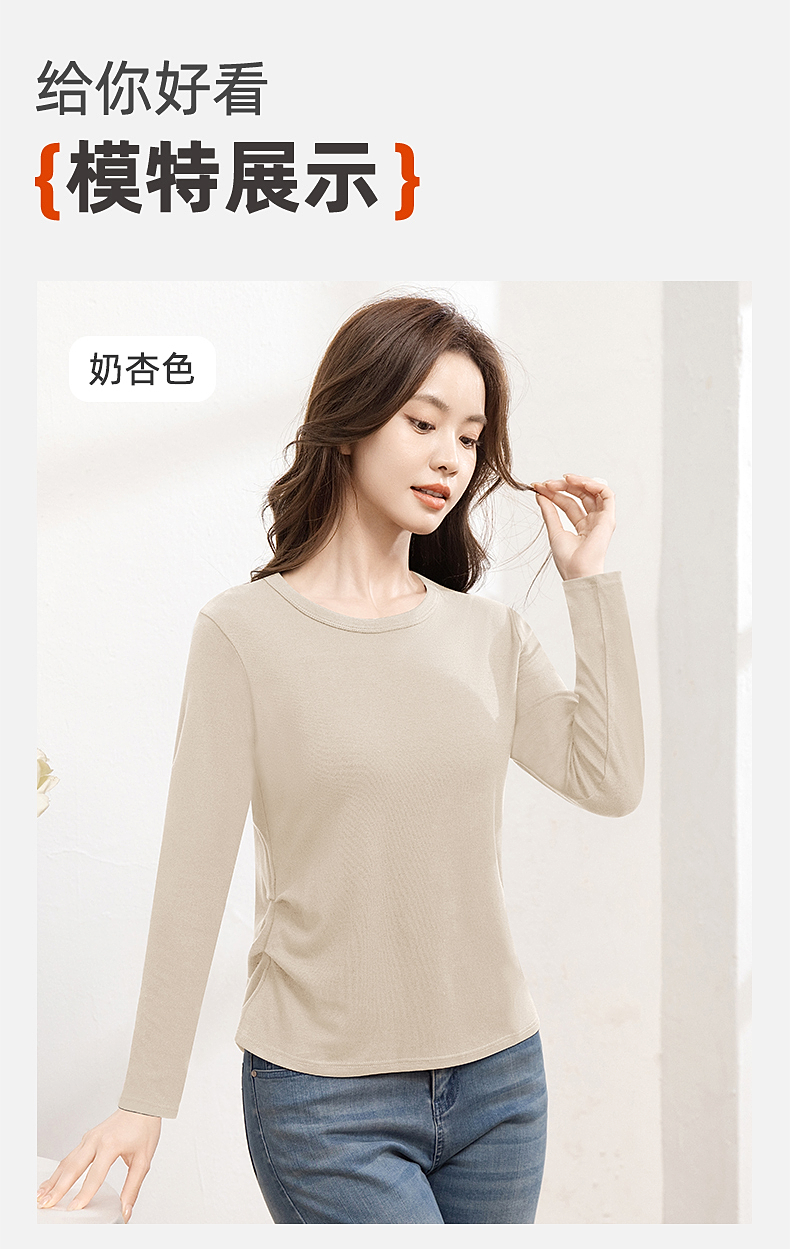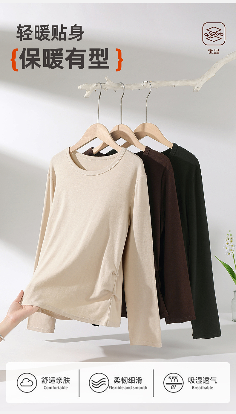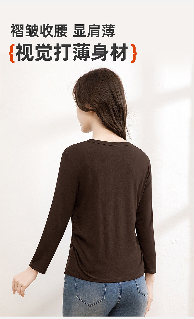 雅黛俪女士秋季冬季保暖打底衫内搭外穿时尚褶皱收腰显瘦上衣2025年新款