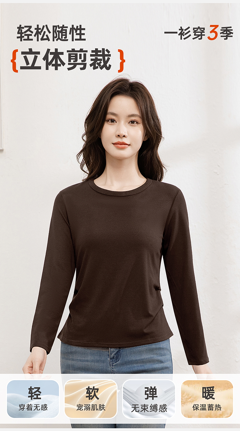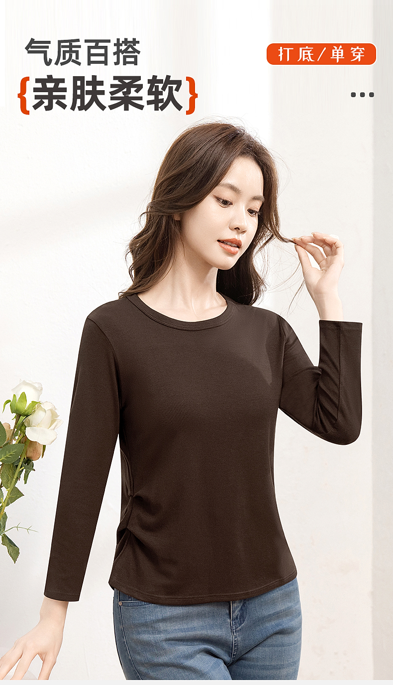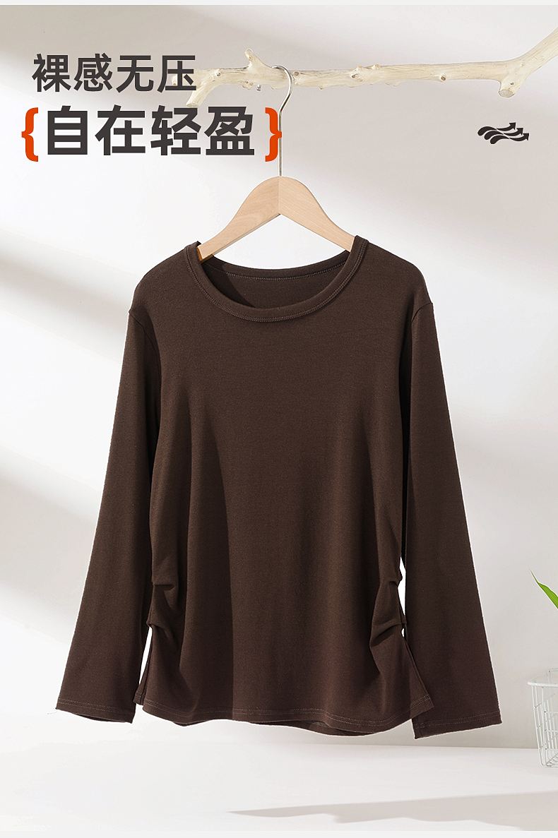 雅黛俪女士秋季冬季保暖打底衫内搭外穿时尚褶皱收腰显瘦上衣2025年新款