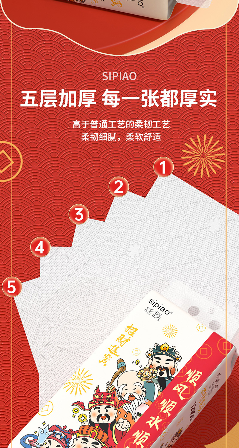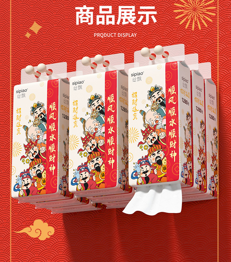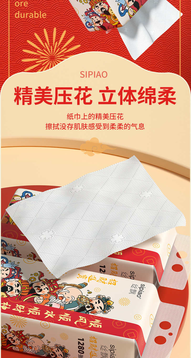 丝飘新年五福 1280张1/2/8提家用整箱实惠装纸巾餐巾纸卫生纸面纸