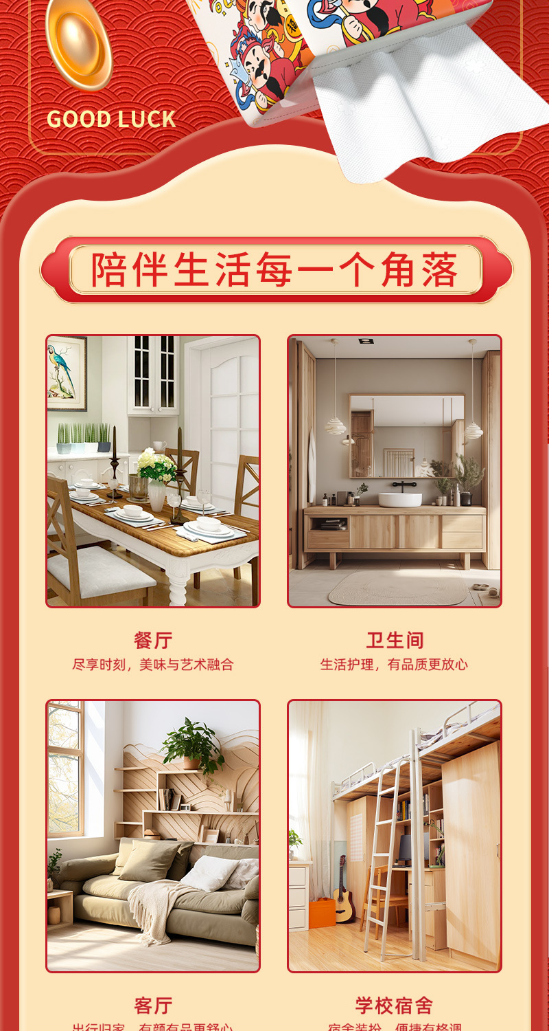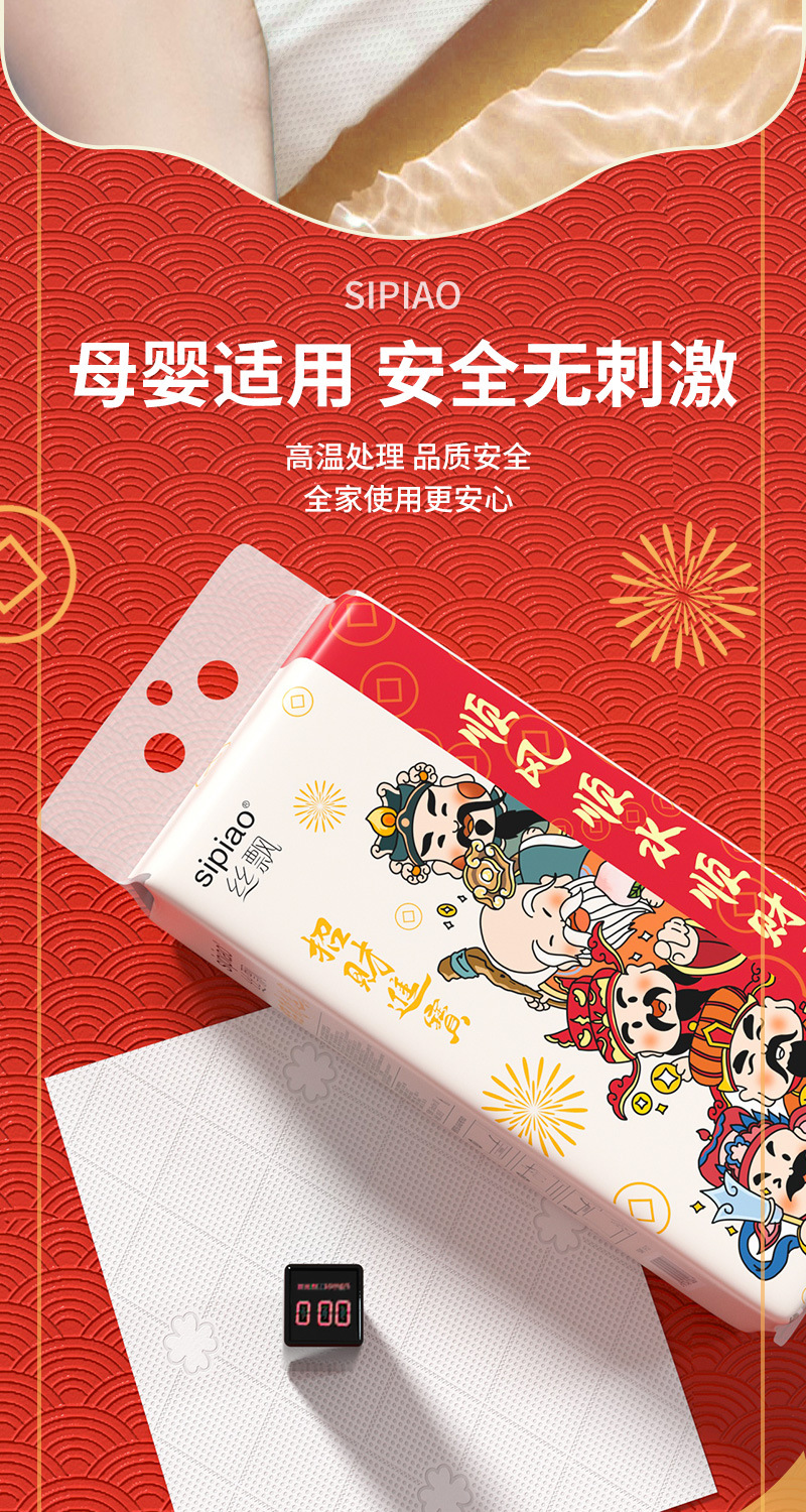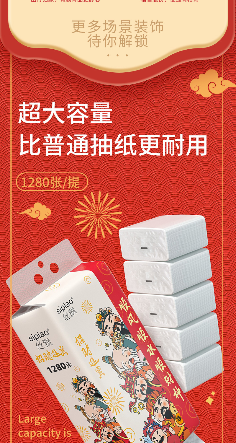 丝飘新年五福 1280张1/2/8提家用整箱实惠装纸巾餐巾纸卫生纸面纸