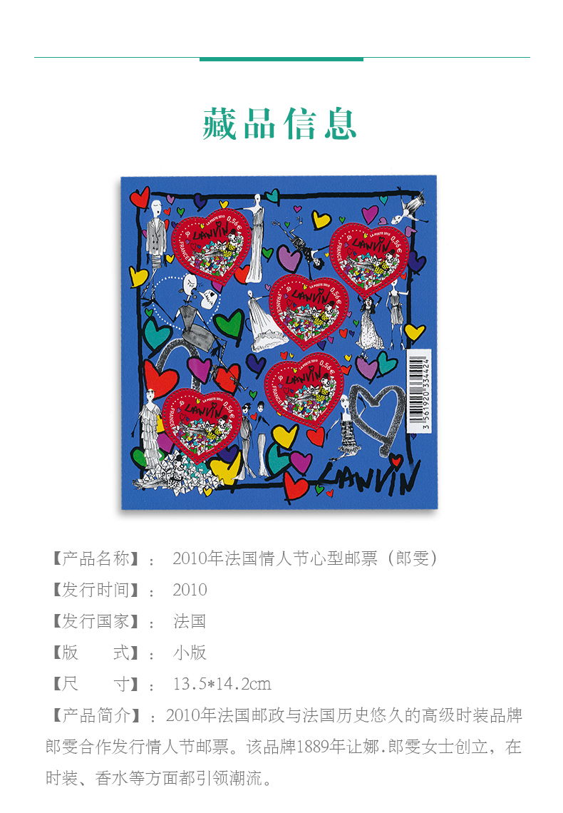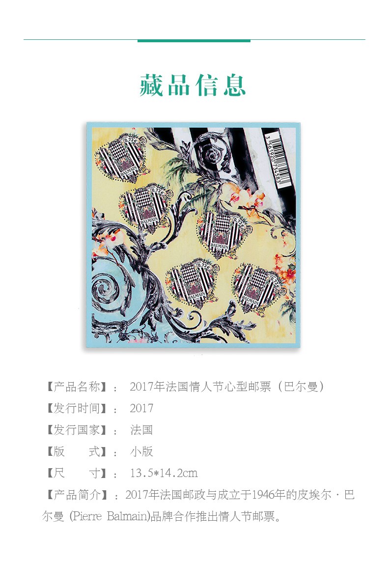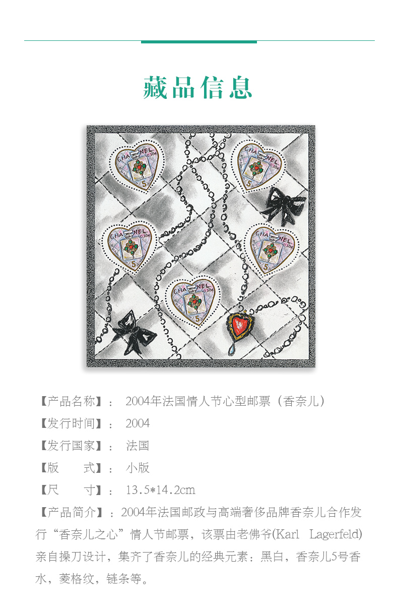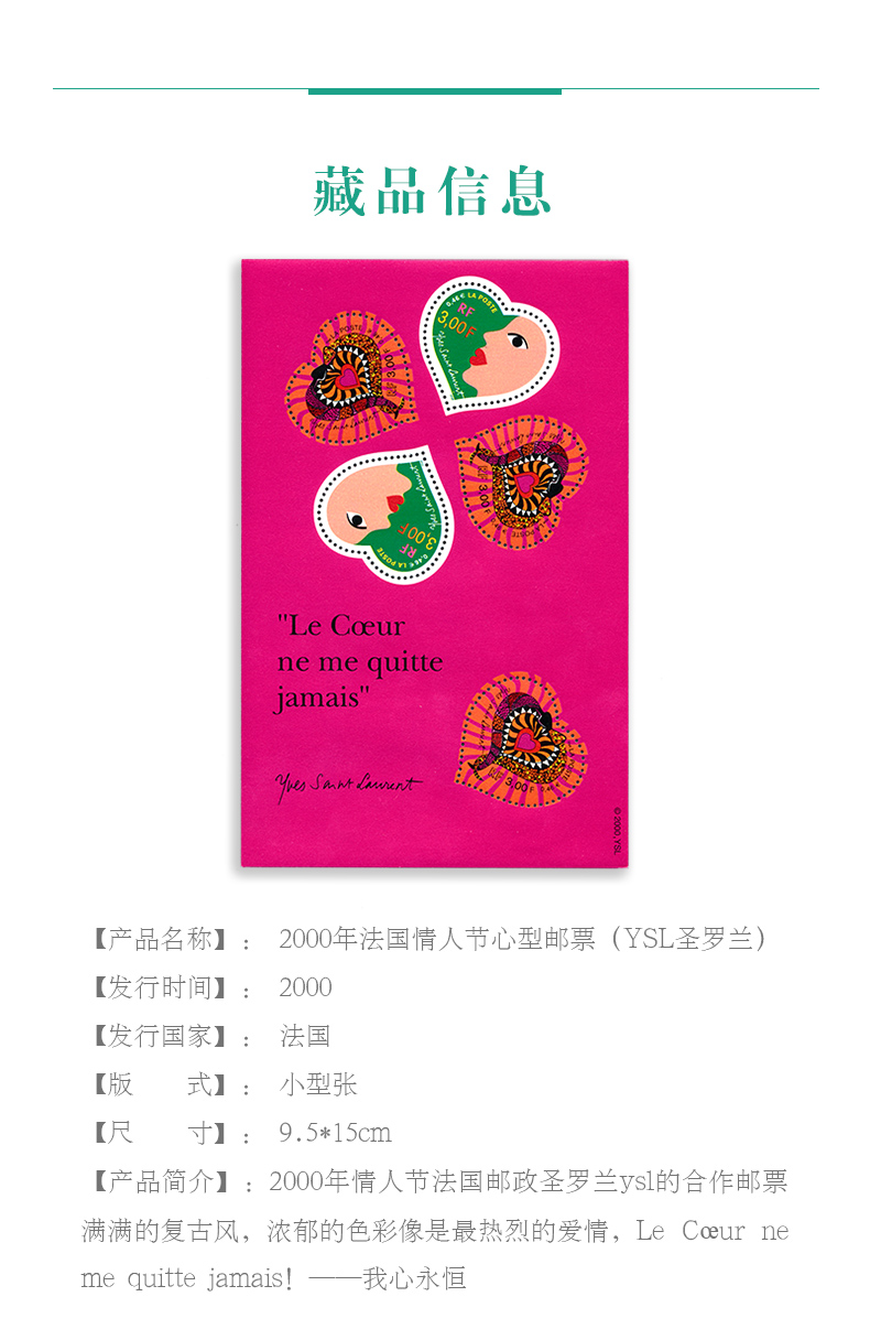法国邮政的经典系列——情人节邮票!自1999年开始发行,第二年开始同法国知名品牌合作,由时尚设计师绘制图案,延续发行至今。