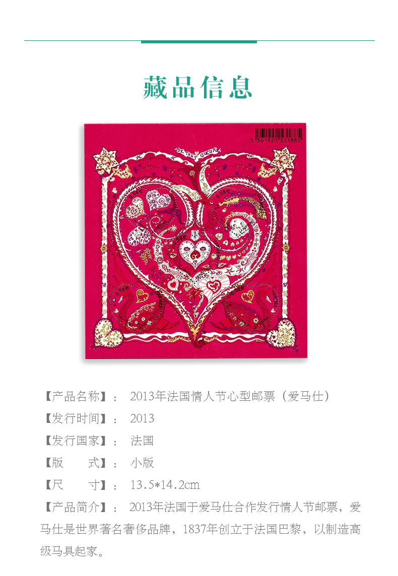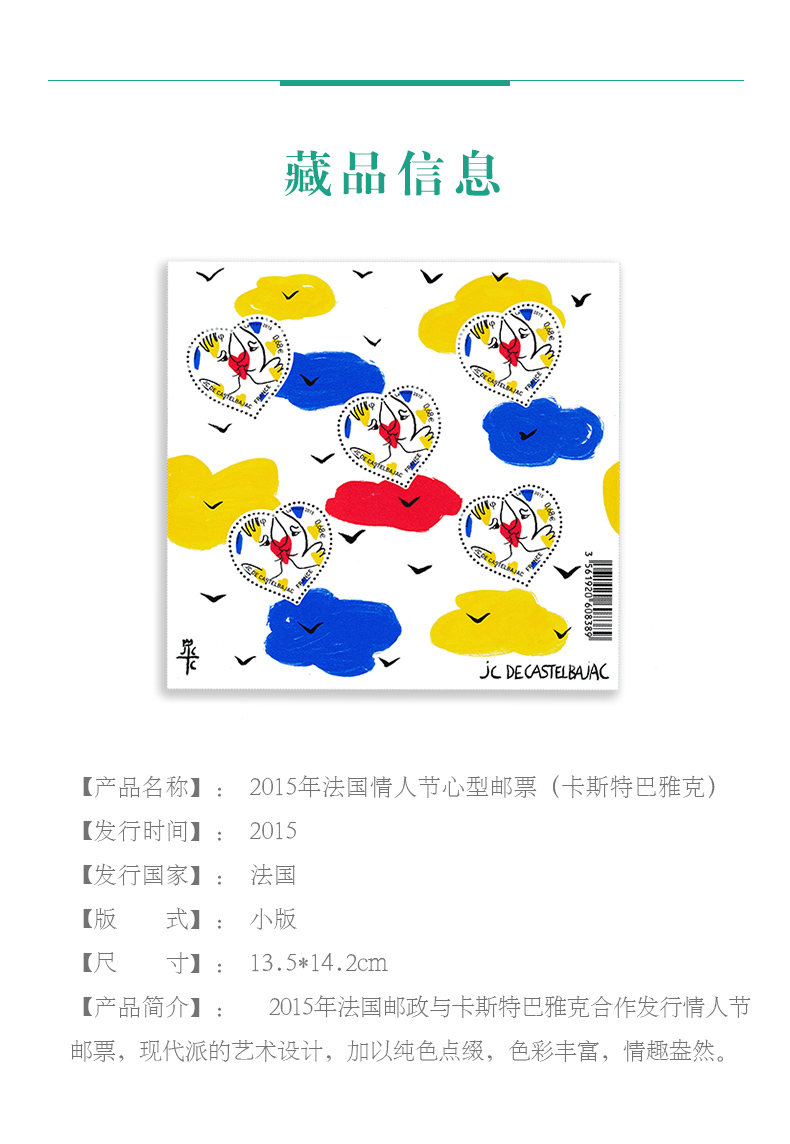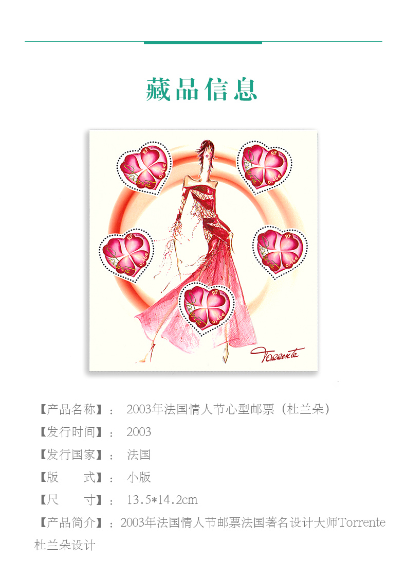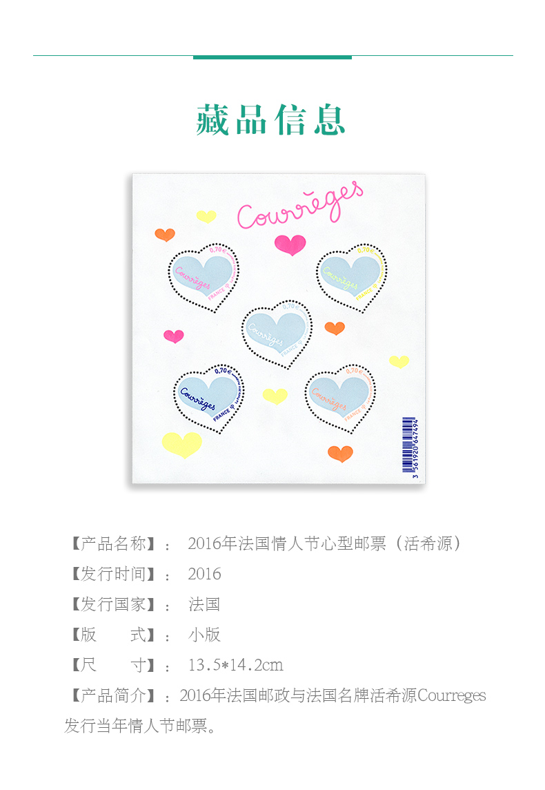 法国邮政的经典系列——情人节邮票!自1999年开始发行,第二年开始同法国知名品牌合作,由时尚设计师绘制图案,延续发行至今。