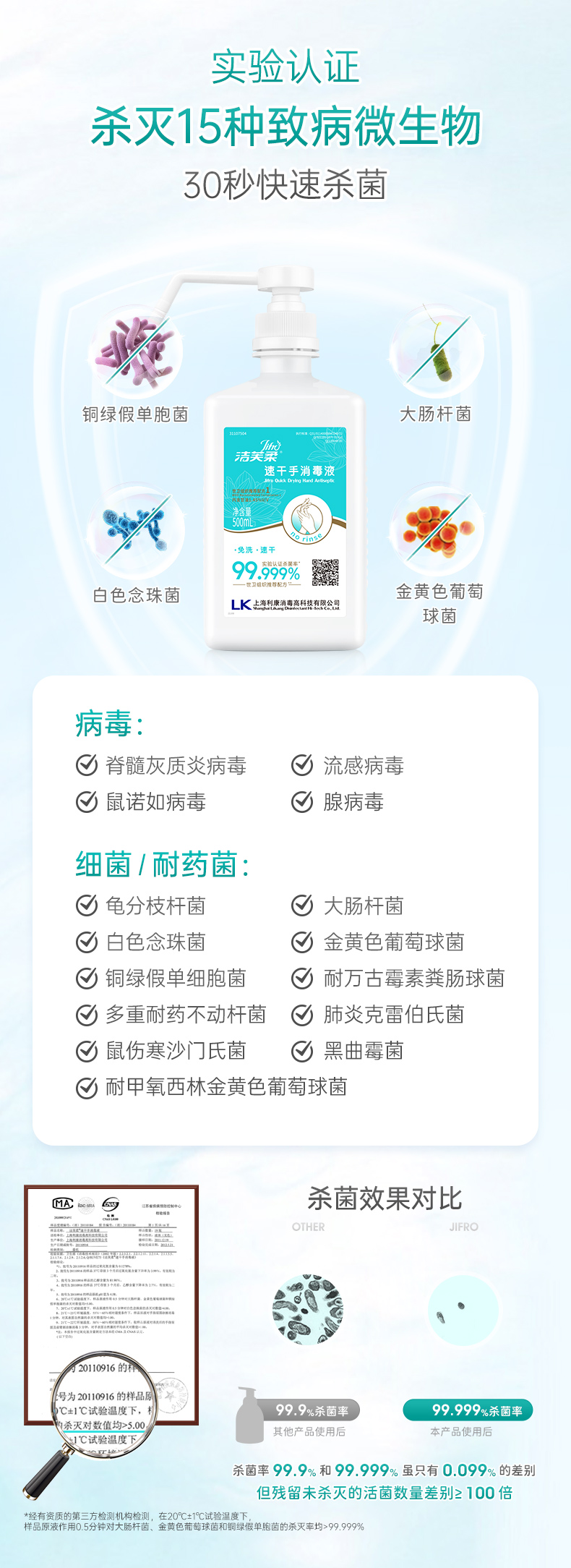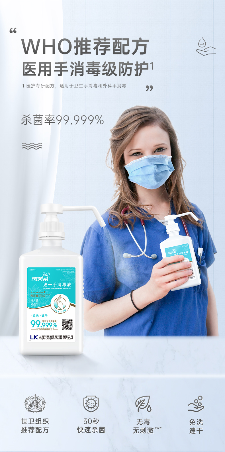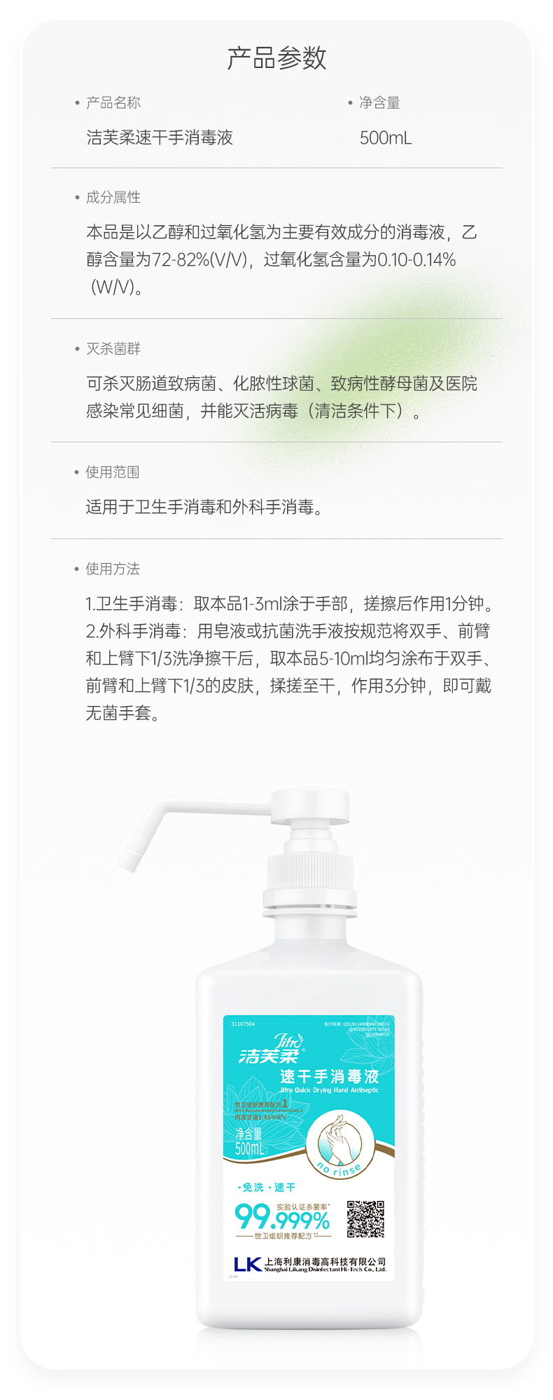 👍洁芙柔75度酒精免洗洗手液消毒杀菌医护级家用儿童手部速干喷雾型500ml*2瓶