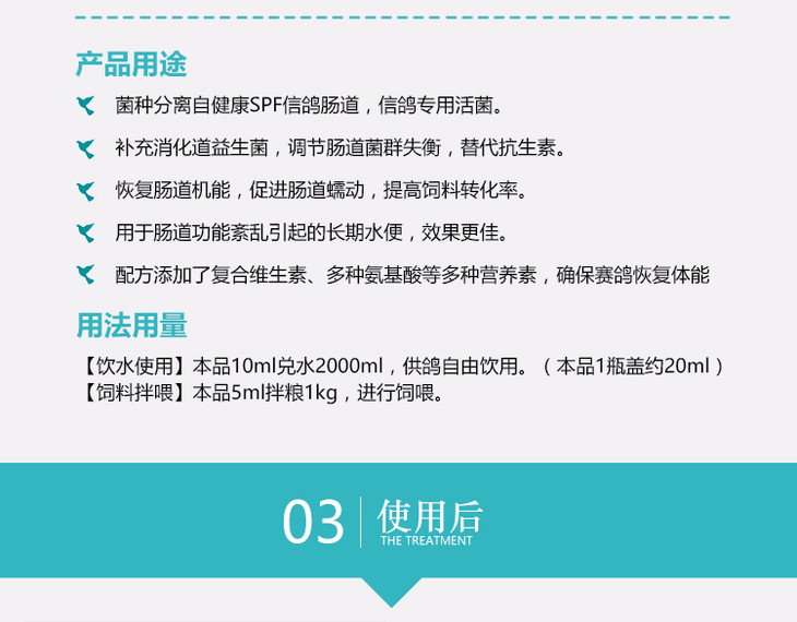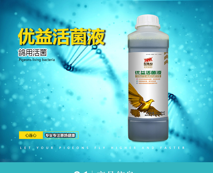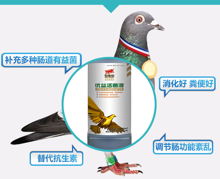 【优益活菌液】1000ml赛信鸽用品鸽子药肠道拉稀水绿便不消化活菌(西安心连心鸽药)