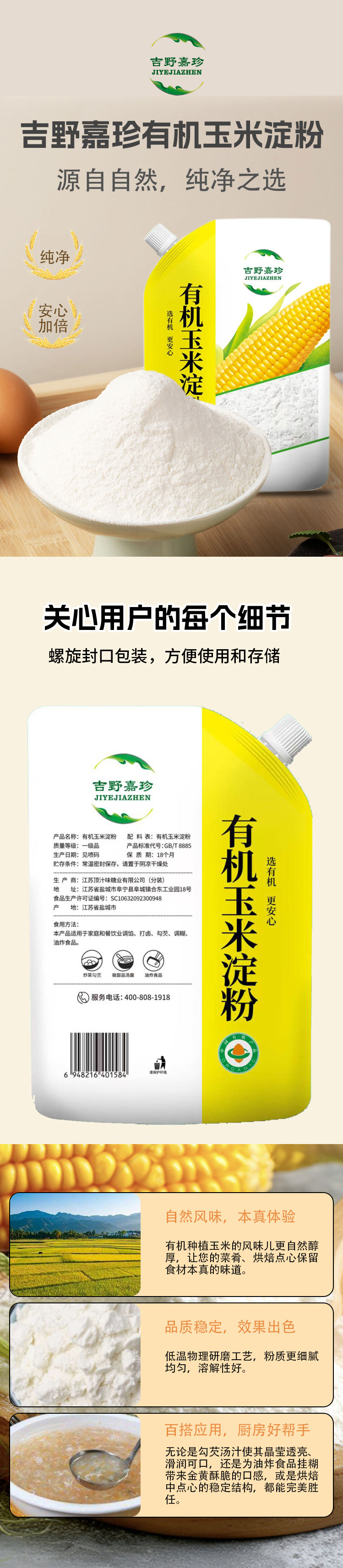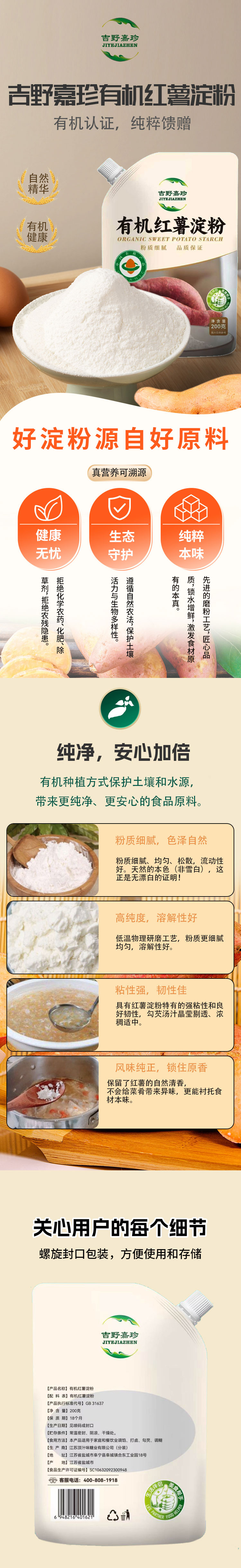 有机红薯淀粉/玉米淀粉200g/袋粉质细腻品质保证 多种用途京津冀满百包邮