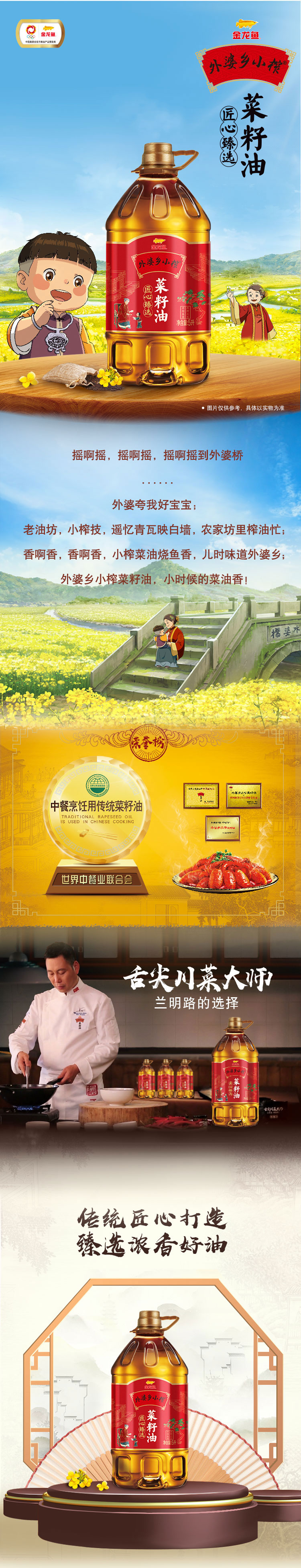 金龙鱼外婆乡小榨匠心甄选菜籽油5L/桶*2