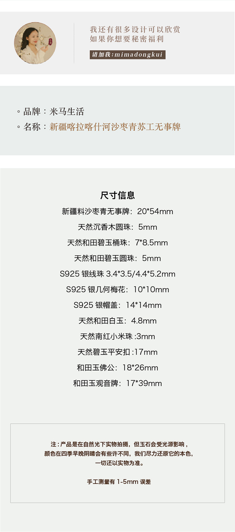 米马姐姐特定 新疆喀拉喀什河沙枣青苏工无事牌佛公 独家设计项链绳