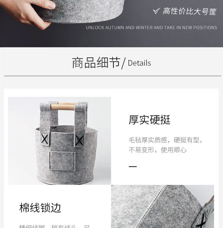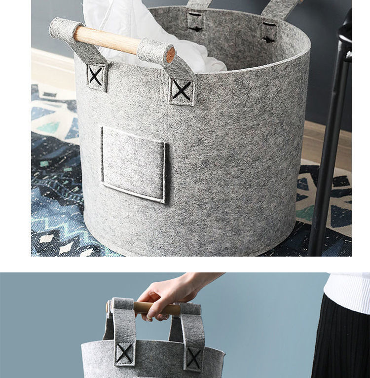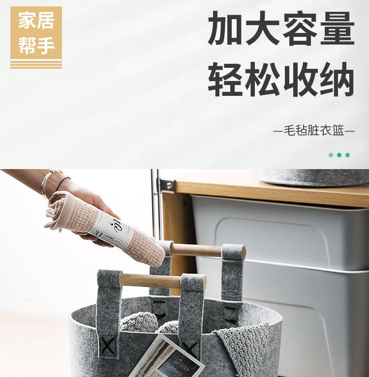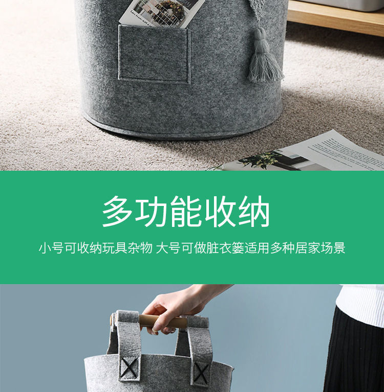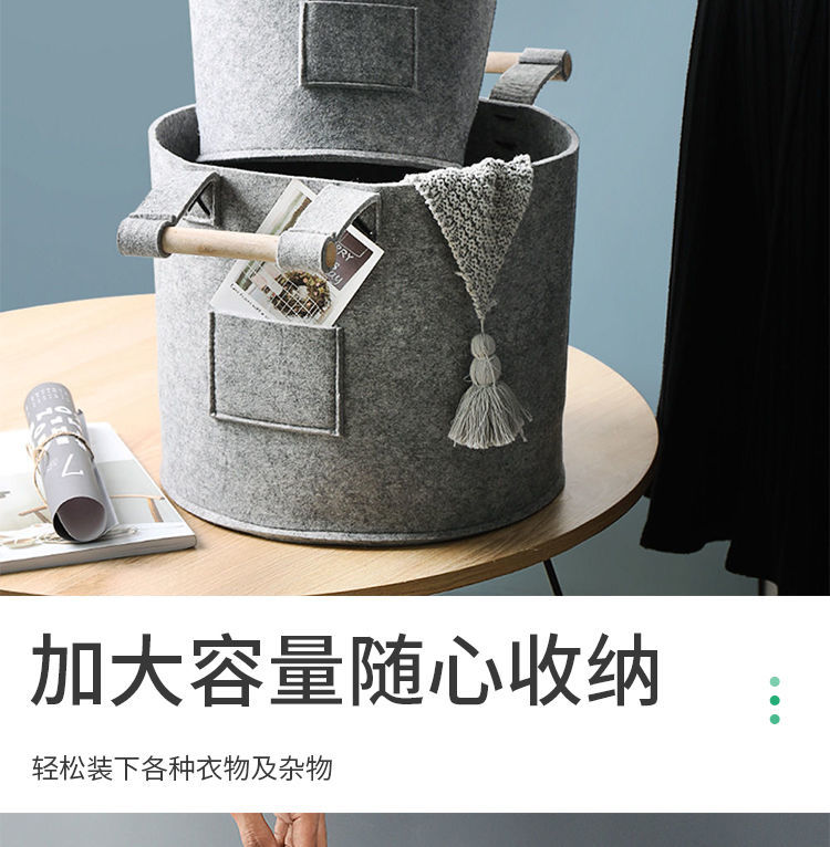 家用简约脏衣篮布艺收纳桶毛毡洗衣篮脏衣服收纳筐儿童玩具收纳桶