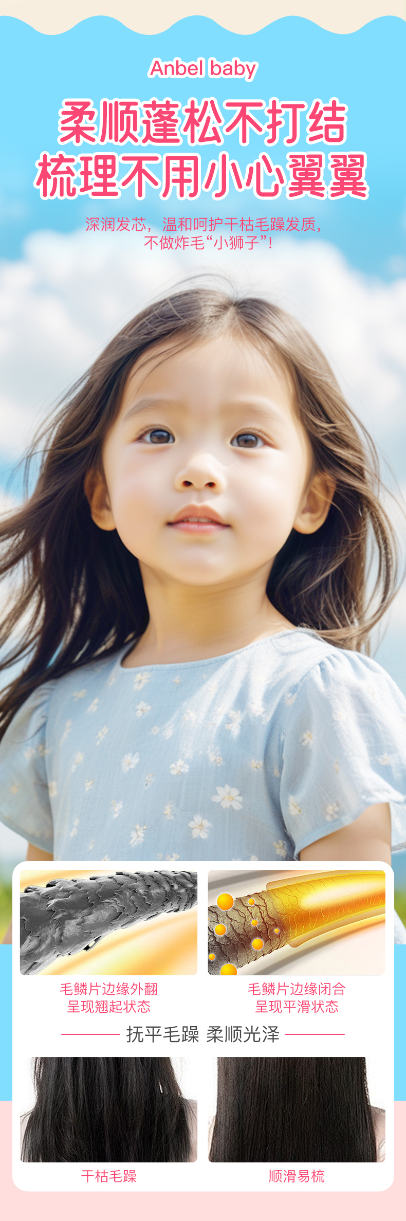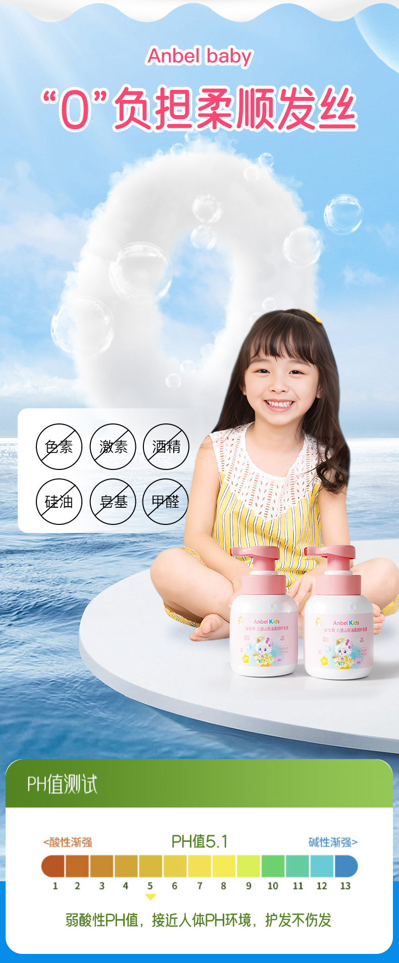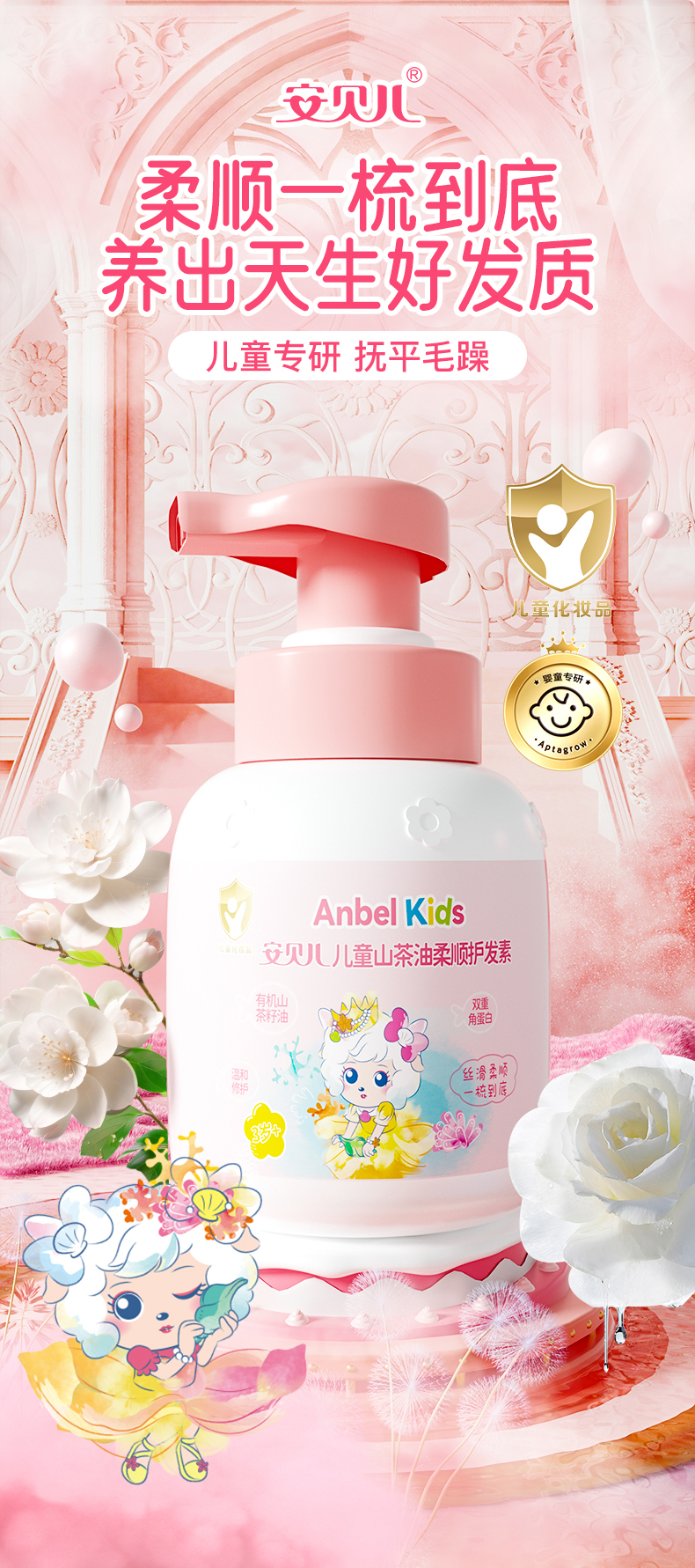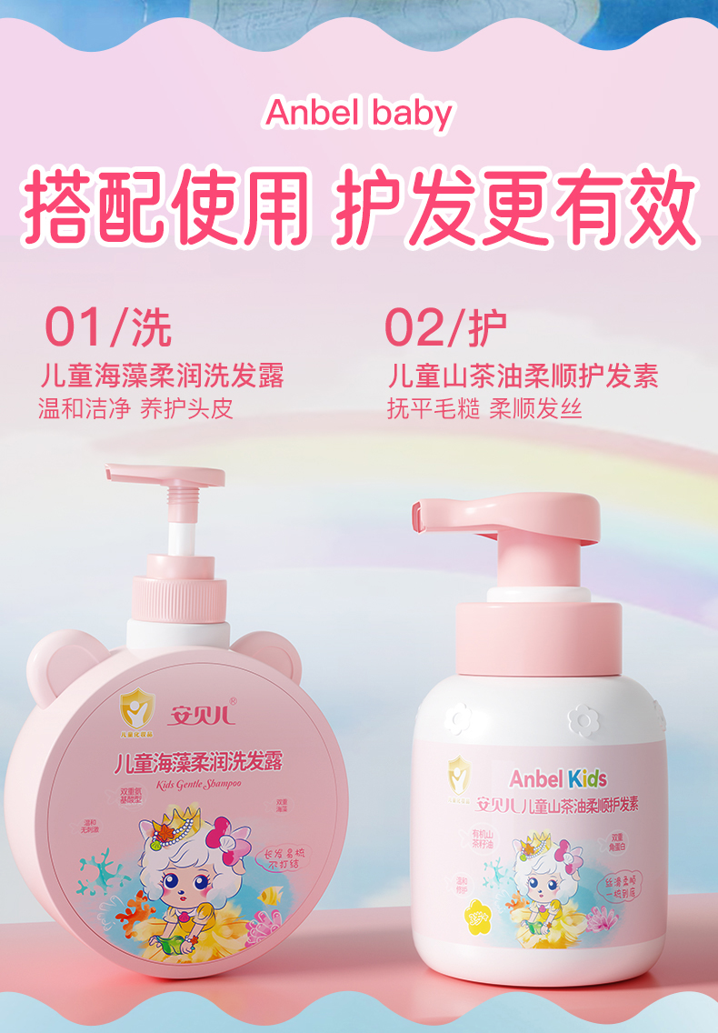 安贝儿 儿童山茶油柔顺护发素+儿童海藻柔润洗发露加送小样300ml+500ml+30g+50ml