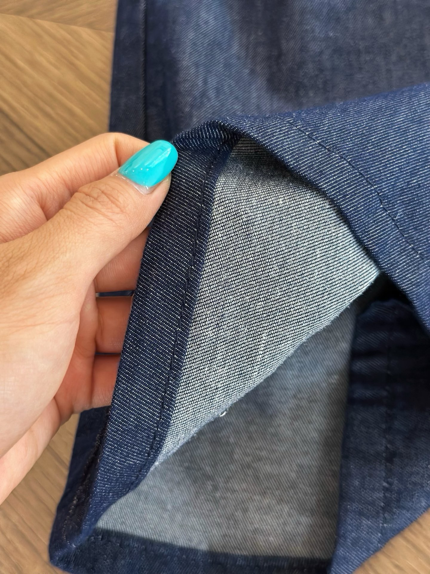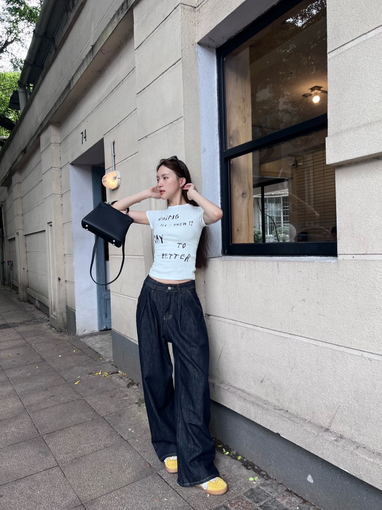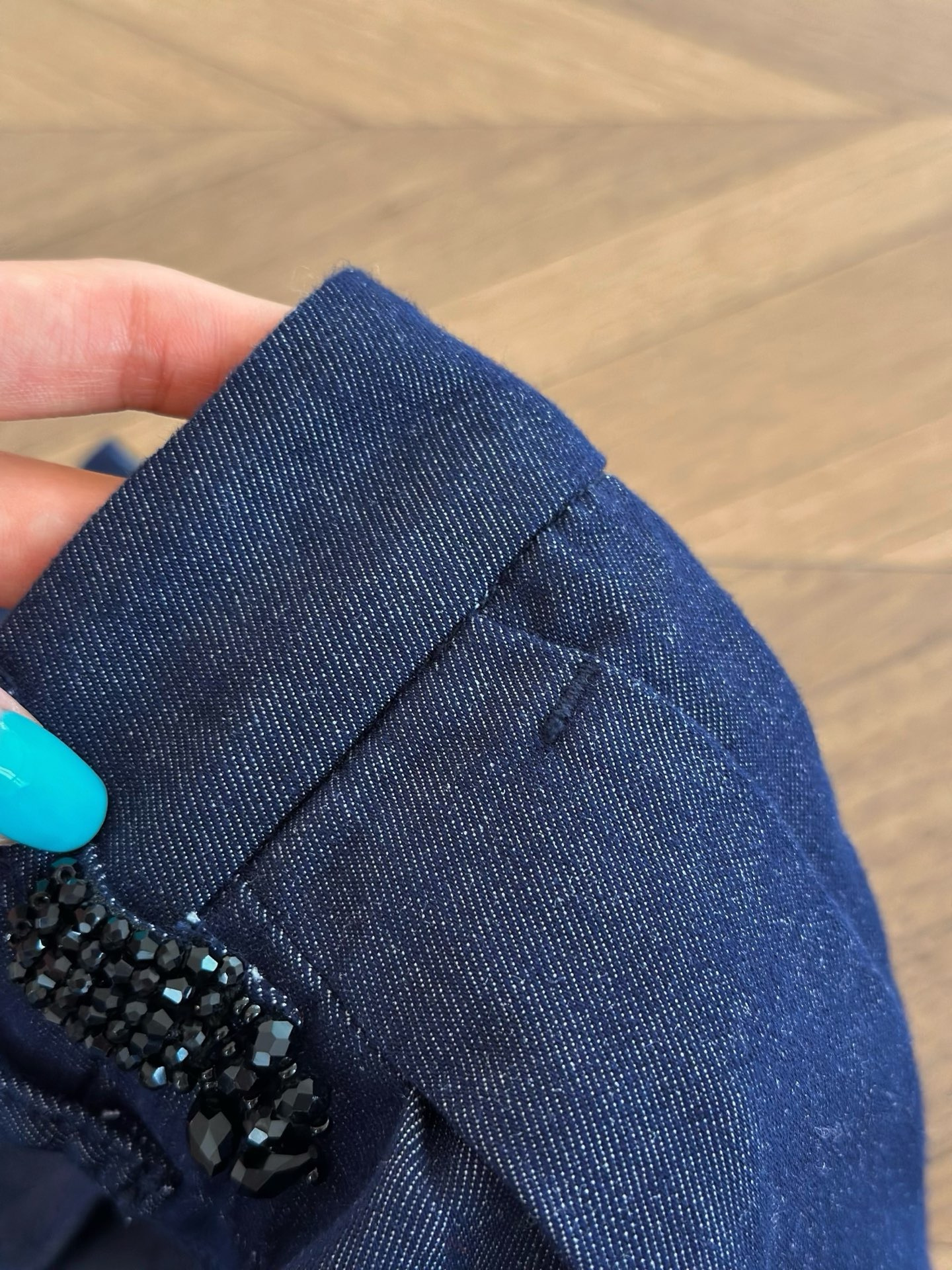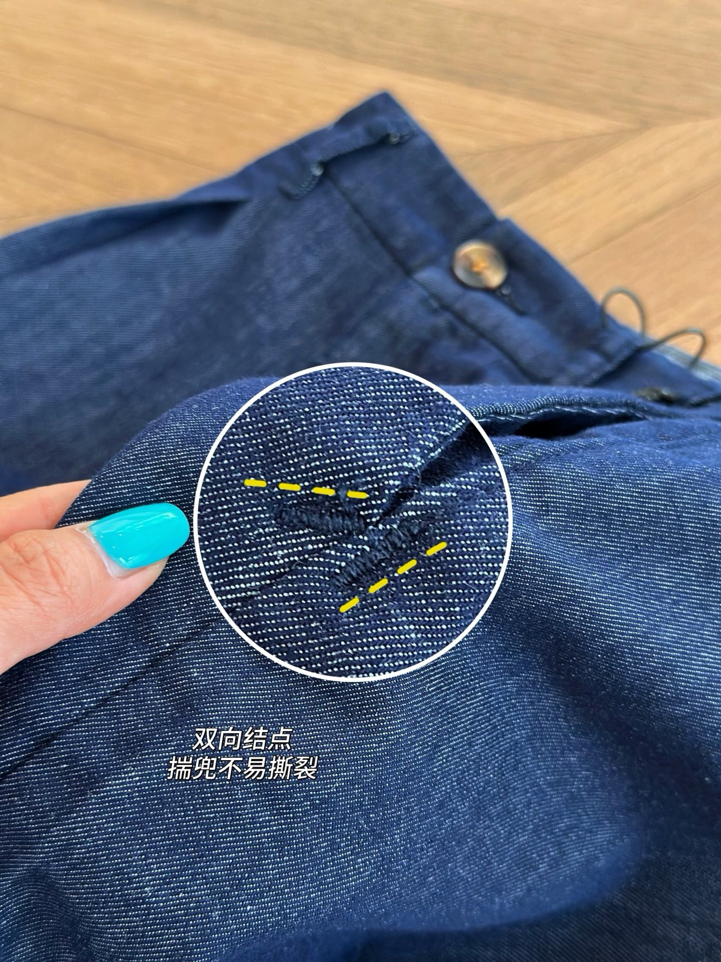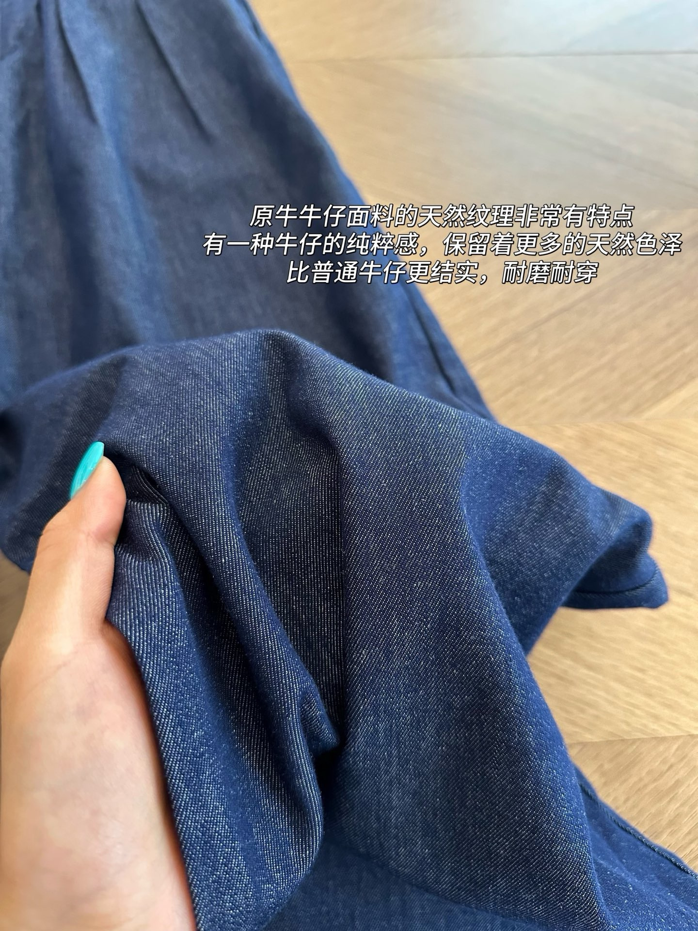 丹宁原牛深蓝色➕腰扣闪钻装饰 带有一点中古感的气质。