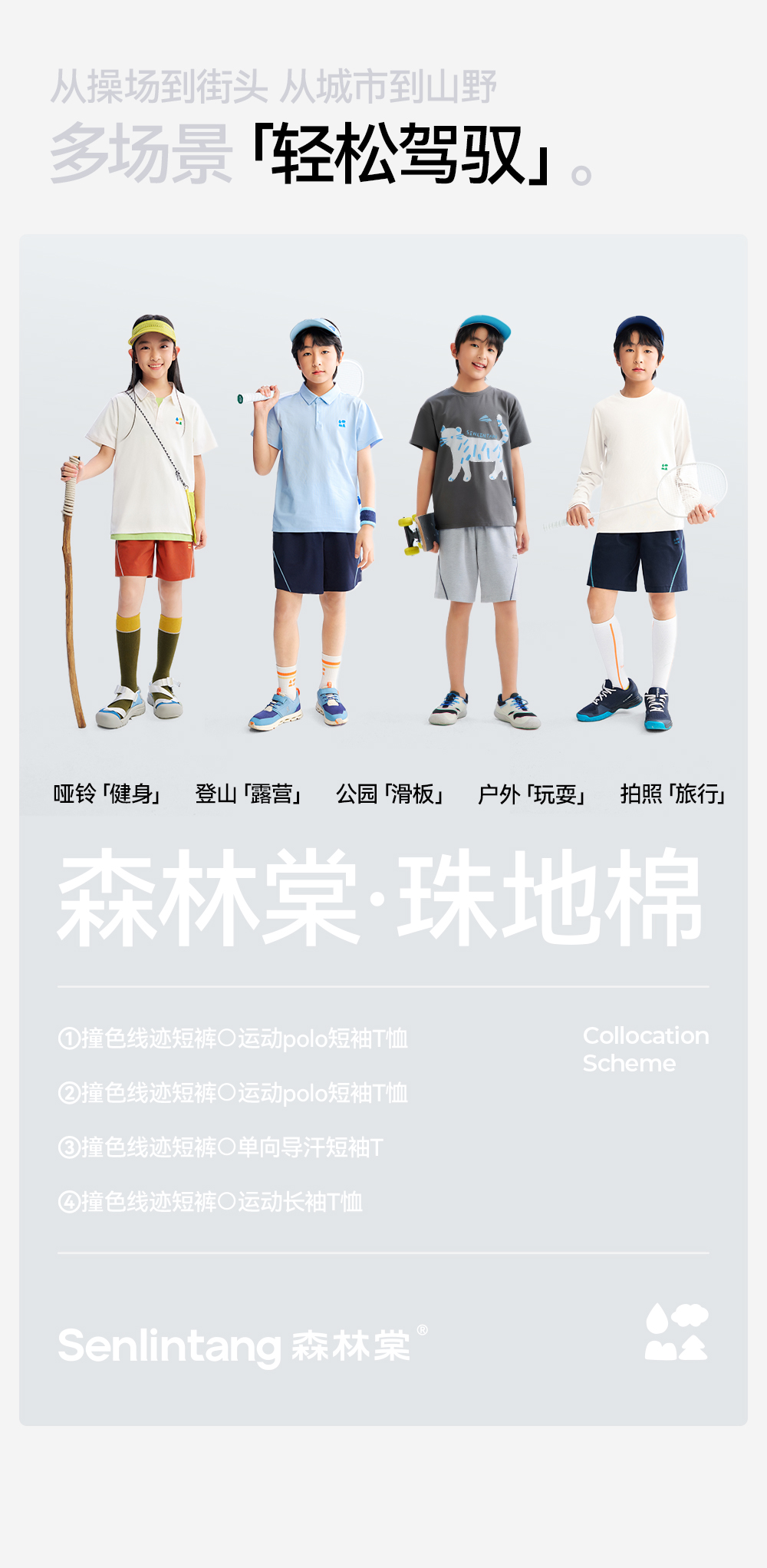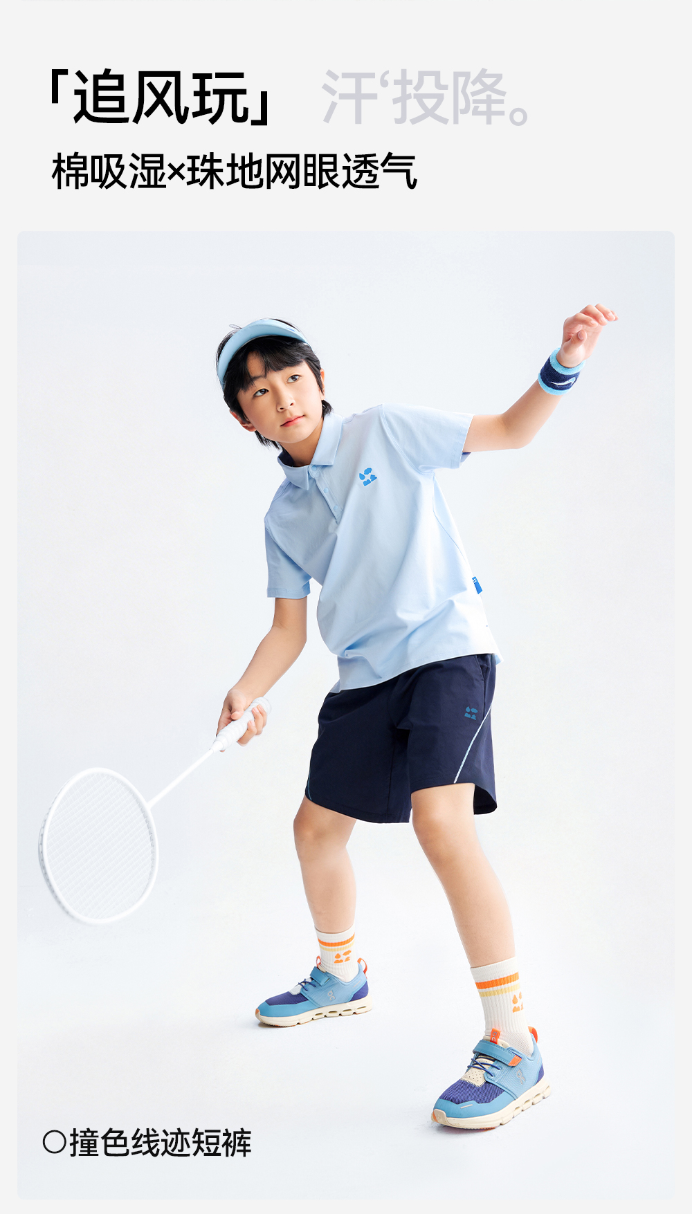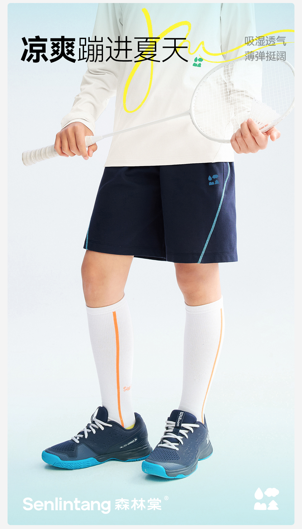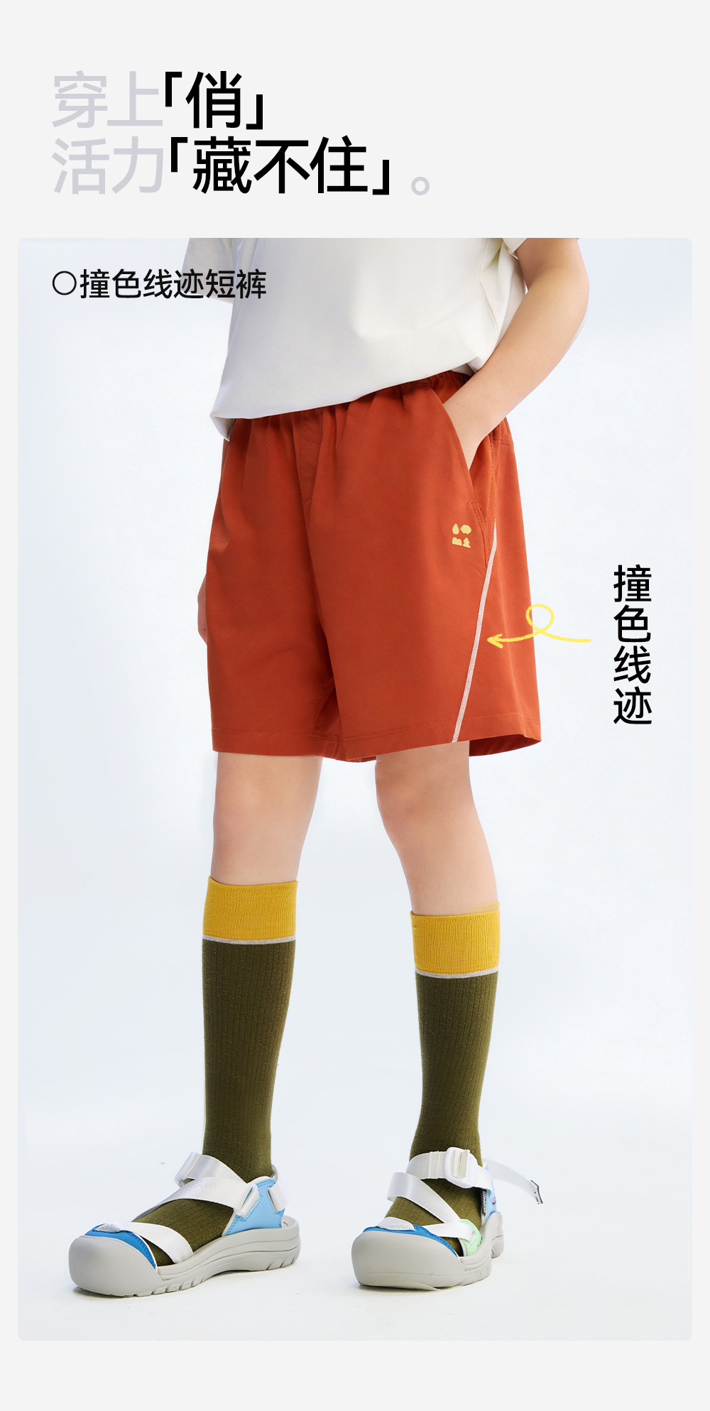 【儿童撞色线迹运动短裤】森林棠26夏款sorona珠地棉舒适透气宽松短裤42562056