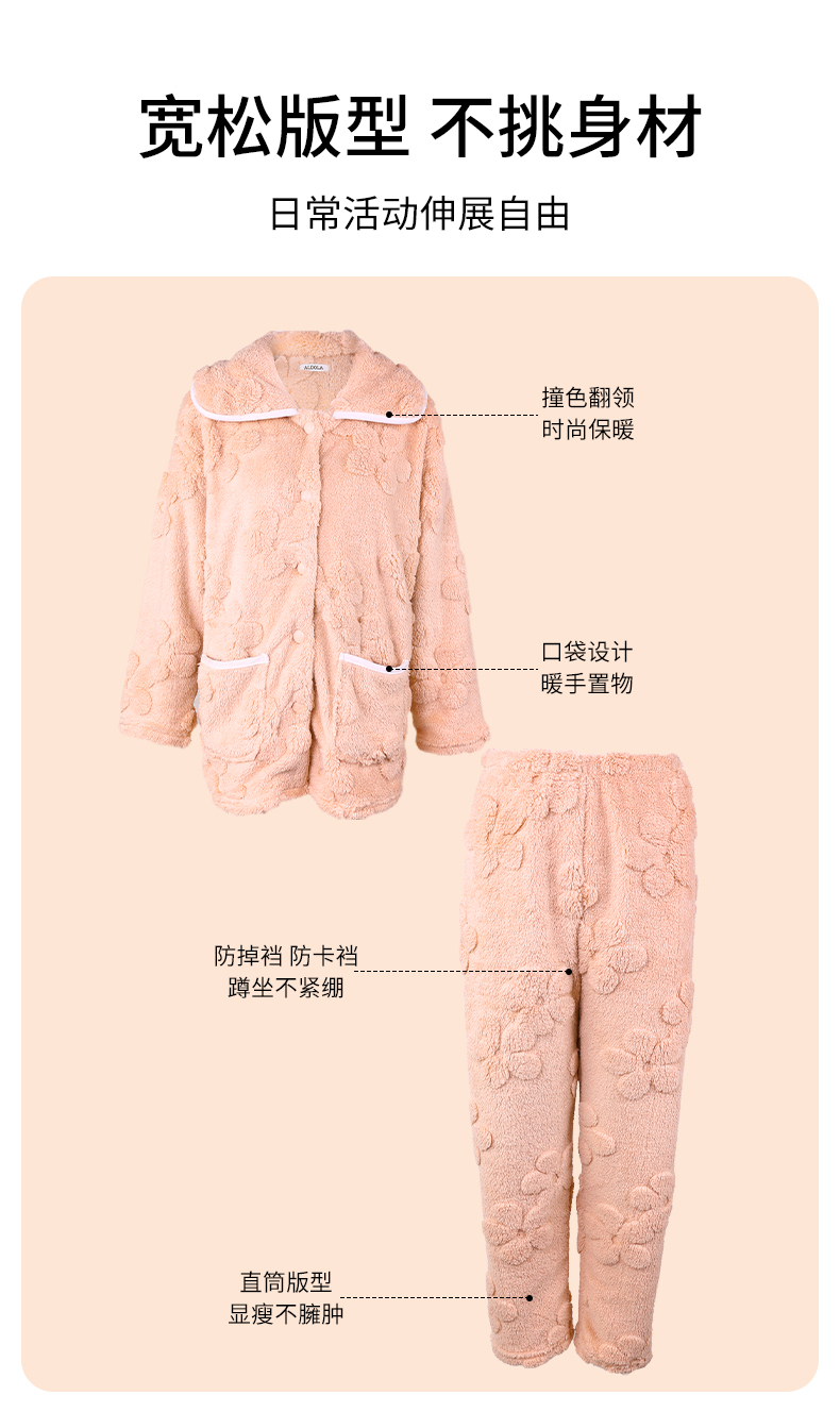 雅黛丽睡衣女冬款珊瑚绒加绒加厚家居服套装可外穿2023年新款保暖