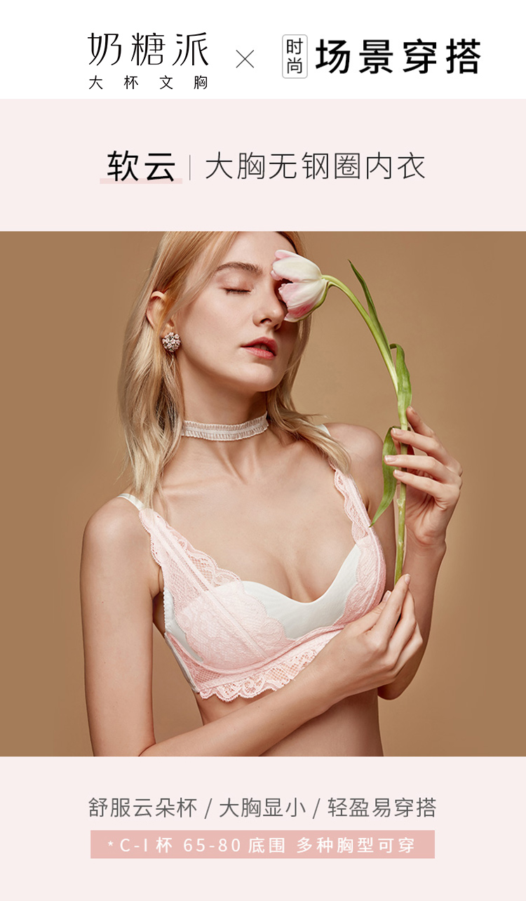 奶糖派软云无钢圈舒适透气上托薄款显小胸罩大胸大杯大码文胸女