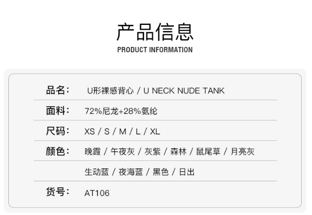 耐磨高弹 舒适亲肤 U形裸感背心/UNECKNUDETANK 裸感系列