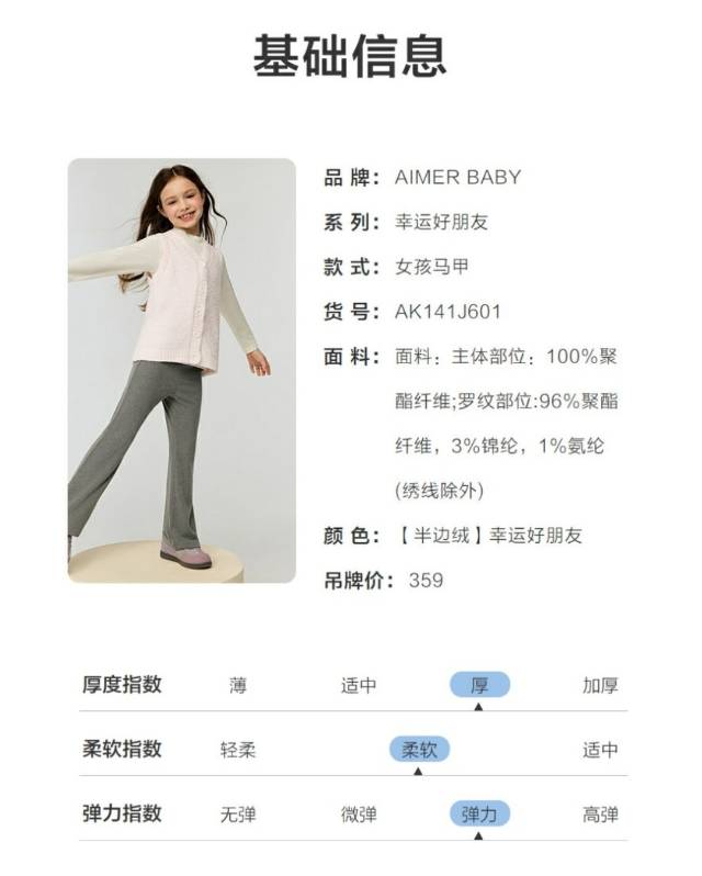 【春上新】8楼爱慕儿童Aimer Kids女孩幸运好朋友马甲AK141J601,吊牌价359元