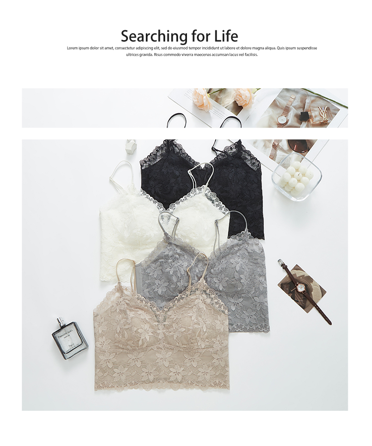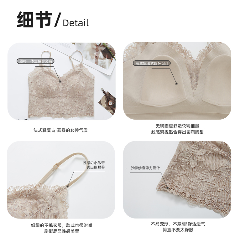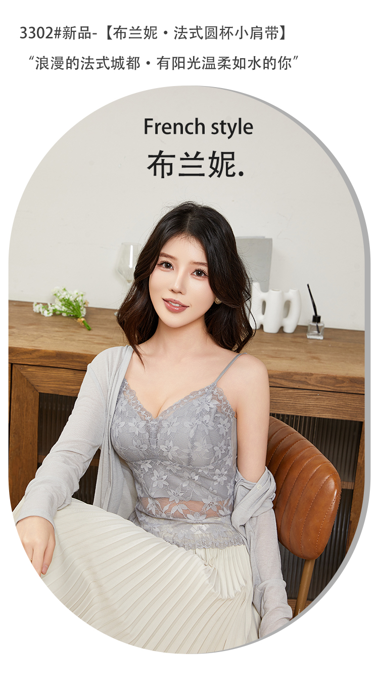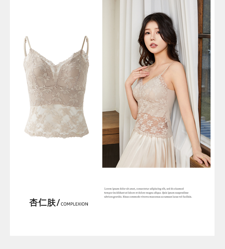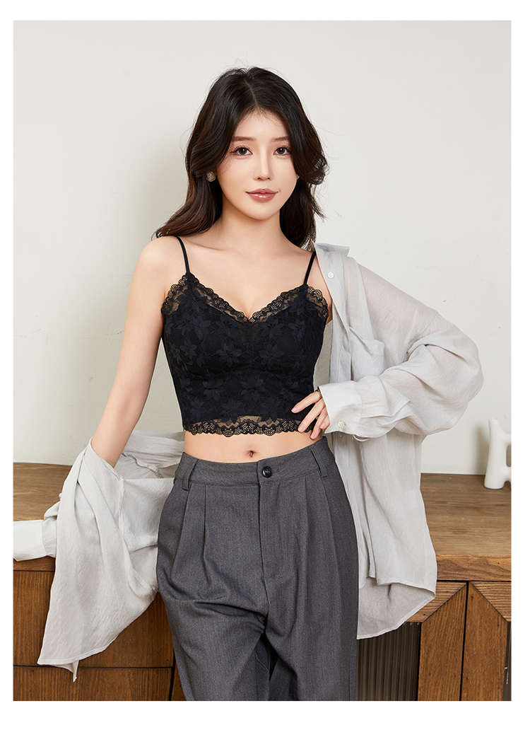【免穿文胸 V领蕾丝】美背性感吊带背心女内搭外穿带胸垫打底衫 瀛洲玉雨