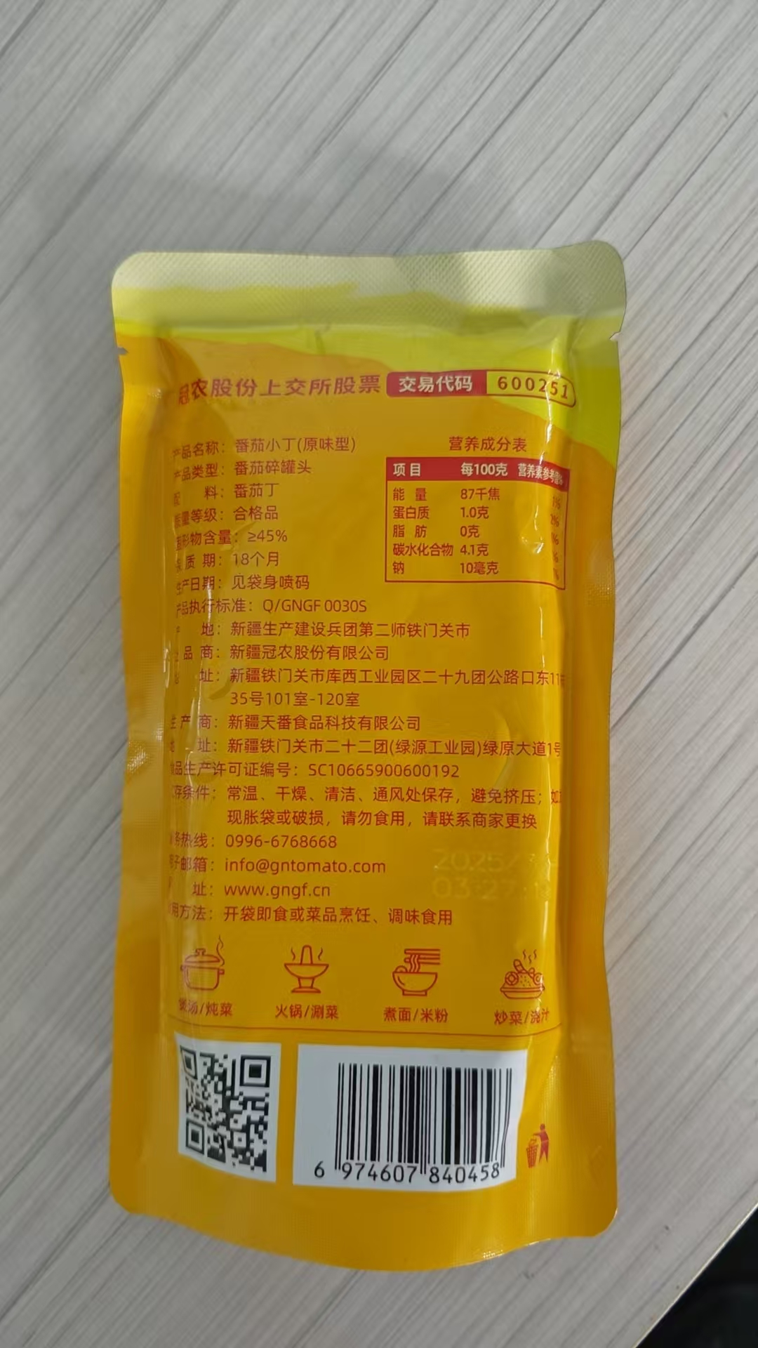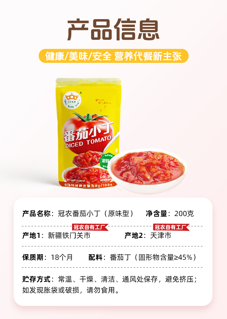 【贮存方式】常温、干燥、清洁、通风处保存,避免挤压;如出现胀袋或破损,请勿食用