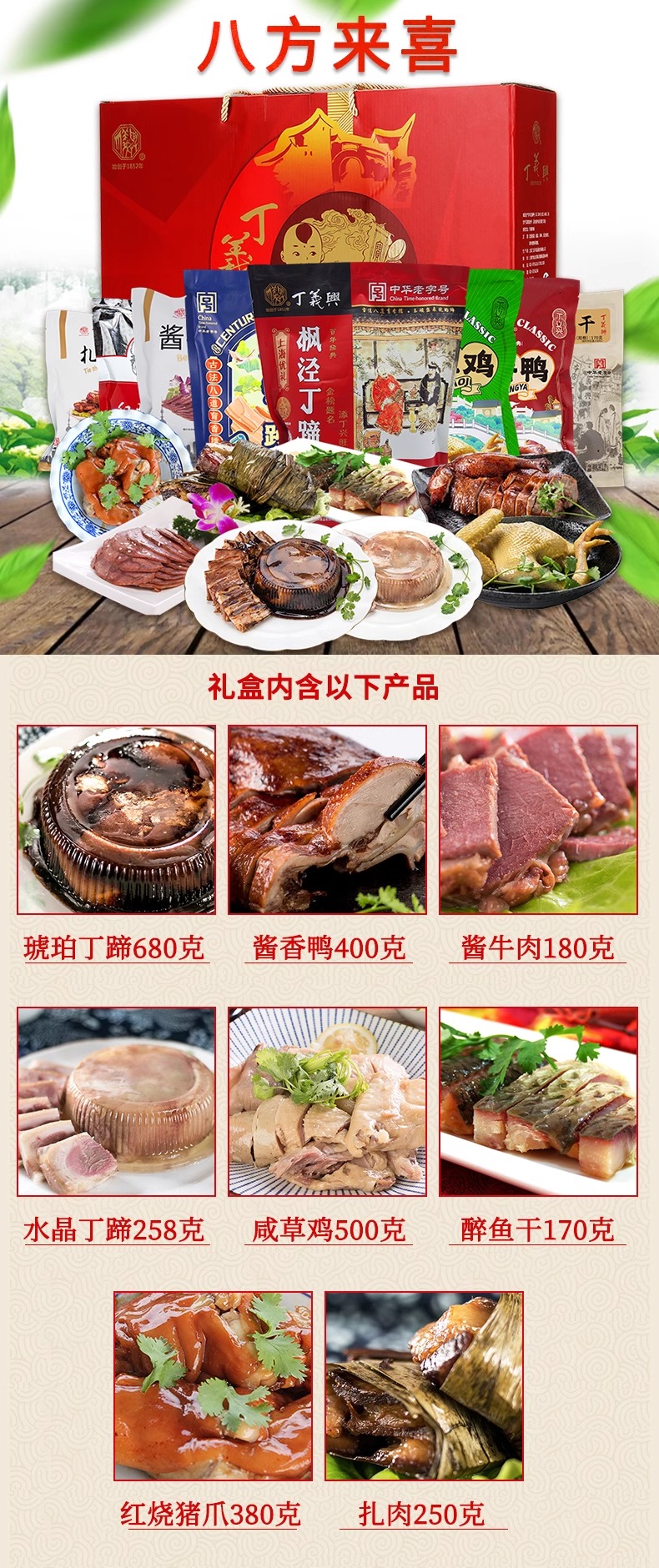 丁义兴八方来喜年货礼盒 蹄髈熟食即食卤味地方特色 吃货节日送礼