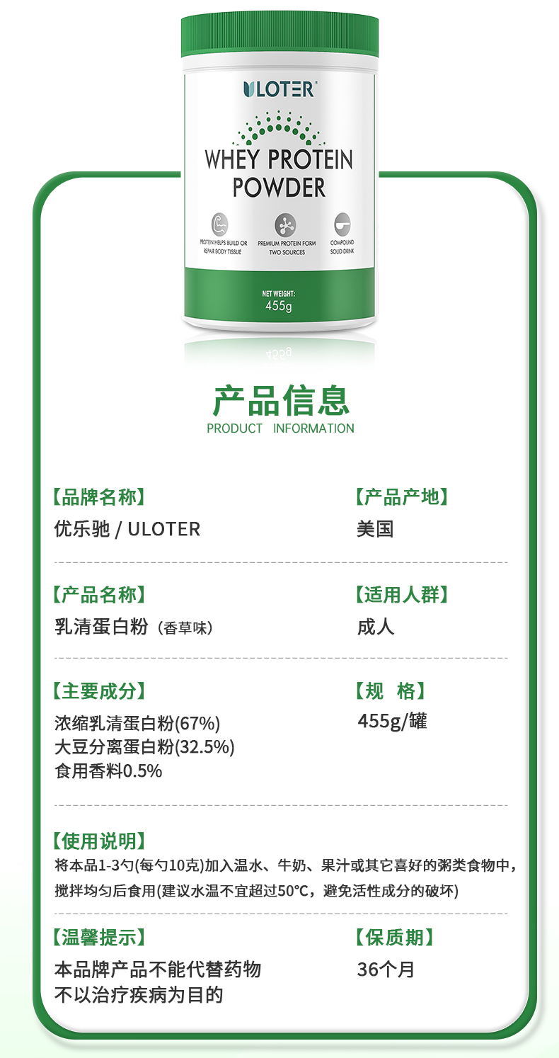 优乐驰ULOTER 乳清蛋白粉 美国原装进口