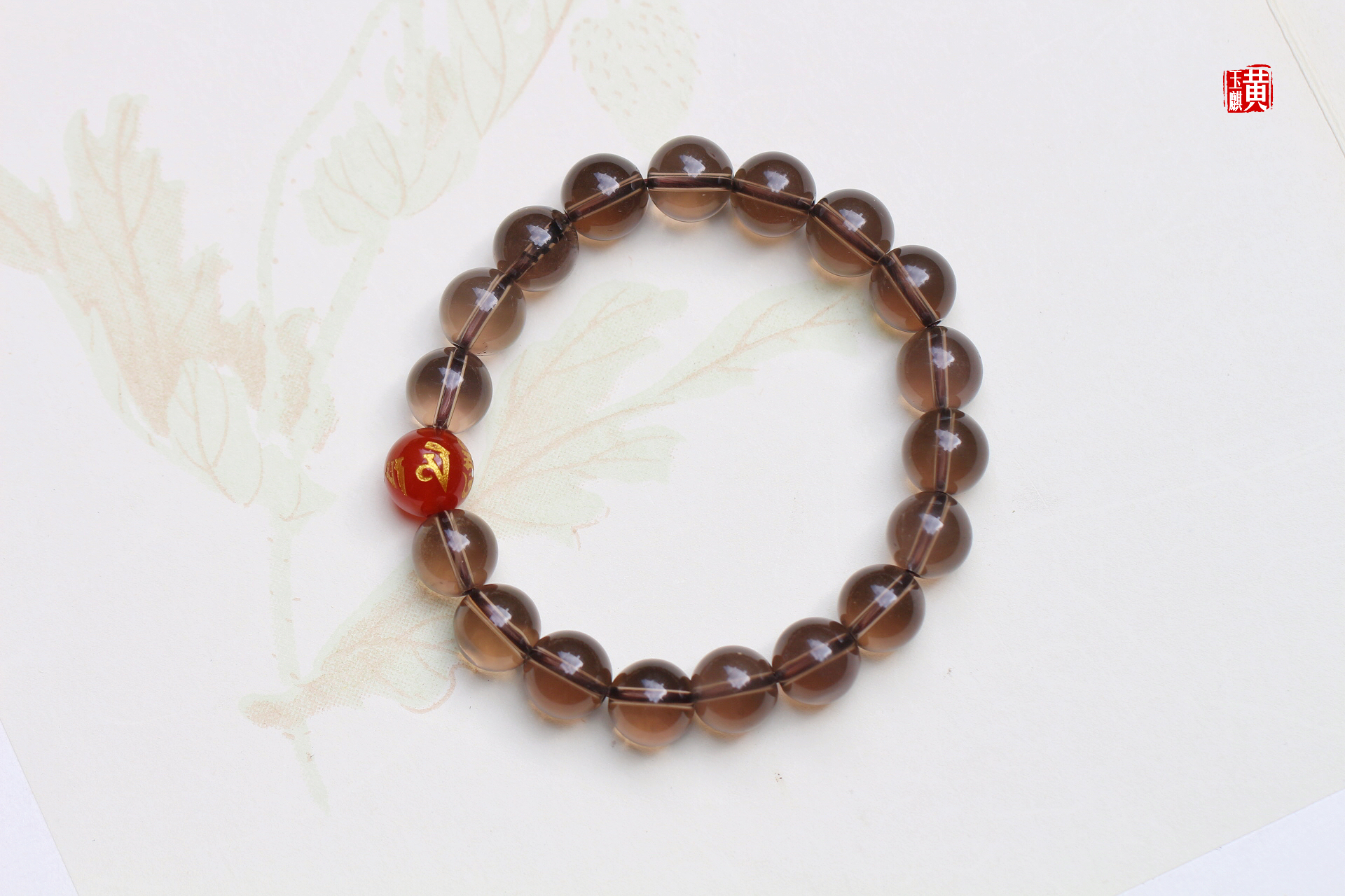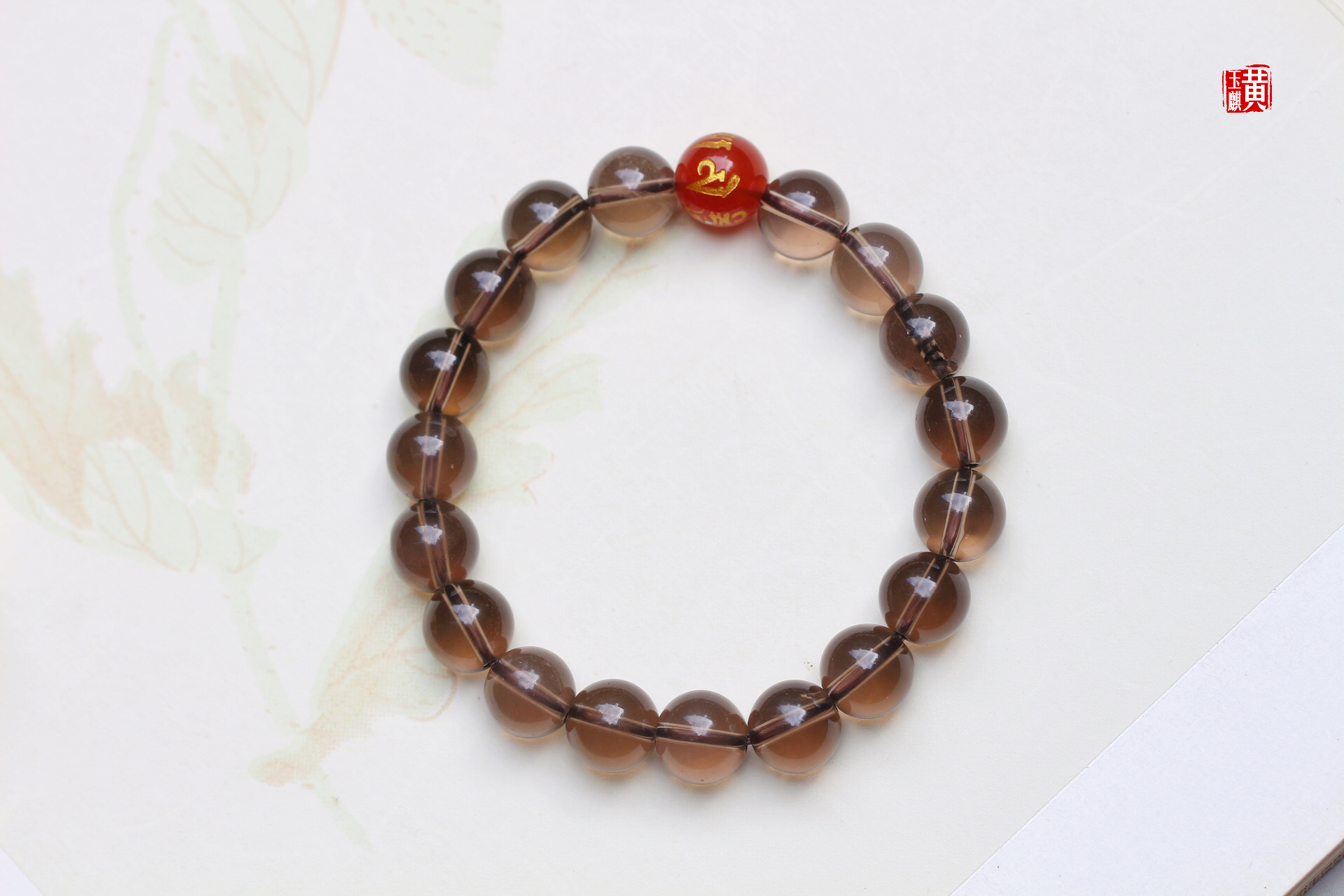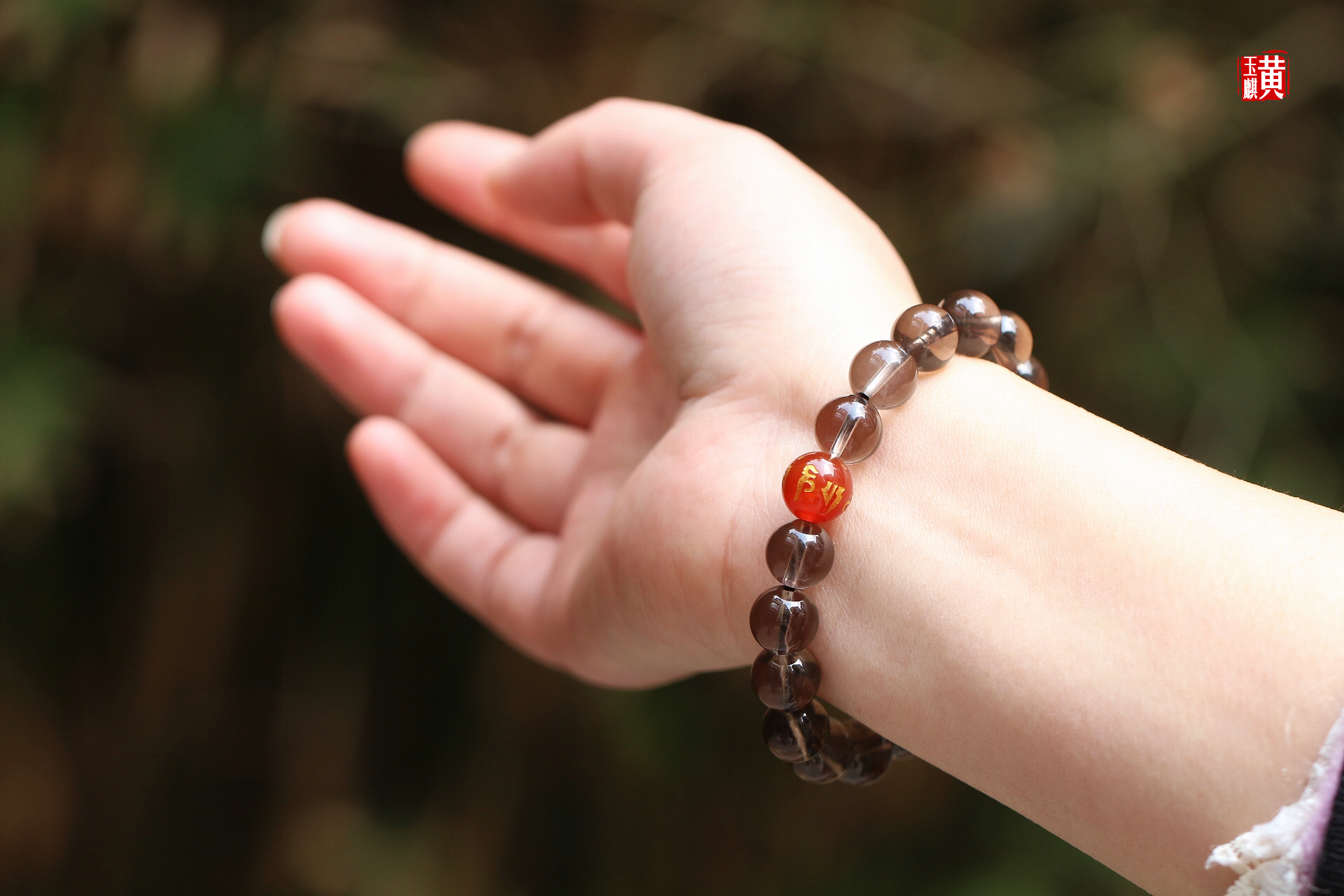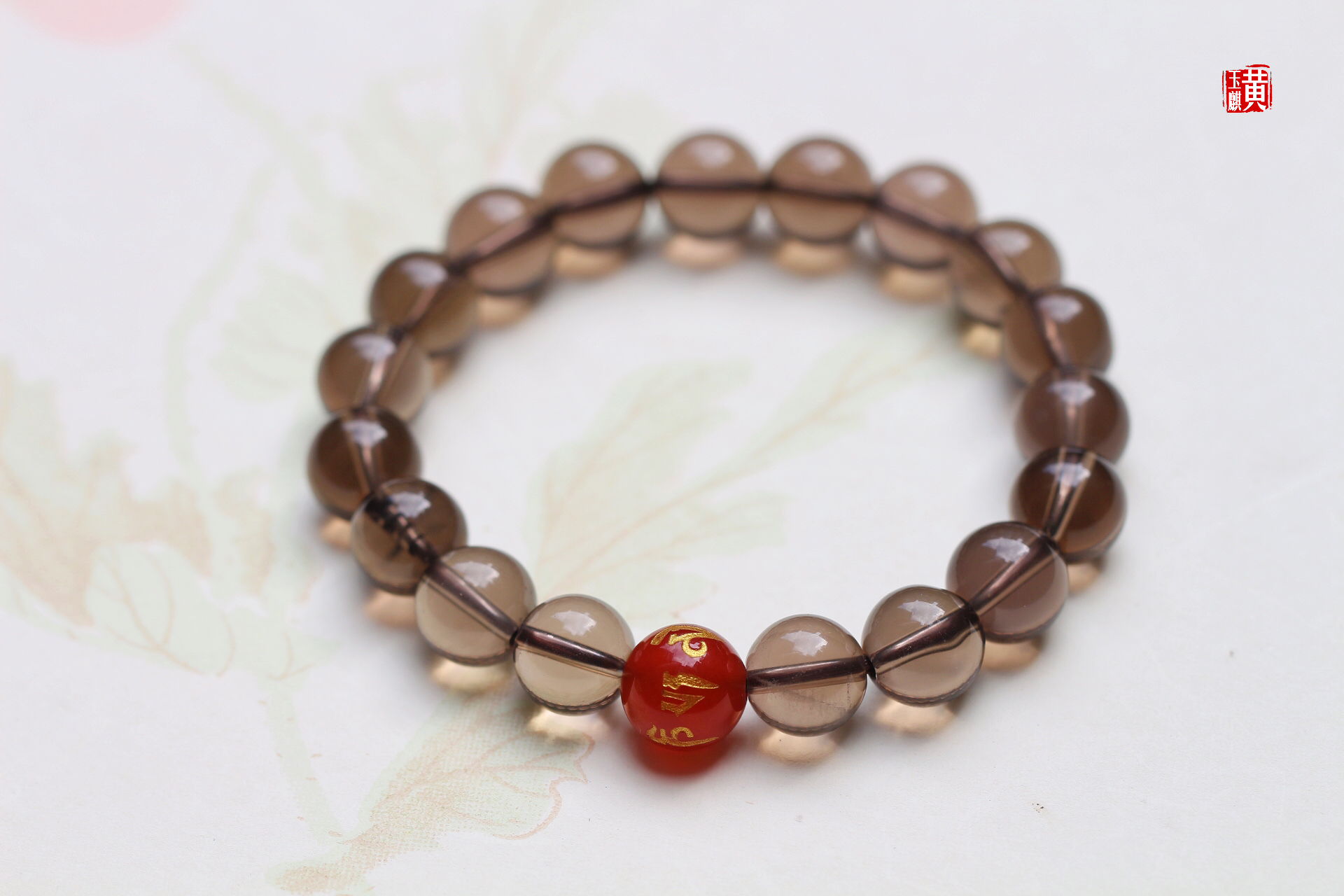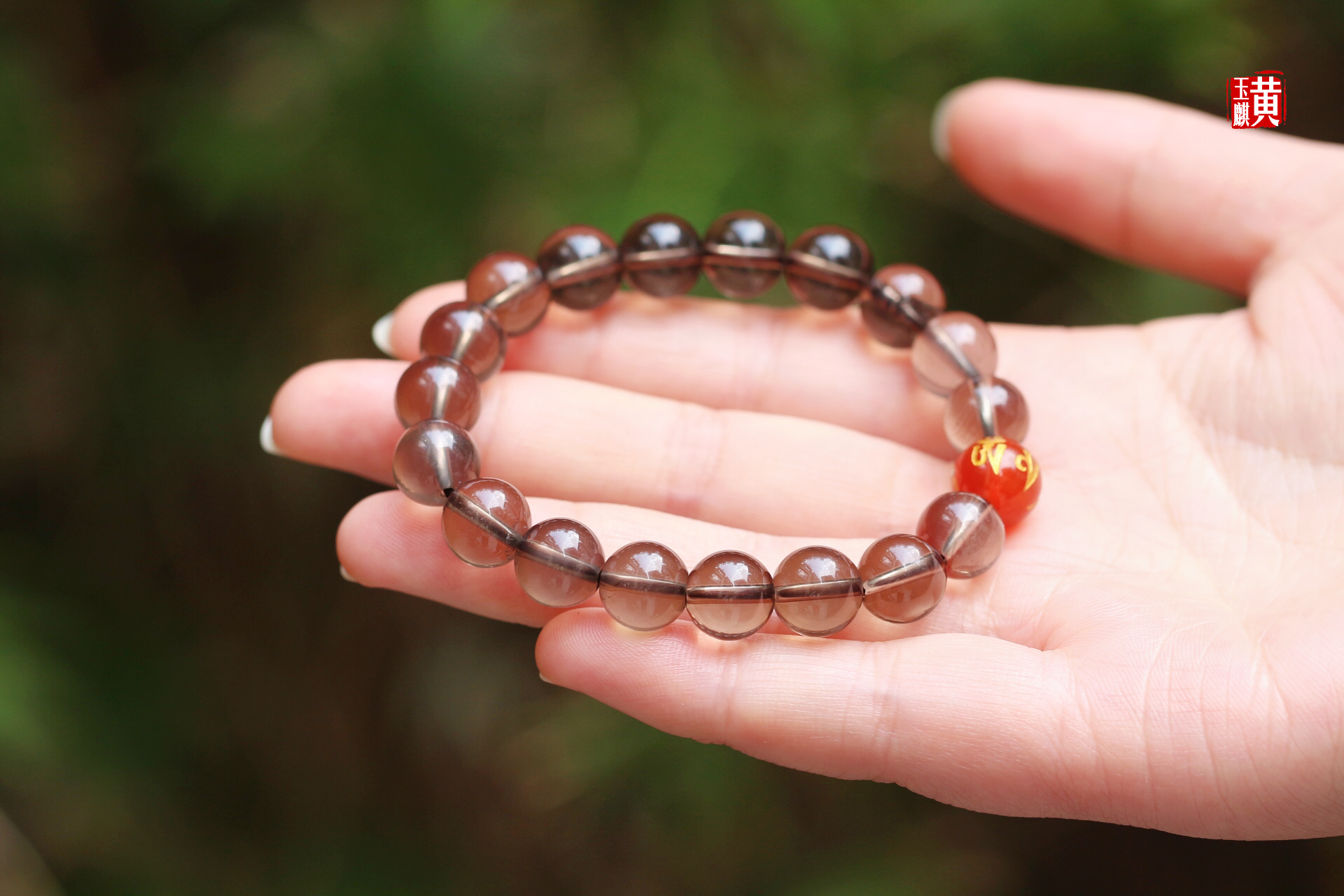 烟晶手串 又叫茶晶 搭配:红玛瑙