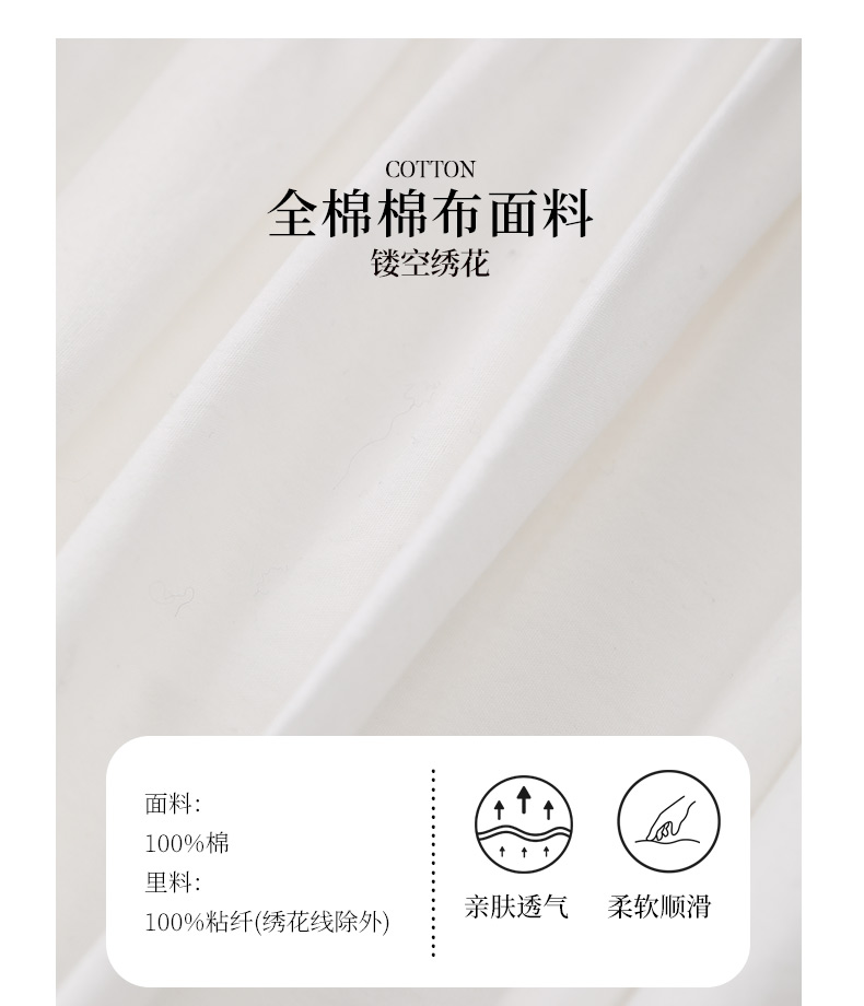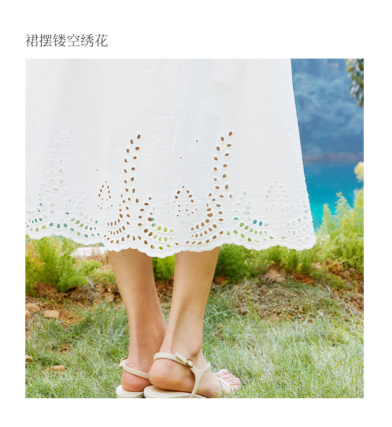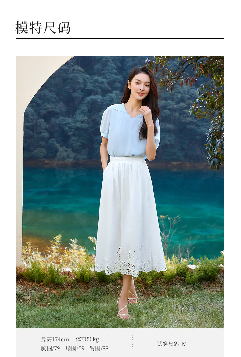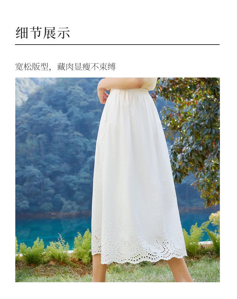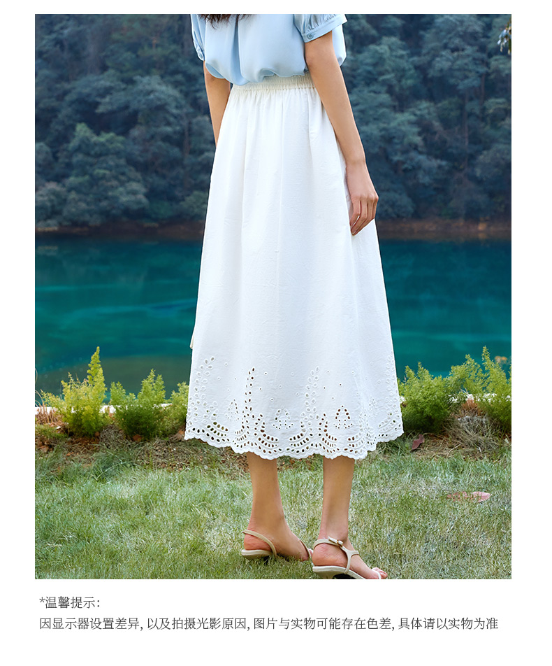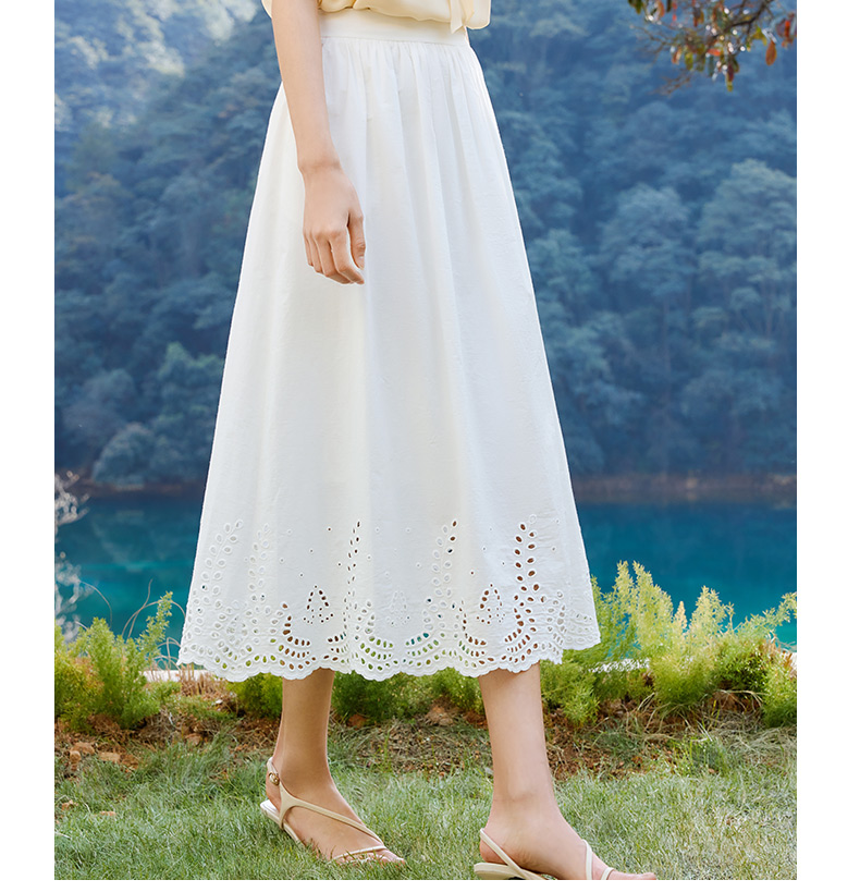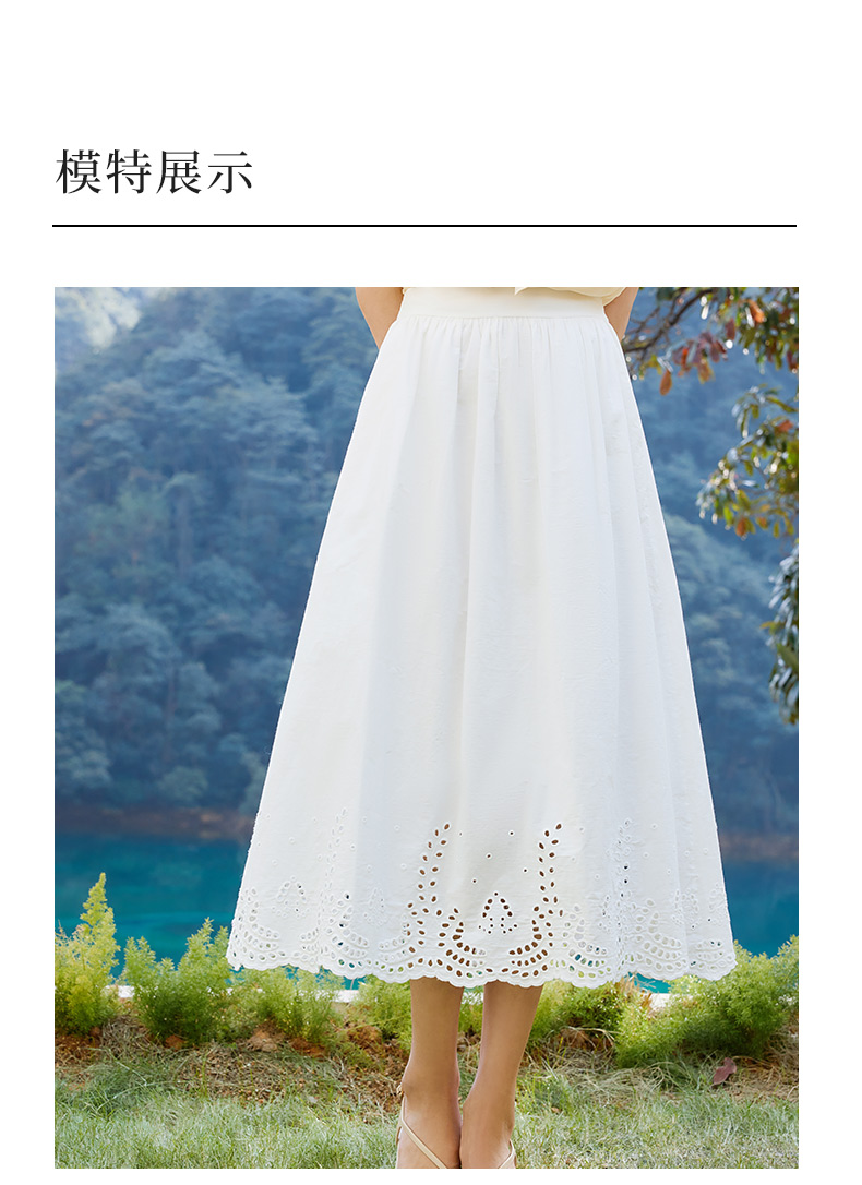 玳莎镂空绣花半身裙2025年夏季新款白色纯棉百搭半松紧高腰裙子 FB34302
