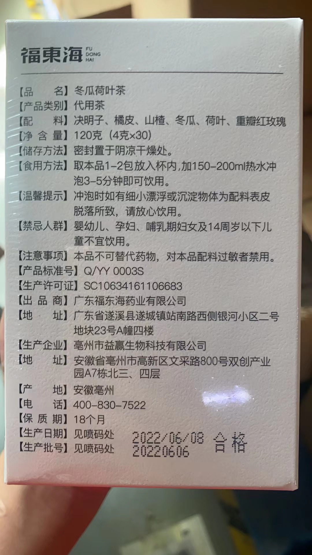 福东海 冬瓜荷叶茶120克(4克*30袋)