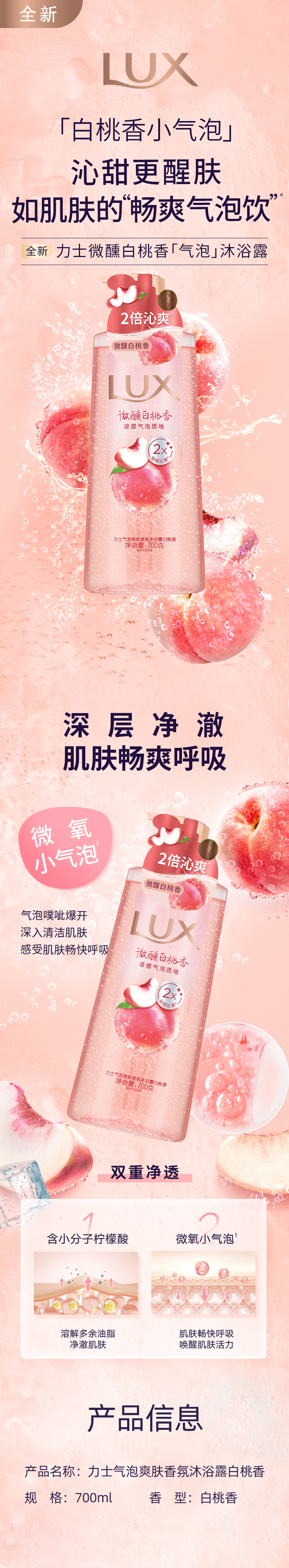 力士气泡爽肤香氛沐浴露白桃香700ml【21003287】