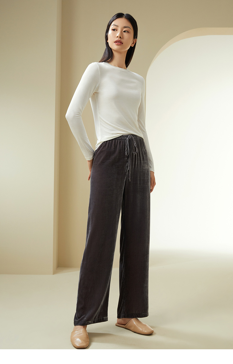 【桑蚕丝丝绒秋冬神裤】金三塔质感垂顺直筒无侧缝休闲长裤女士新品(限价款) YSFDC901