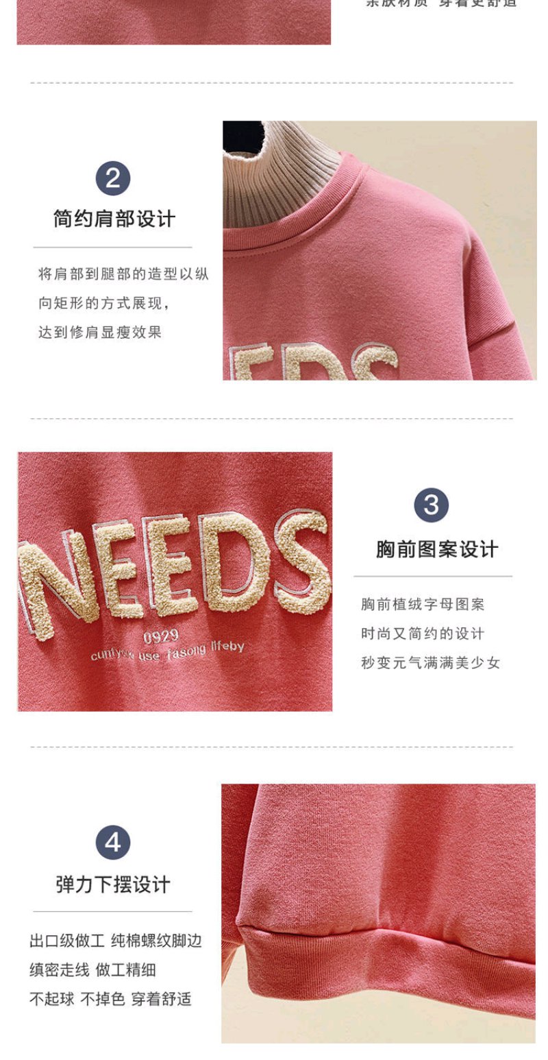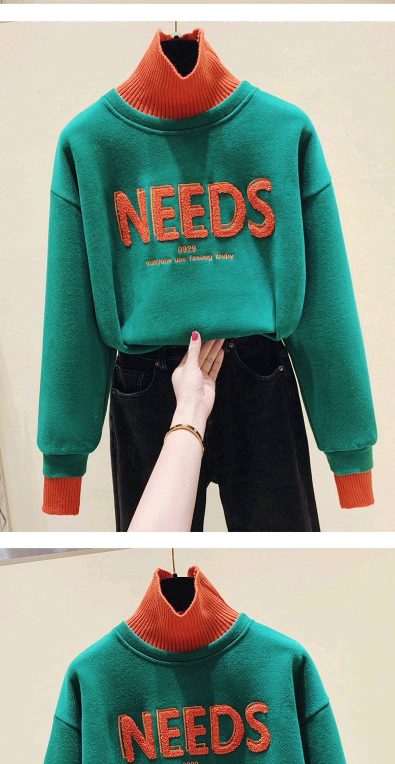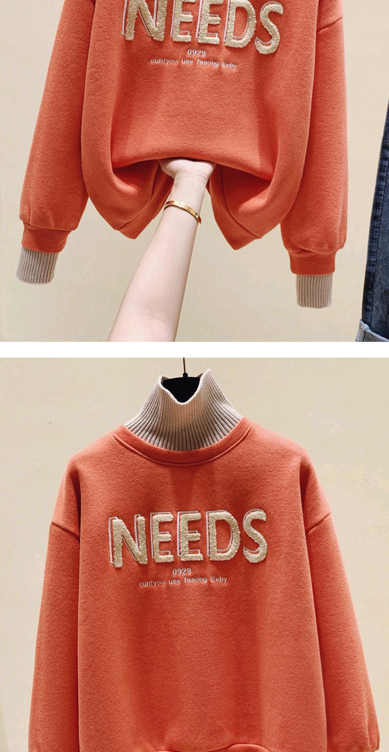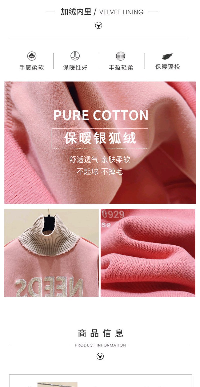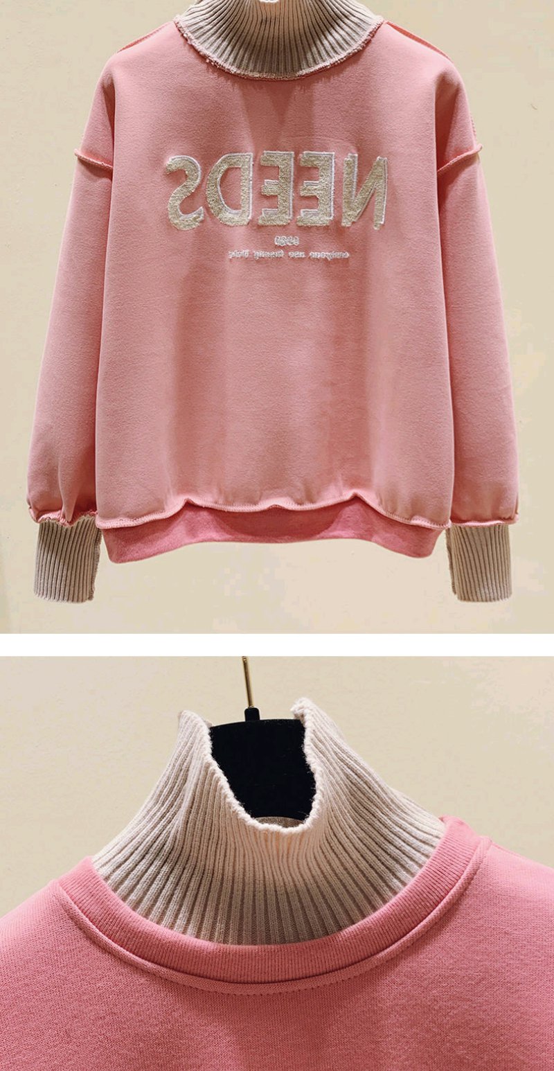 秋冬款加绒加厚高领重工毛巾绣假两件卫衣女+休闲直筒毛呢裤百搭