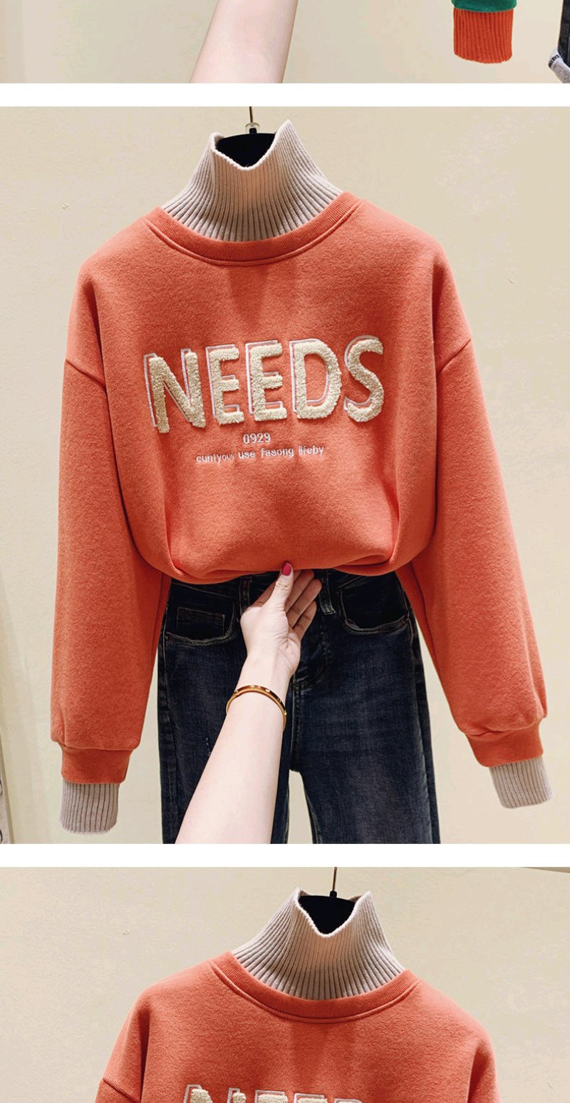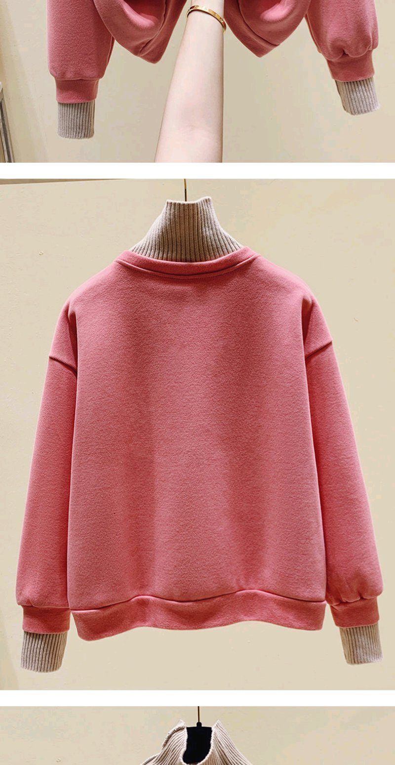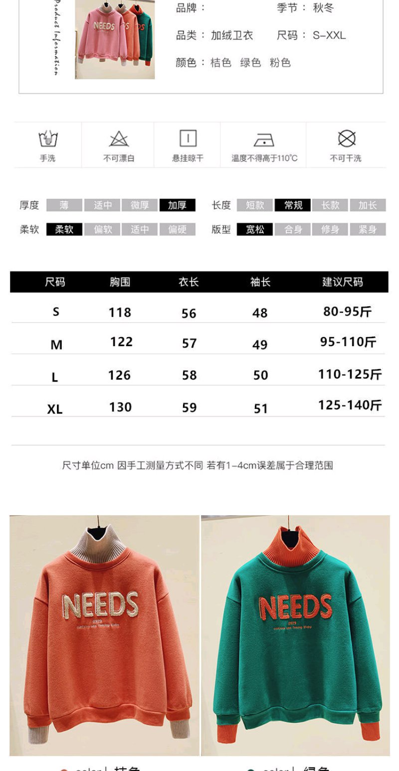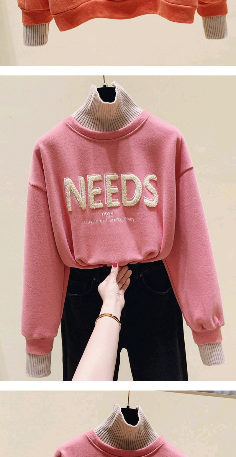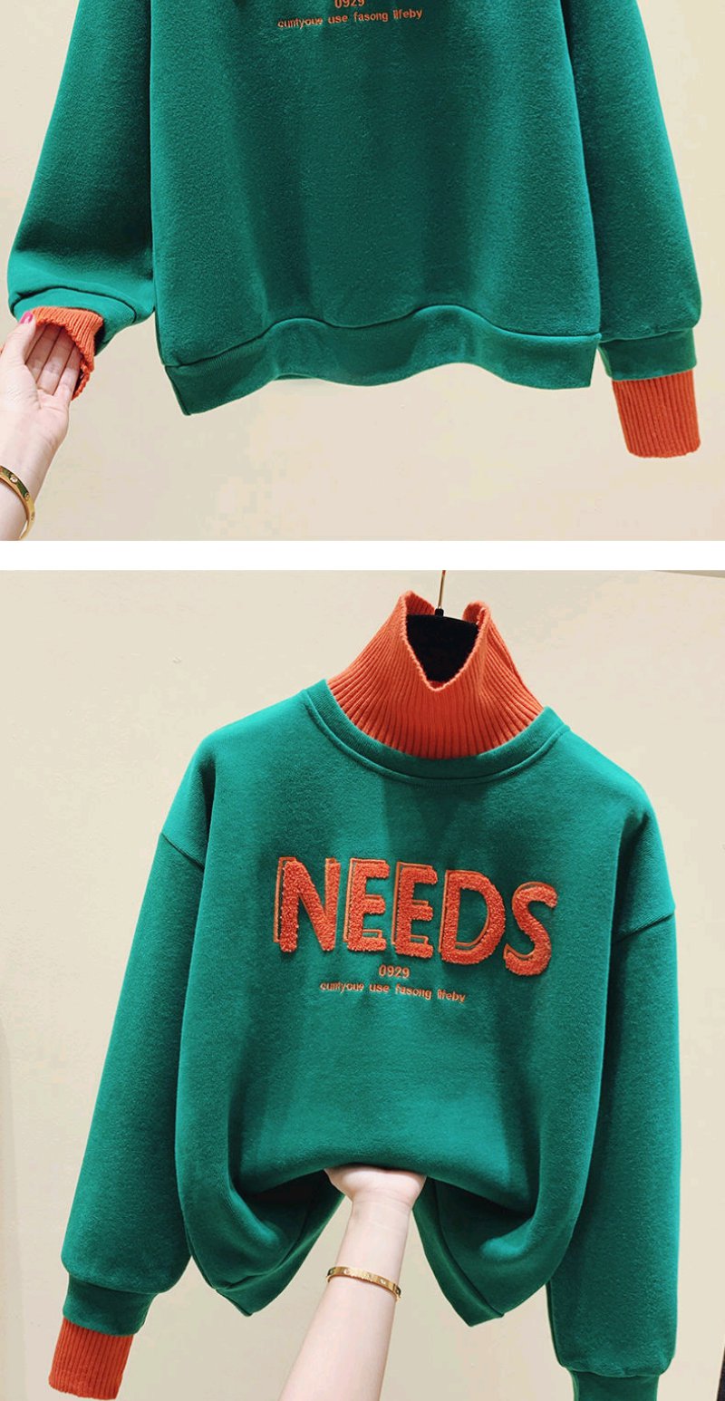 秋冬款加绒加厚高领重工毛巾绣假两件卫衣女+休闲直筒毛呢裤百搭