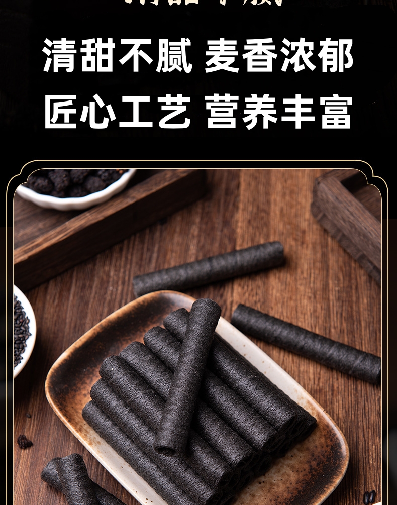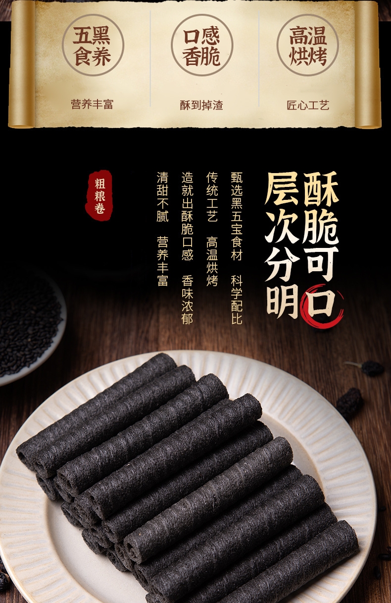 【五黑滋养!精选黑五宝的粗粮卷】原色原香,五黑粗粮卷,黑豆、黑米、黑枸杞、黑桑葚、黑芝麻等,休闲食品蛋卷酥健康