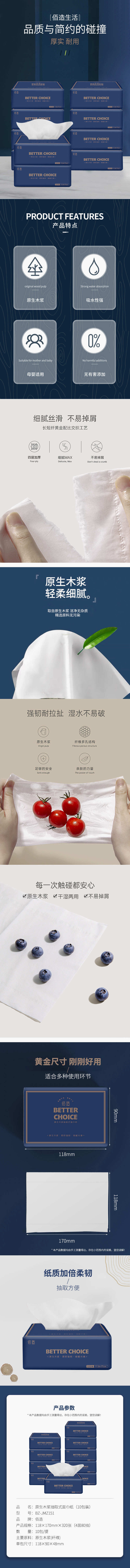 【快递包邮】佰造抽纸原生木浆抽取式面巾纸(10包装)BZ-JMZ151