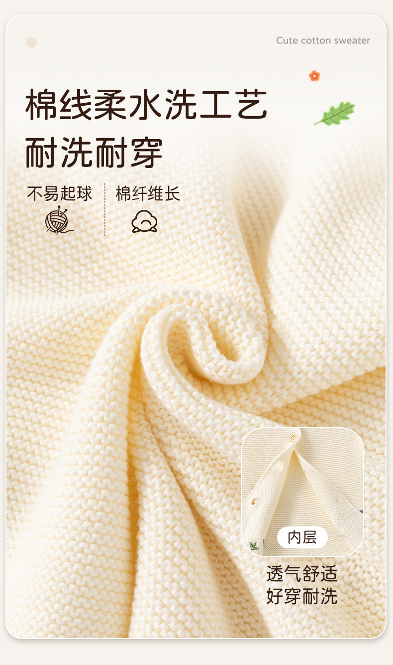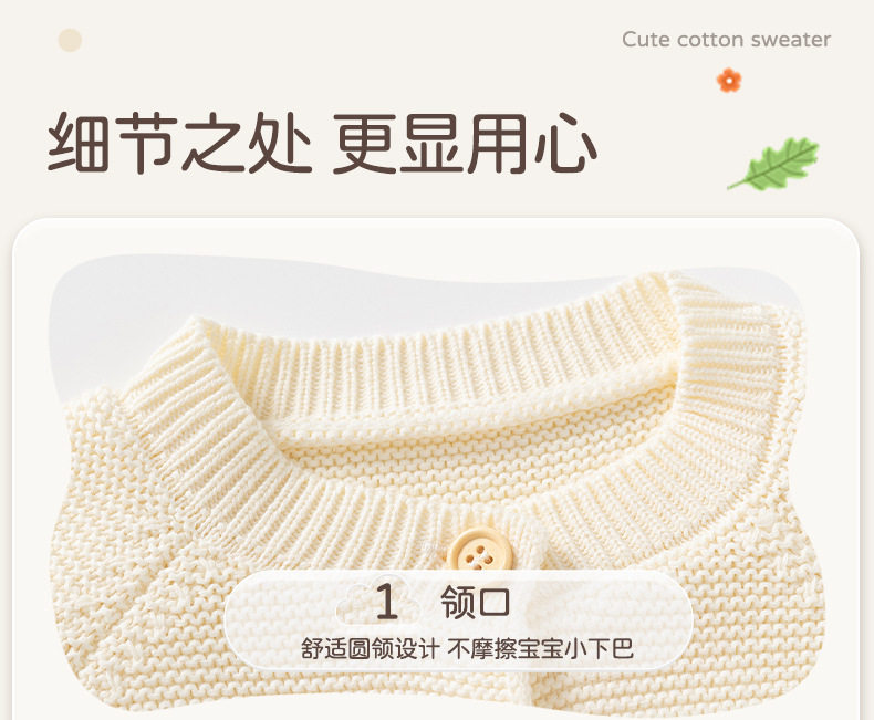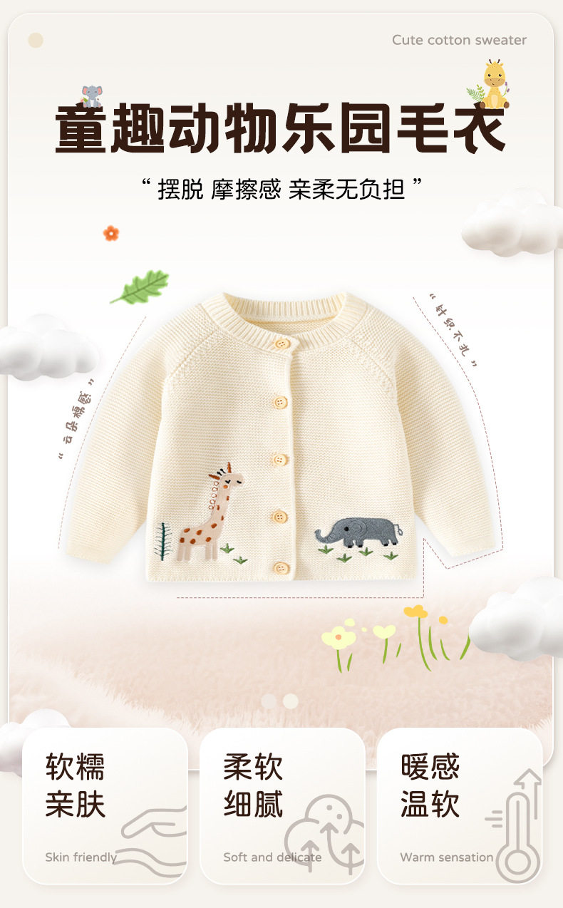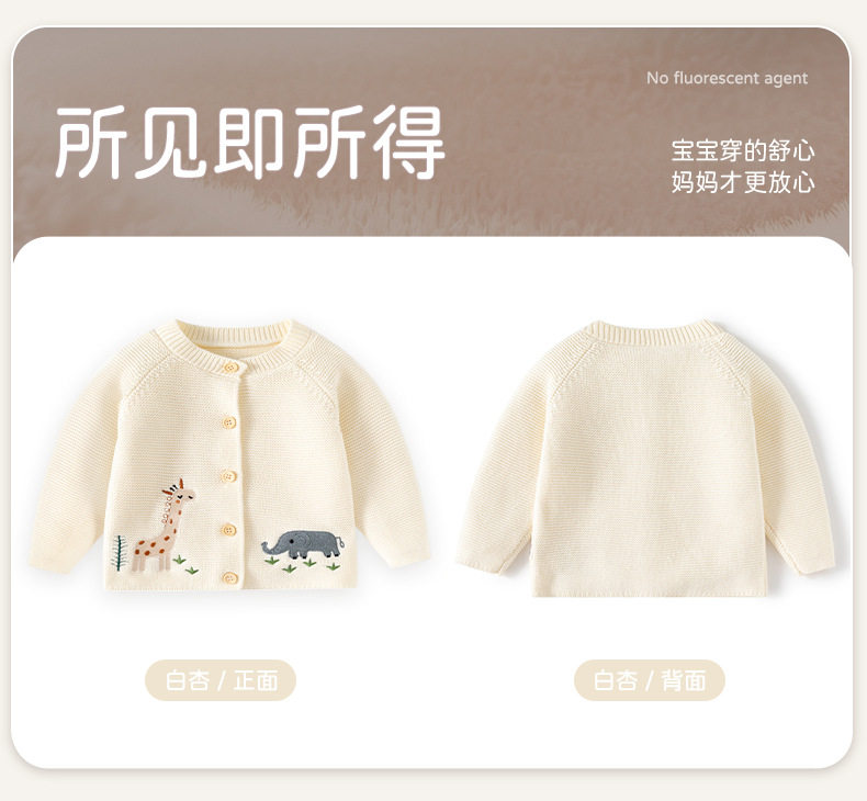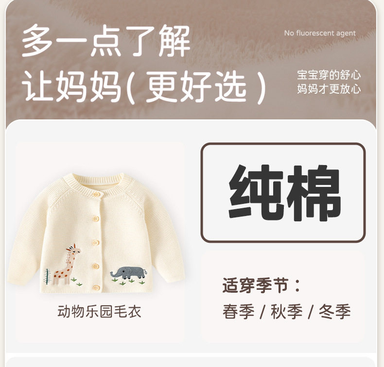 快乐动物A类纯棉婴儿毛衣秋冬针织婴儿开衫毛衣纯色可爱婴儿外套