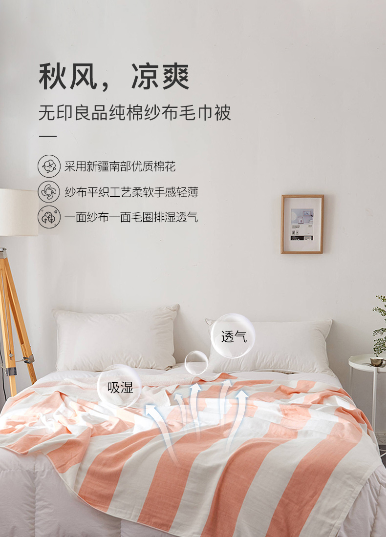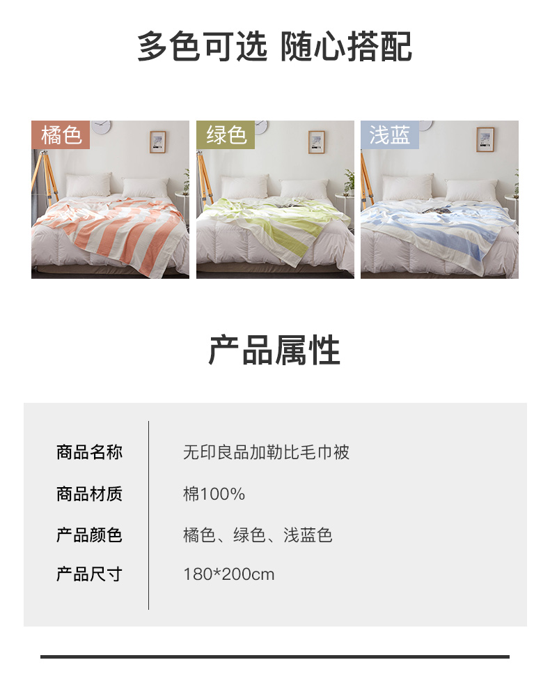 加勒比系列双人毛巾被纯棉薄款盖毯 180*200cm 无印良品