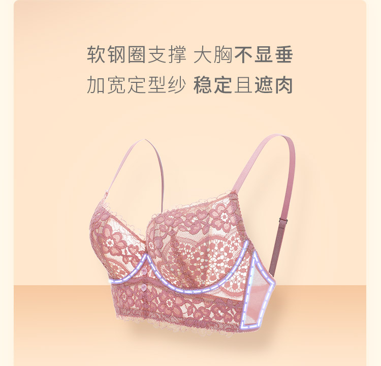 【积分兑换】大露背美背文胸大胸显小性感蕾丝大罩杯大胸大码内衣显瘦女